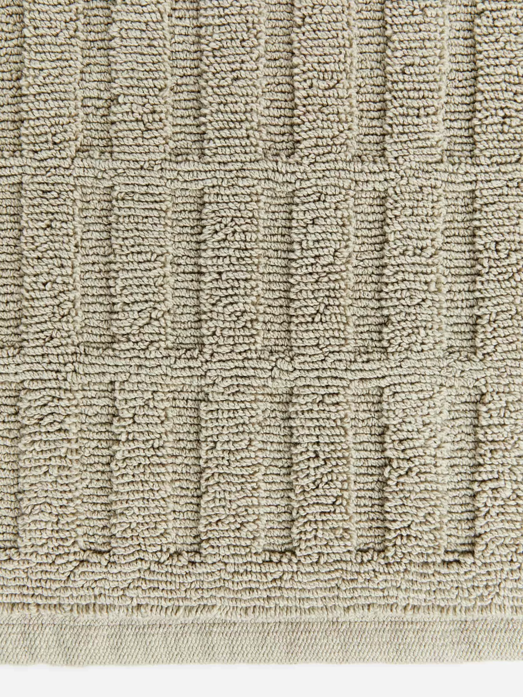 Alfombrilla de baño con textura de rejilla fabricada en algodón. Medidas 50 x 70 cm.