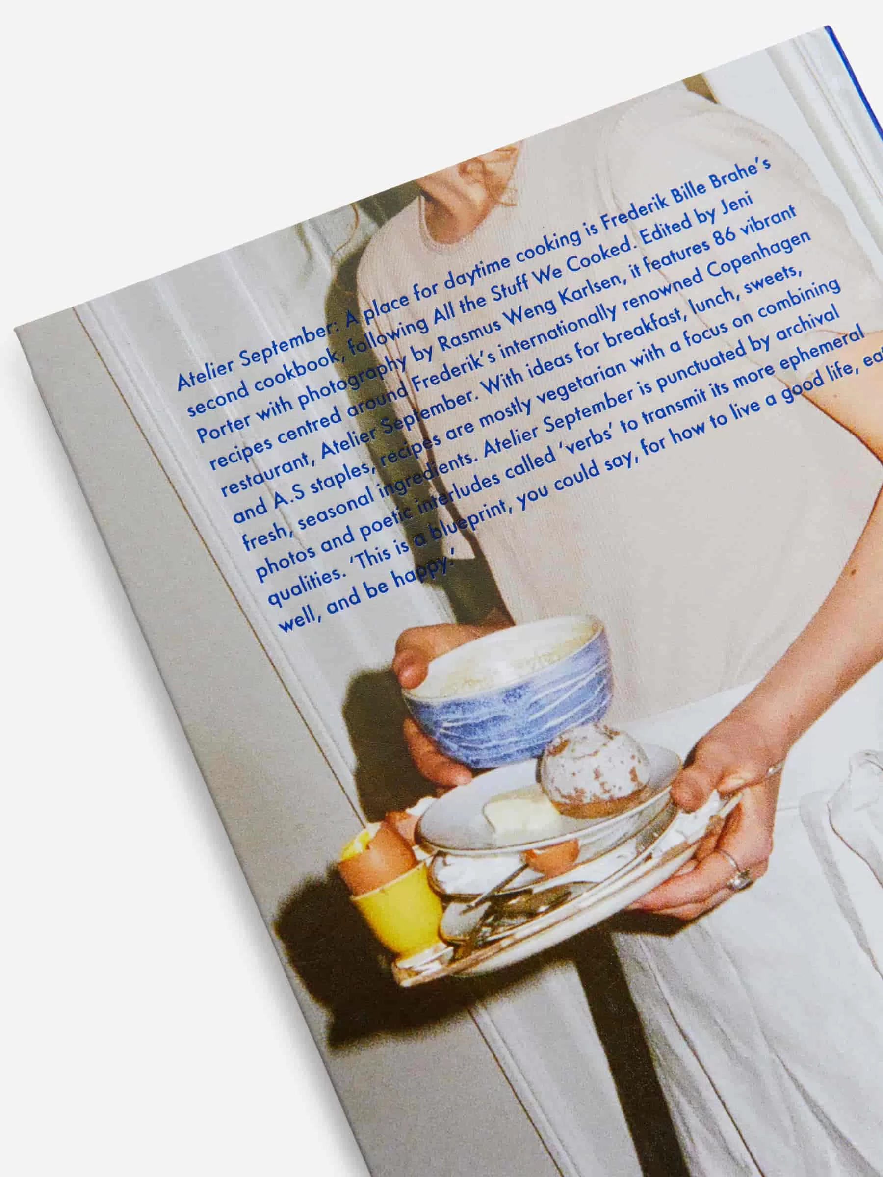 Atelier Septiembre: Un lugar para cocinar durante el día es el primer libro de cocina dedicado al famoso restaurante de Copenhague, que incluye 86 recetas del propietario Frederik Bille Brahe. Editado por Jeni Porter y con fotografías de Rasmus Weng Karlsen. Publicado por Apartamento.