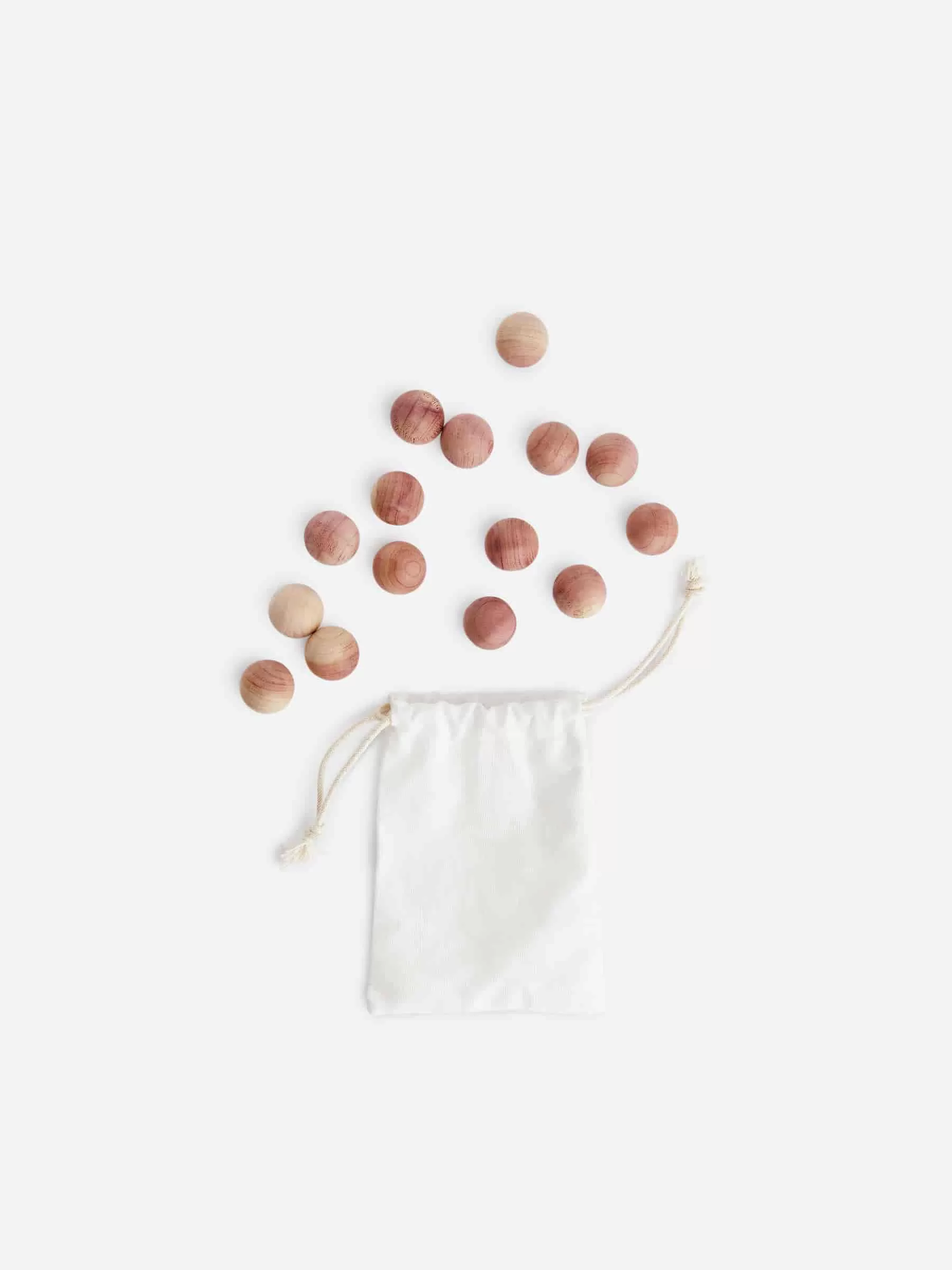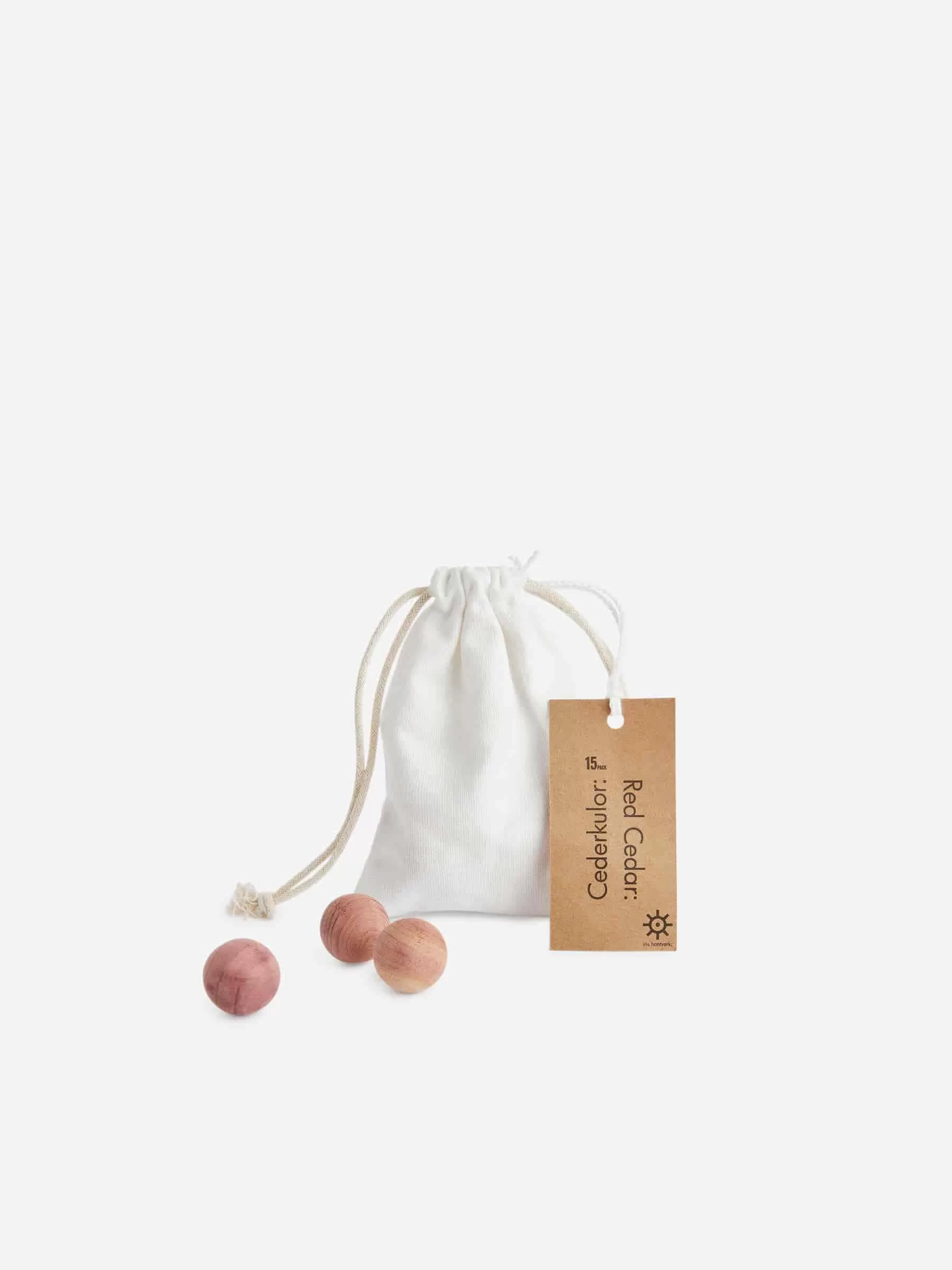 Bolas de cedro de Iris Hantverk fabricadas en madera de cedro rojo. Funcionan como repelentes de plagas naturales y le darán a tu guardarropa y vestidor un aroma refrescante. Asegúrate de no poner las bolas directamente sobre ningún textil, ya que la madera podría dejar manchas de grasa. Cuando el olor desaparezca, líjelos ligeramente con papel de lija fino y volverán a estar como nuevos.