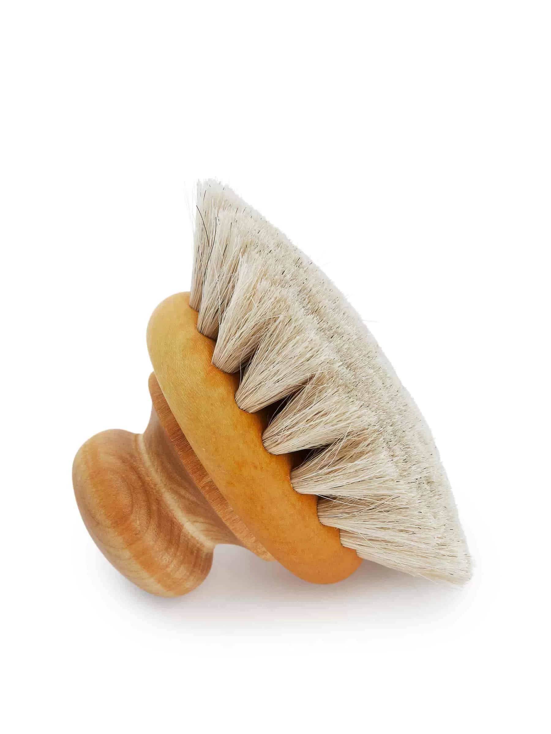 Cepillo de baño con pomo de arce tratado con aceite. Las cerdas flexibles ayudan a formar una cómoda espuma de jabón. Después de su uso, deje secar el cepillo con las cerdas hacia abajo, para alejar el agua de la madera. Diámetro 12 cm, altura 9 cm. De la marca sueca Iris Hantverk.