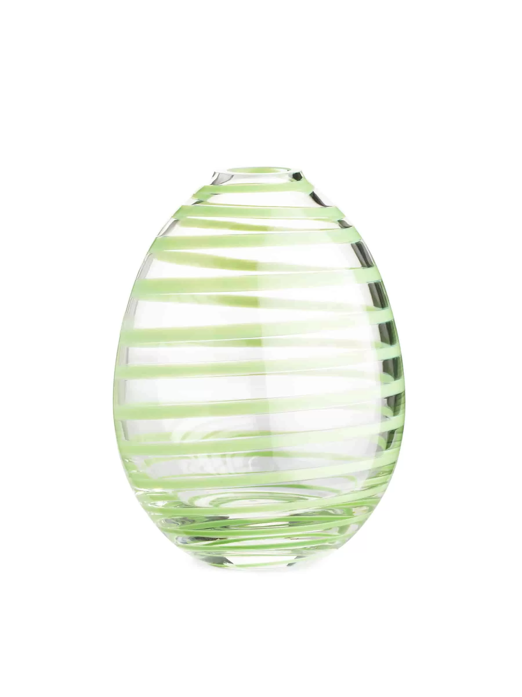 Mini jarrón de cristal diseñado con forma de huevo. Con estampado de rayas. Alto 11,5 cm, ancho 8,5 cm.