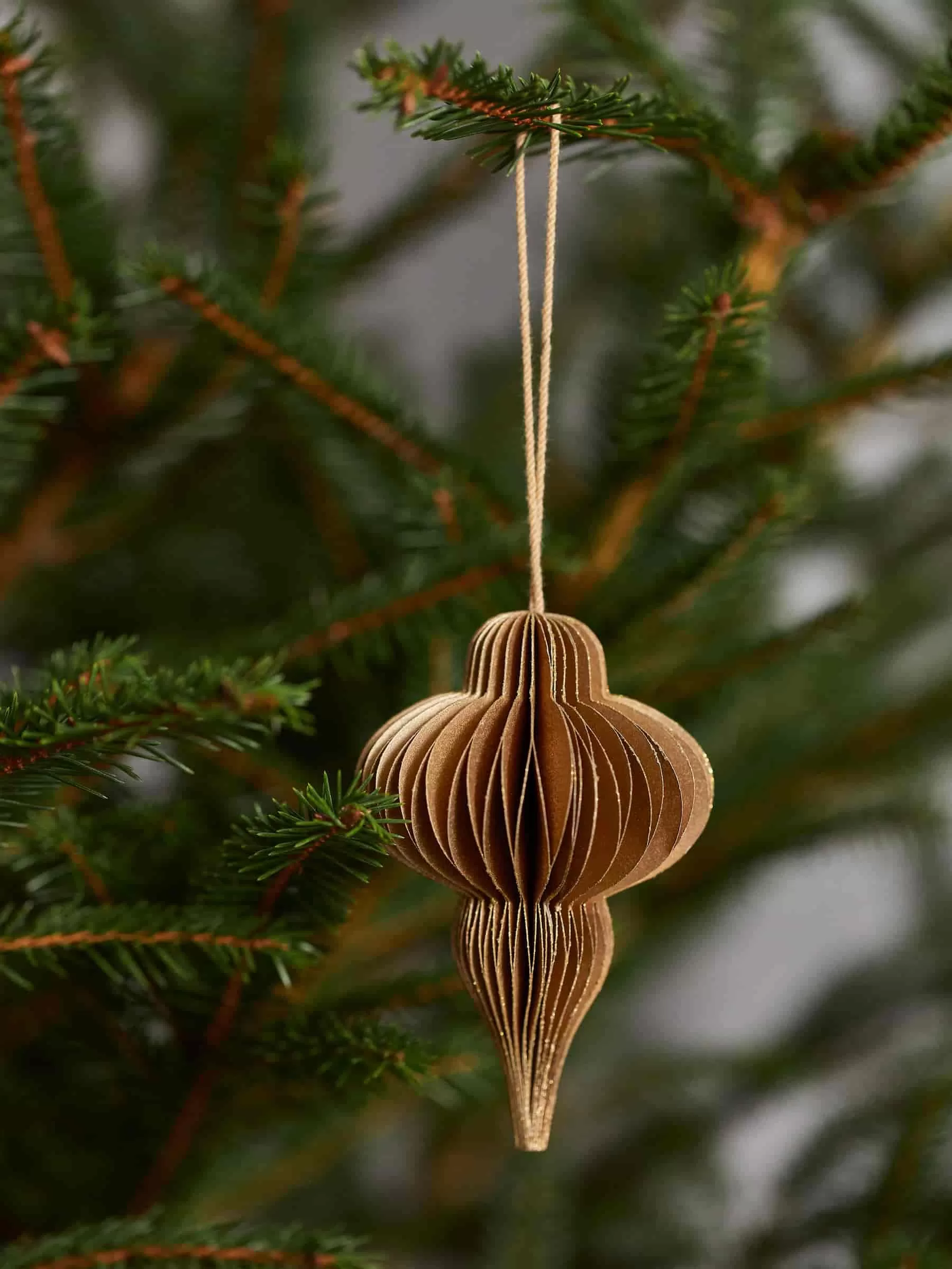 Adornos en forma de panal hechos a mano con papel resistente. Una cuerda de algodón para colgar fácilmente. Juego de dos. Alto 9 cm.