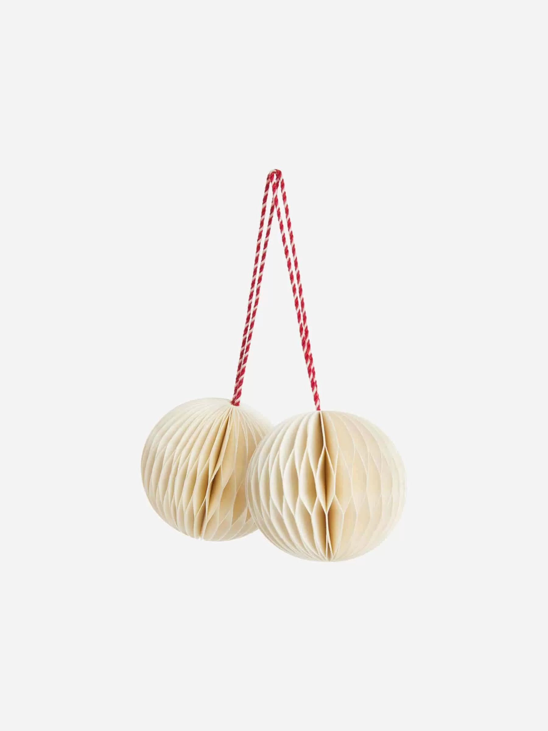 Adornos en forma de panal hechos a mano con papel resistente. Una cuerda de algodón para colgar fácilmente. Juego de dos. Diámetro 5 cm.