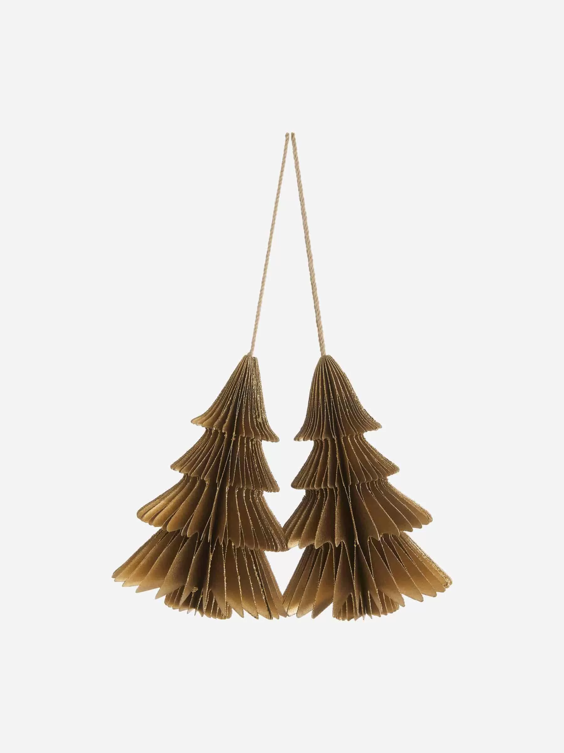 Adornos en forma de panal hechos a mano con papel resistente. Una cuerda de algodón para colgar fácilmente. Juego de dos. Alto 10 cm.