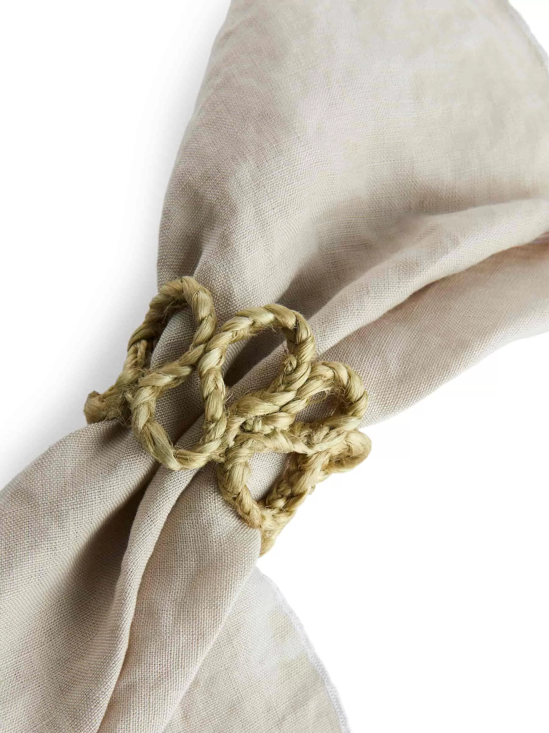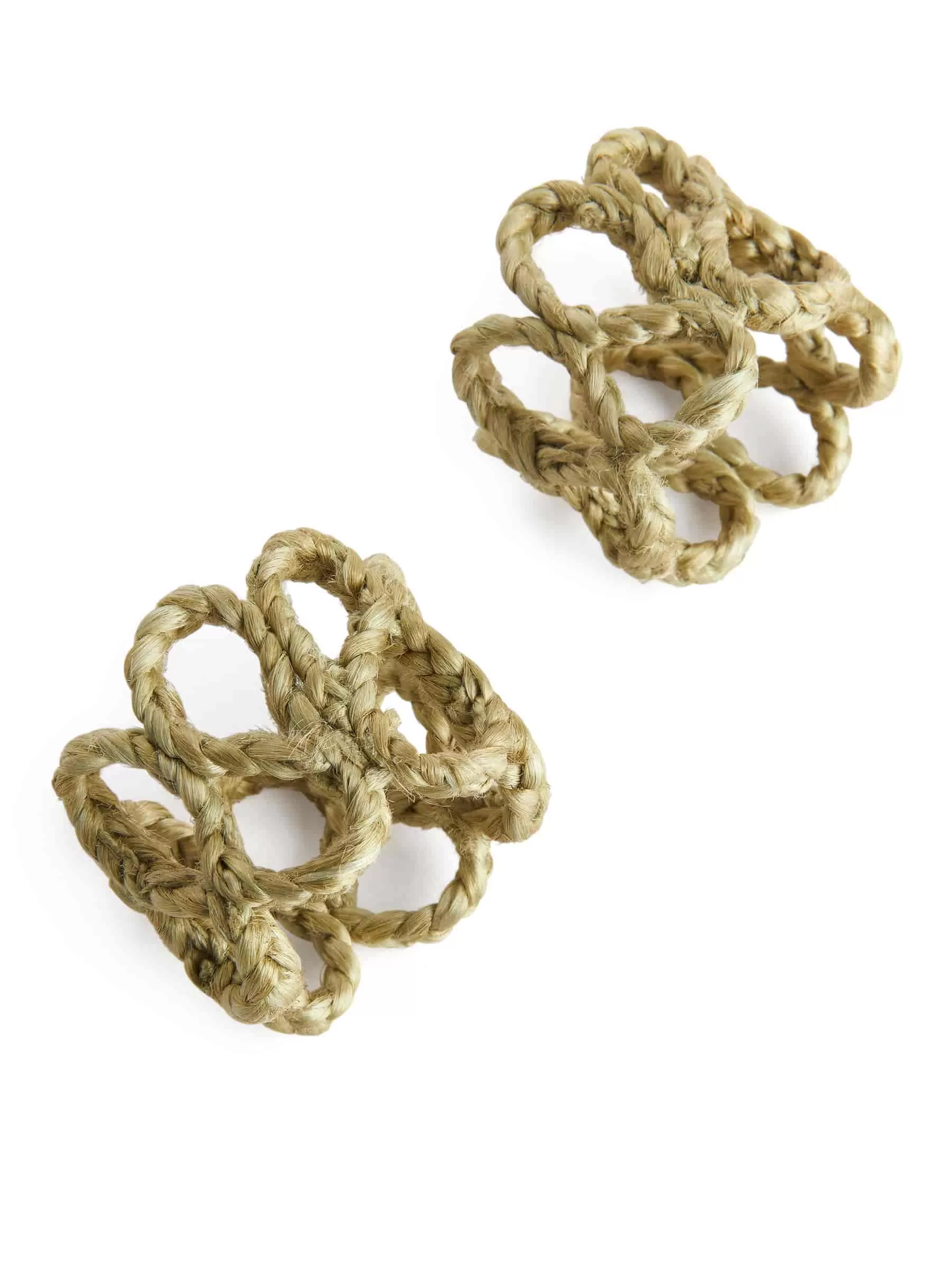 Servilleteros en yute trenzado. Ancho 4,4 cm, alto 4,6 cm., diámetro 4,4 cm. Juego de 2.