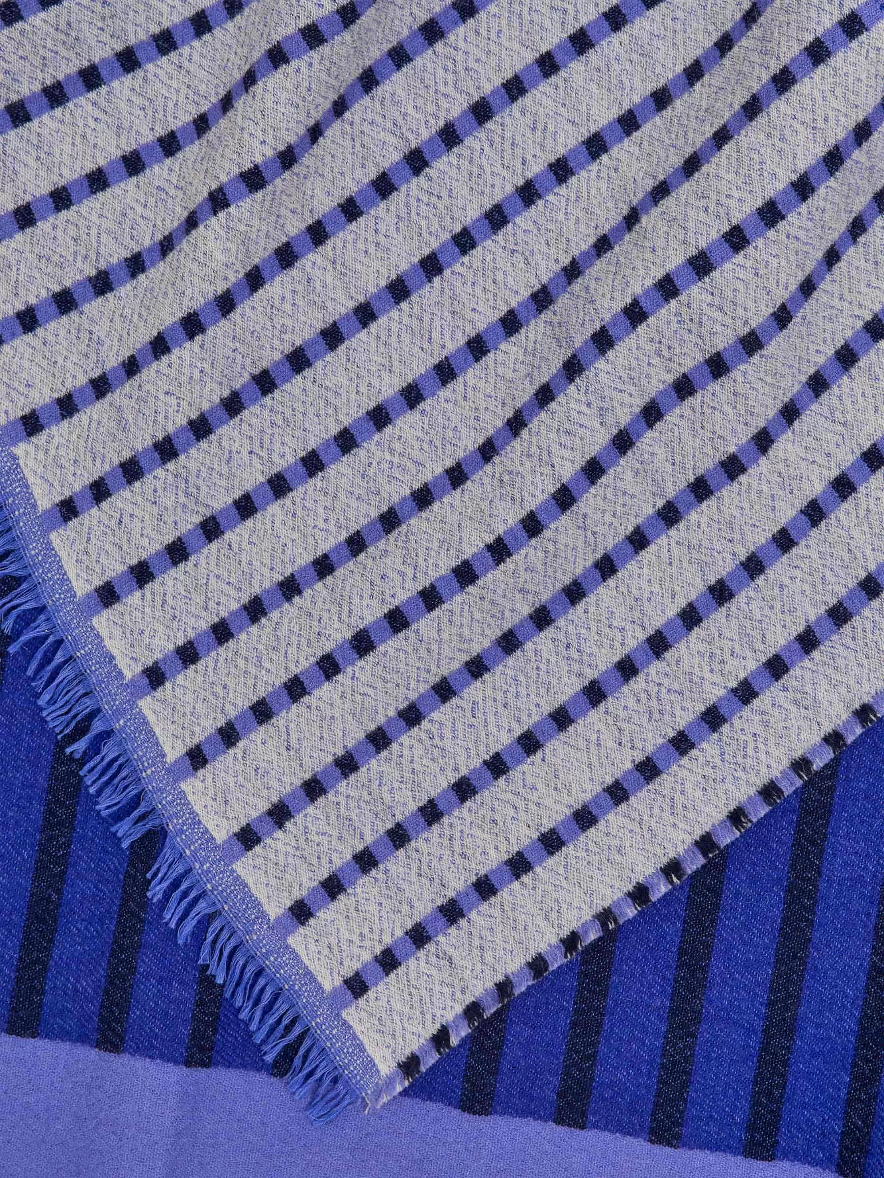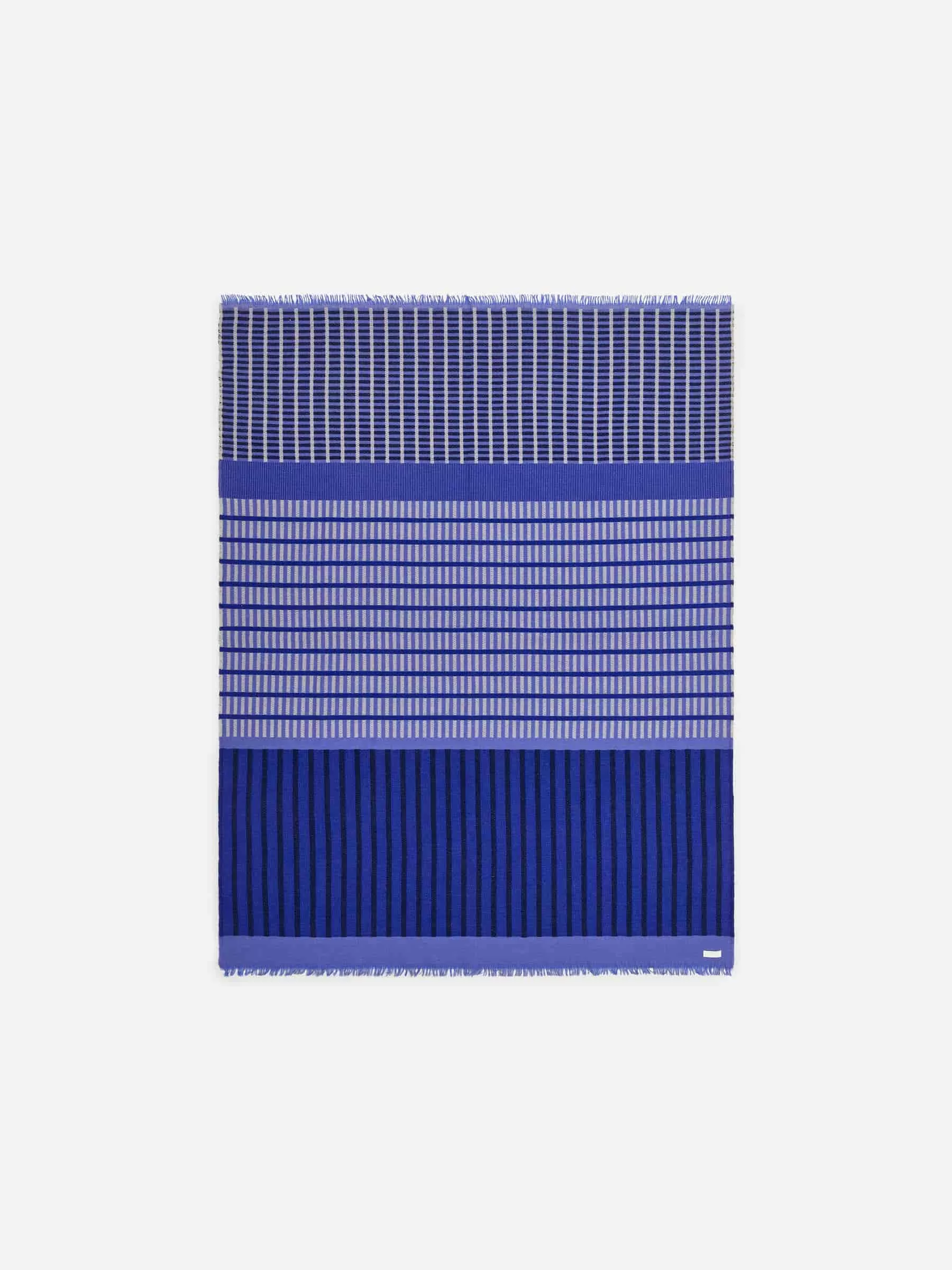 Manta confeccionada en lana. Detallado con flecos a lo largo de los bordes más cortos. Medidas 130cm x 70cm. Esta manta contiene 100 % lana RWS, certificada por el sindicato de control 872195. Los productos certificados según el Estándar de lana responsable (RWS) contienen fibra de lana de granjas certificadas de forma independiente según los requisitos de bienestar animal y gestión de la tierra.