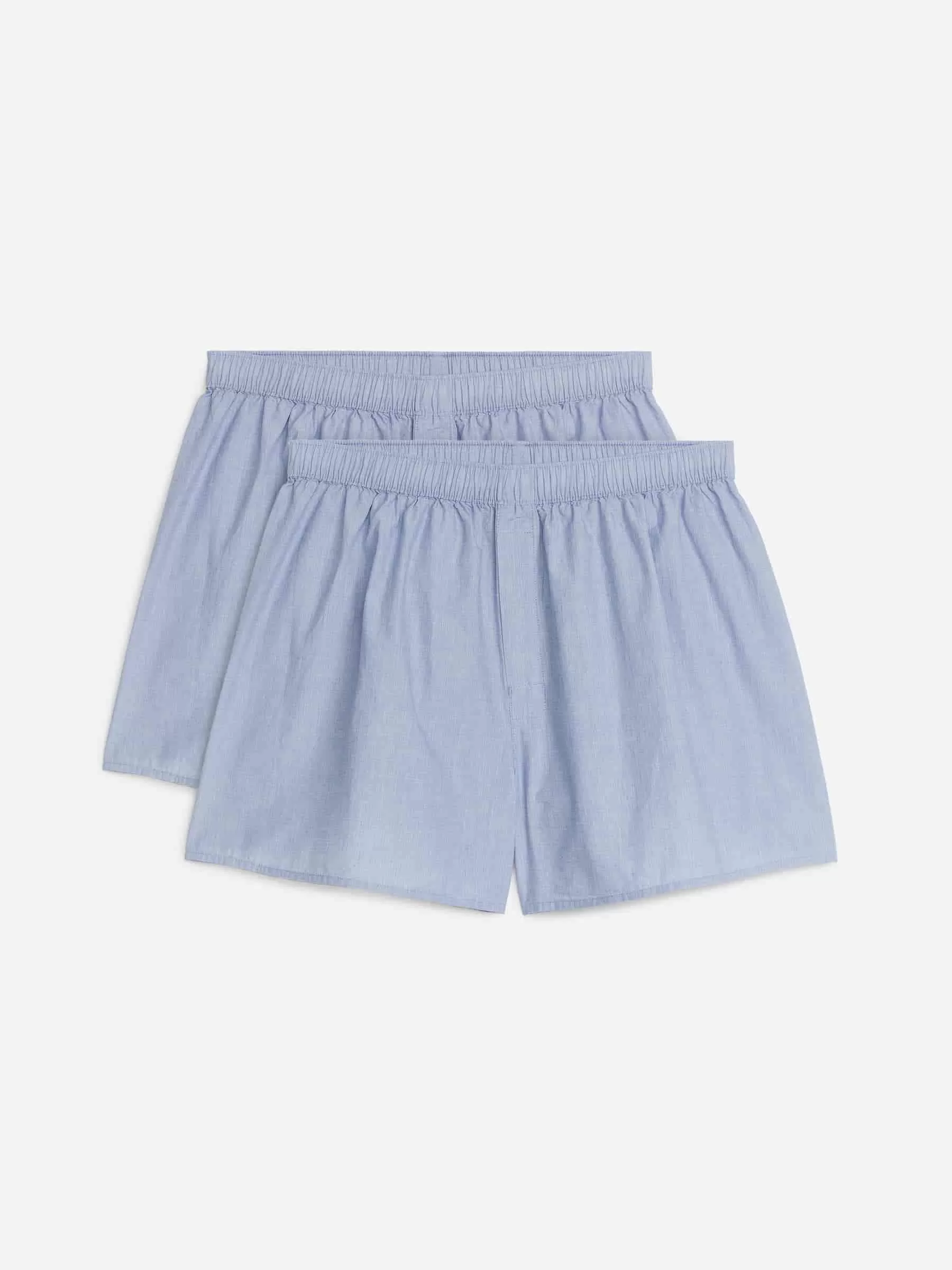 Los boxers tejidos con un diseño clásico vienen con cintura elástica y bragueta delantera con botones ocultos. Un modelo de corte estándar confeccionado con un tejido de algodón ligero y aireado. Se vende en un juego de dos pares.