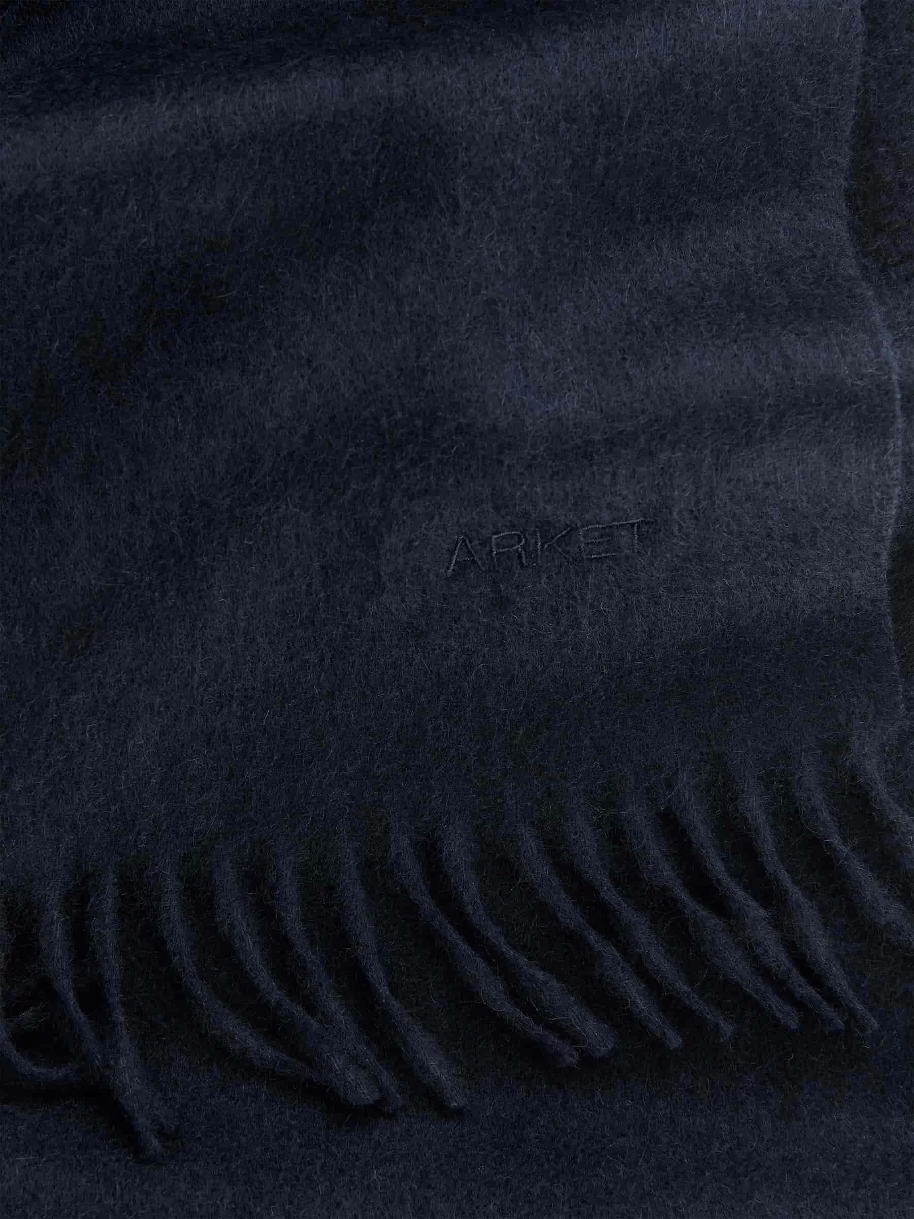 Bufanda tejida suave confeccionada en puro cachemir. Detallado con flecos y un sutil bordado del logo de ARKET. Medidas 160 cm x 30 cm.