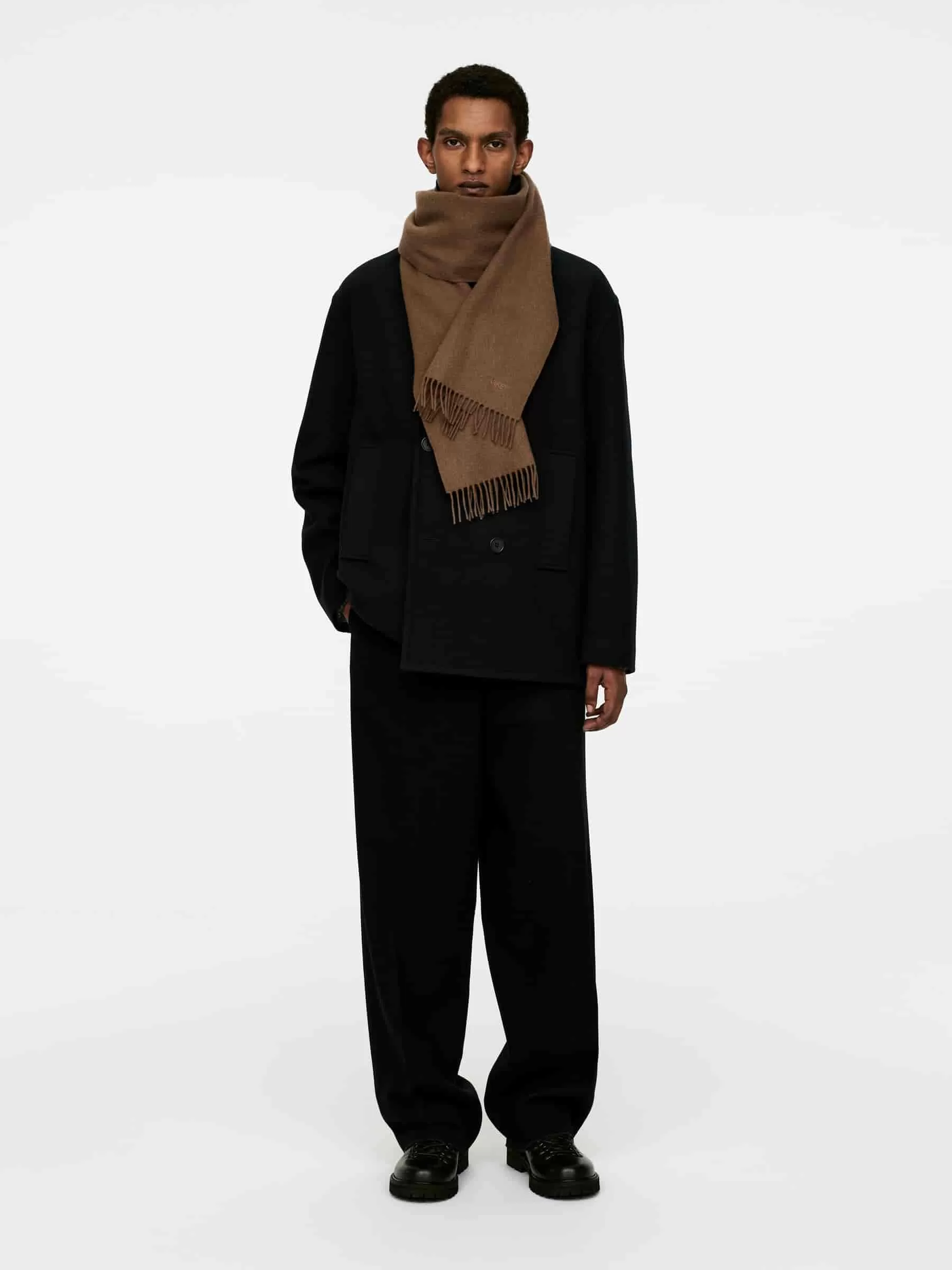 Bufanda clásica de lana con flecos. Medidas 190cm x 30cm. El producto contiene 100% lana RWS (TE-00047206). Los productos certificados según el Estándar de Lana Responsable (RWS) contienen fibra de lana procedente de granjas certificadas de forma independiente según los requisitos de bienestar animal y gestión de la tierra.