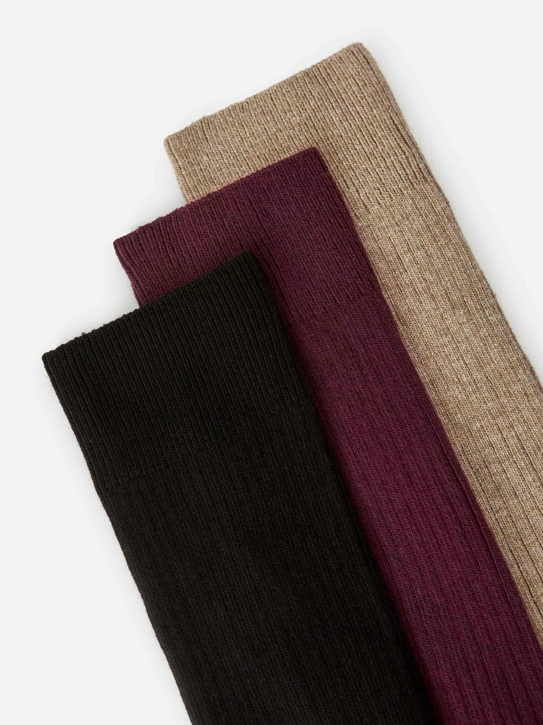 ARKE Hombre Calcetines Supima Algodón Canalé Set de 3 pares Negro/Borgoña/Beige