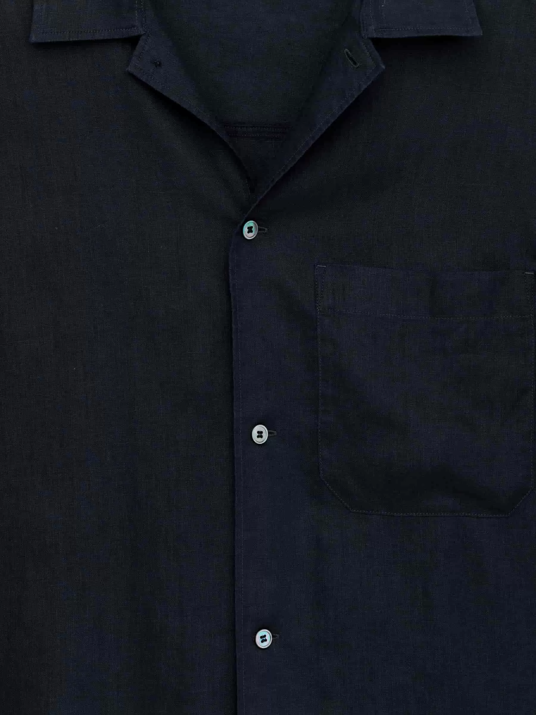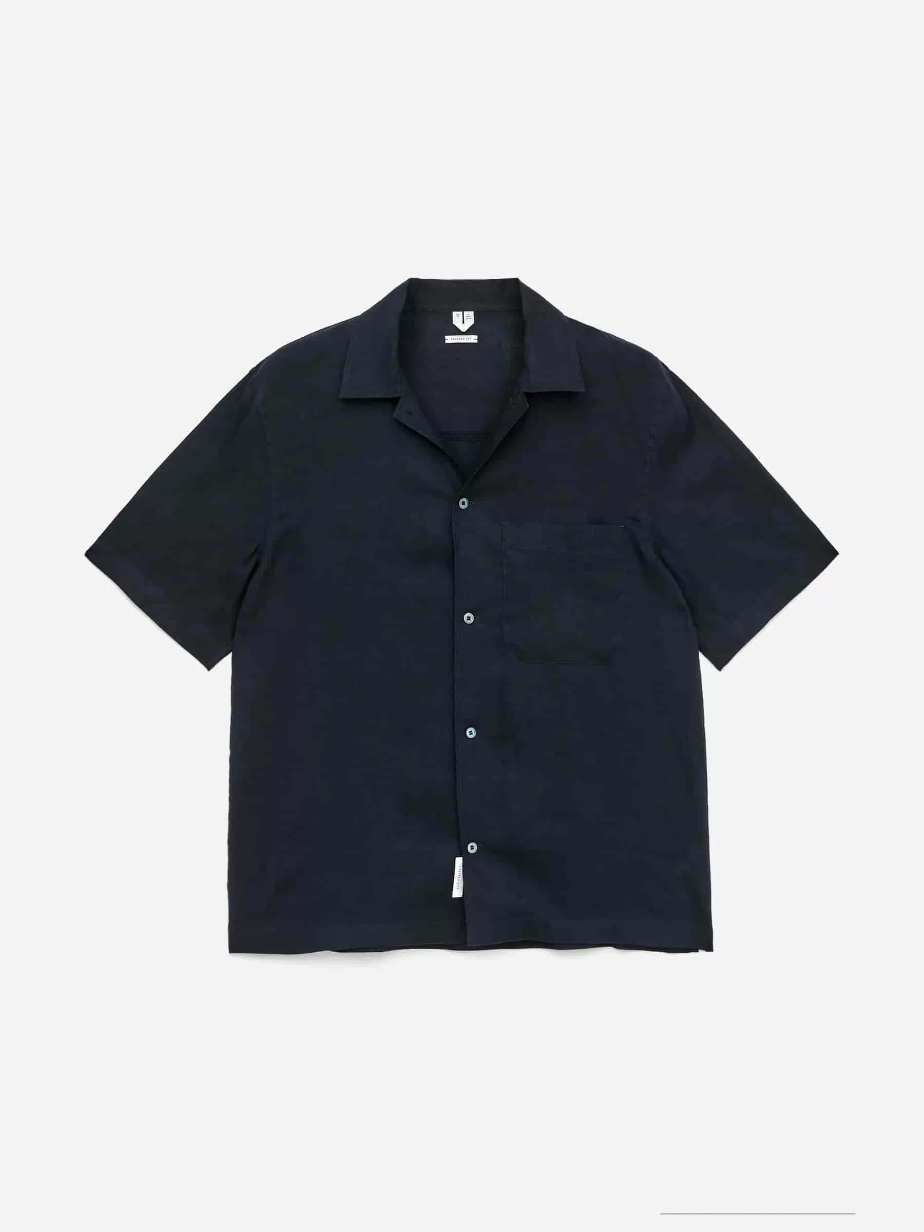 ARKE Hombre Camisa de lino de manga corta Azul oscuro