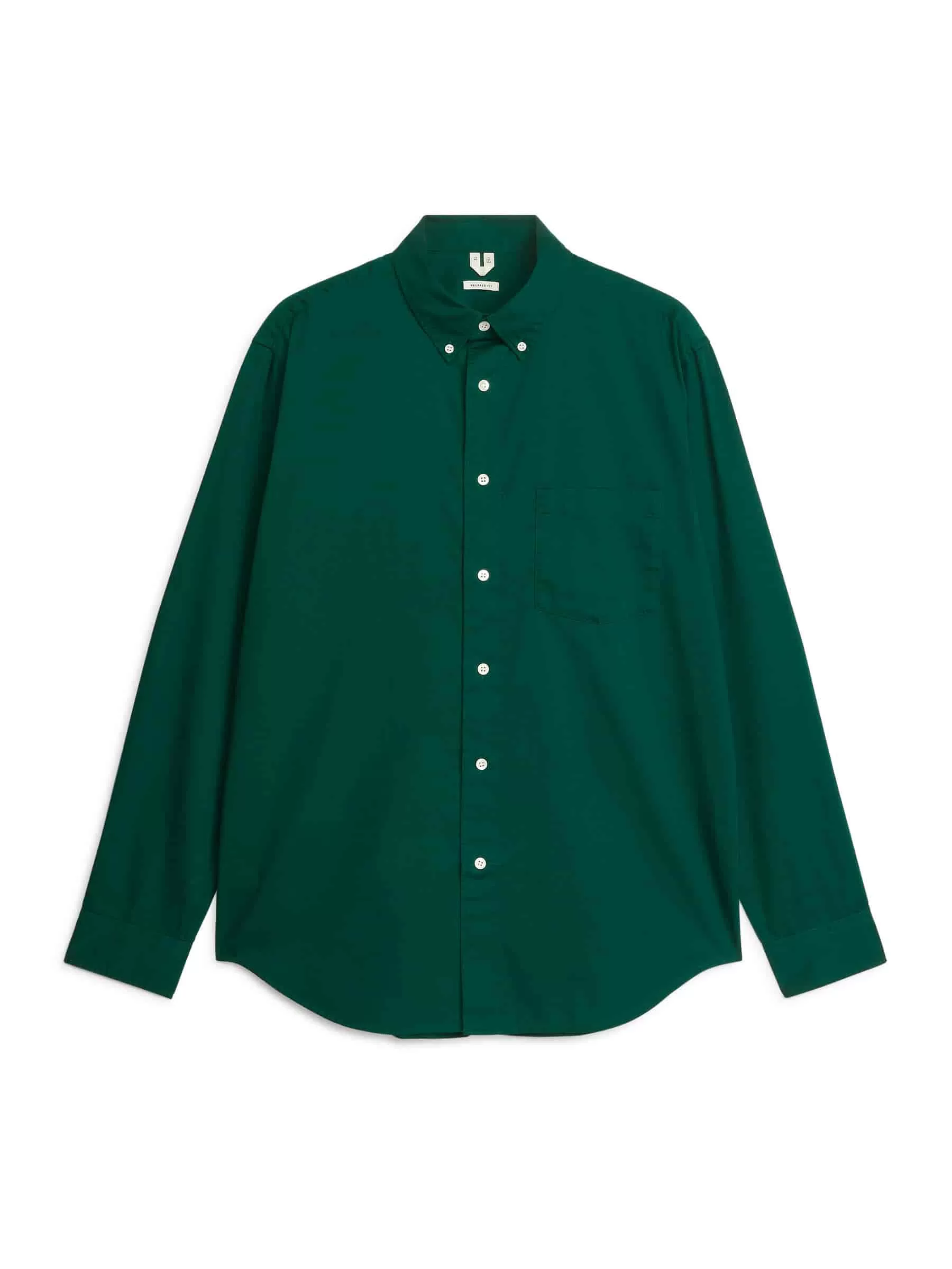 ARKE Hombre Camisa de sarga de algodón verde oscuro