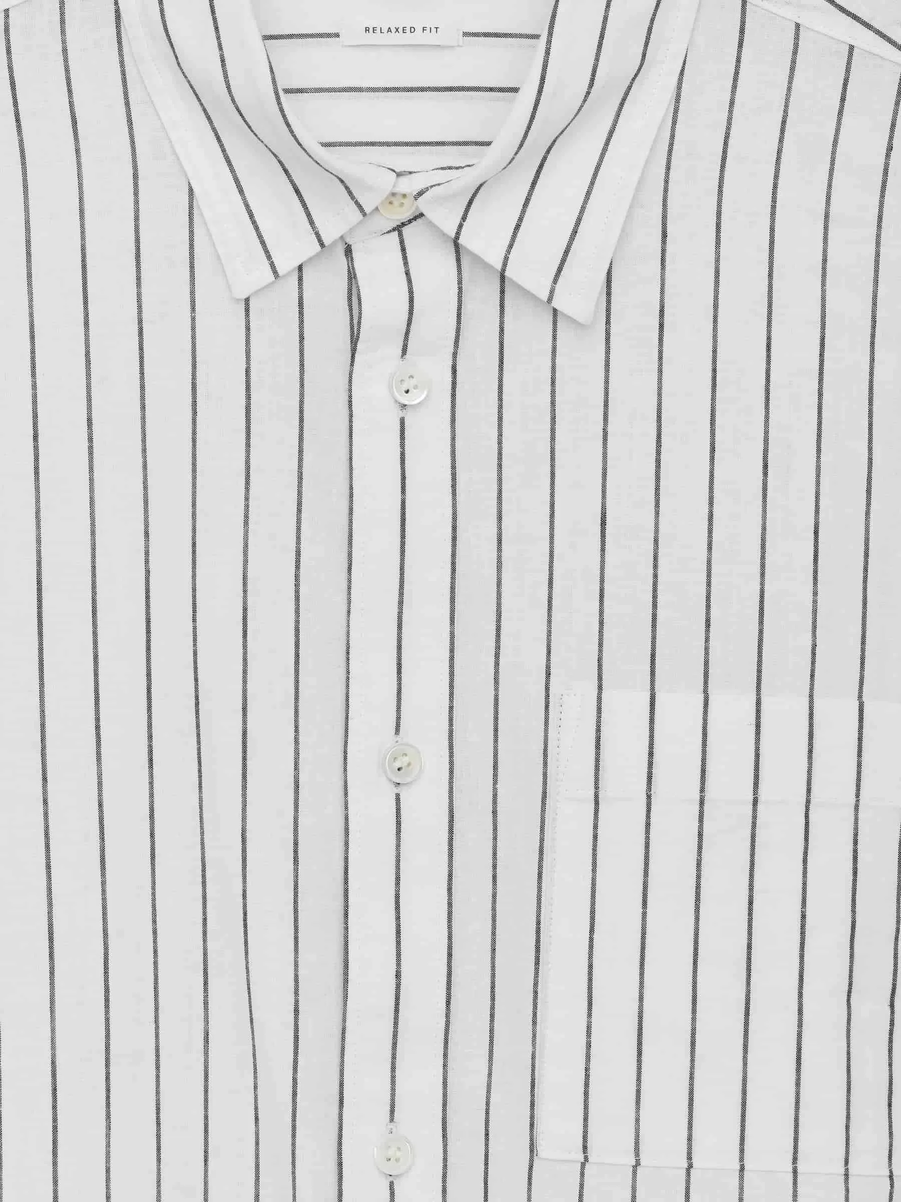 Camisa de manga corta confeccionada en mezcla de algodón y lino. Corte para un ajuste relajado, diseñado con un cuello normal y un único bolsillo en el pecho.