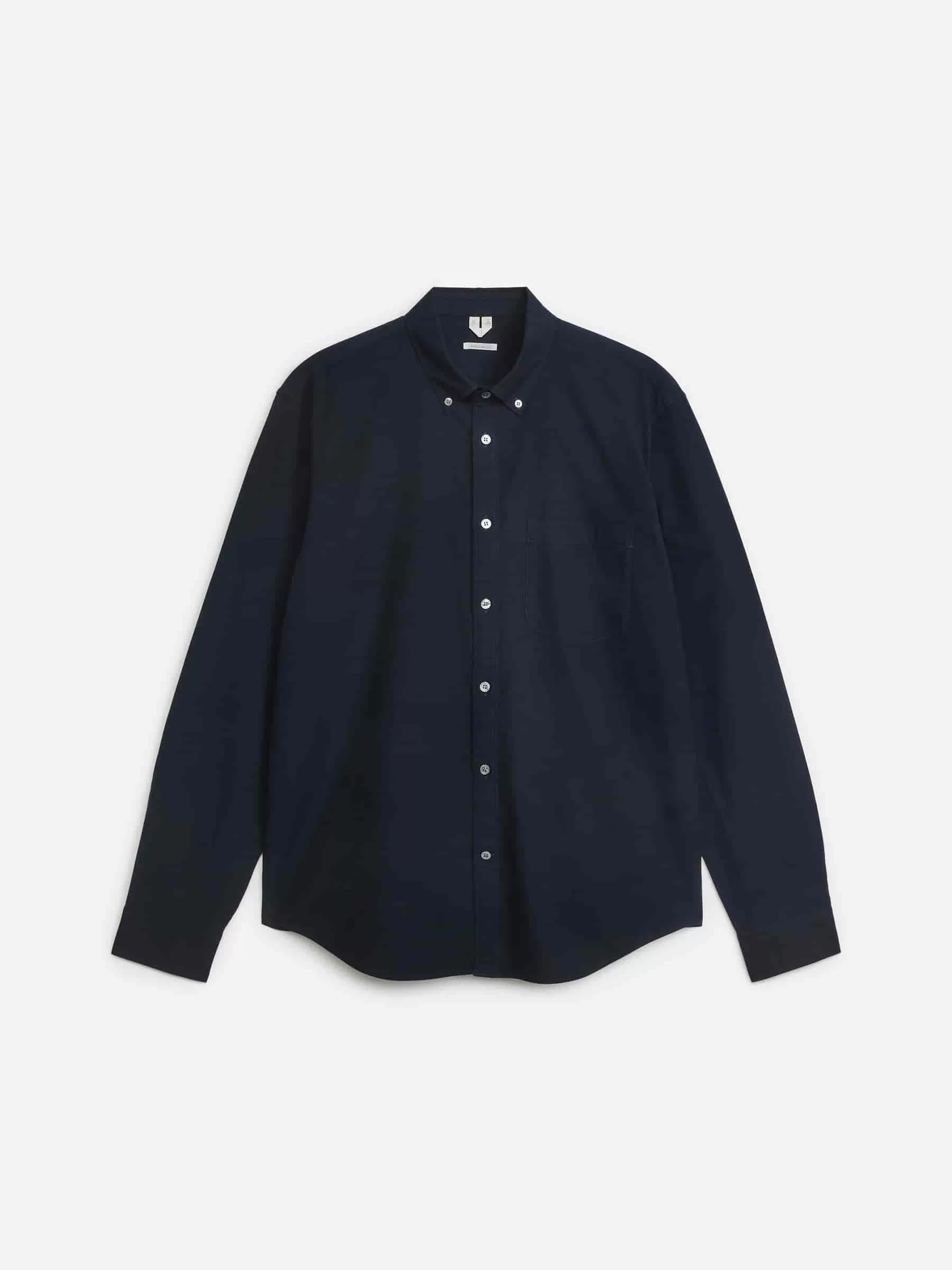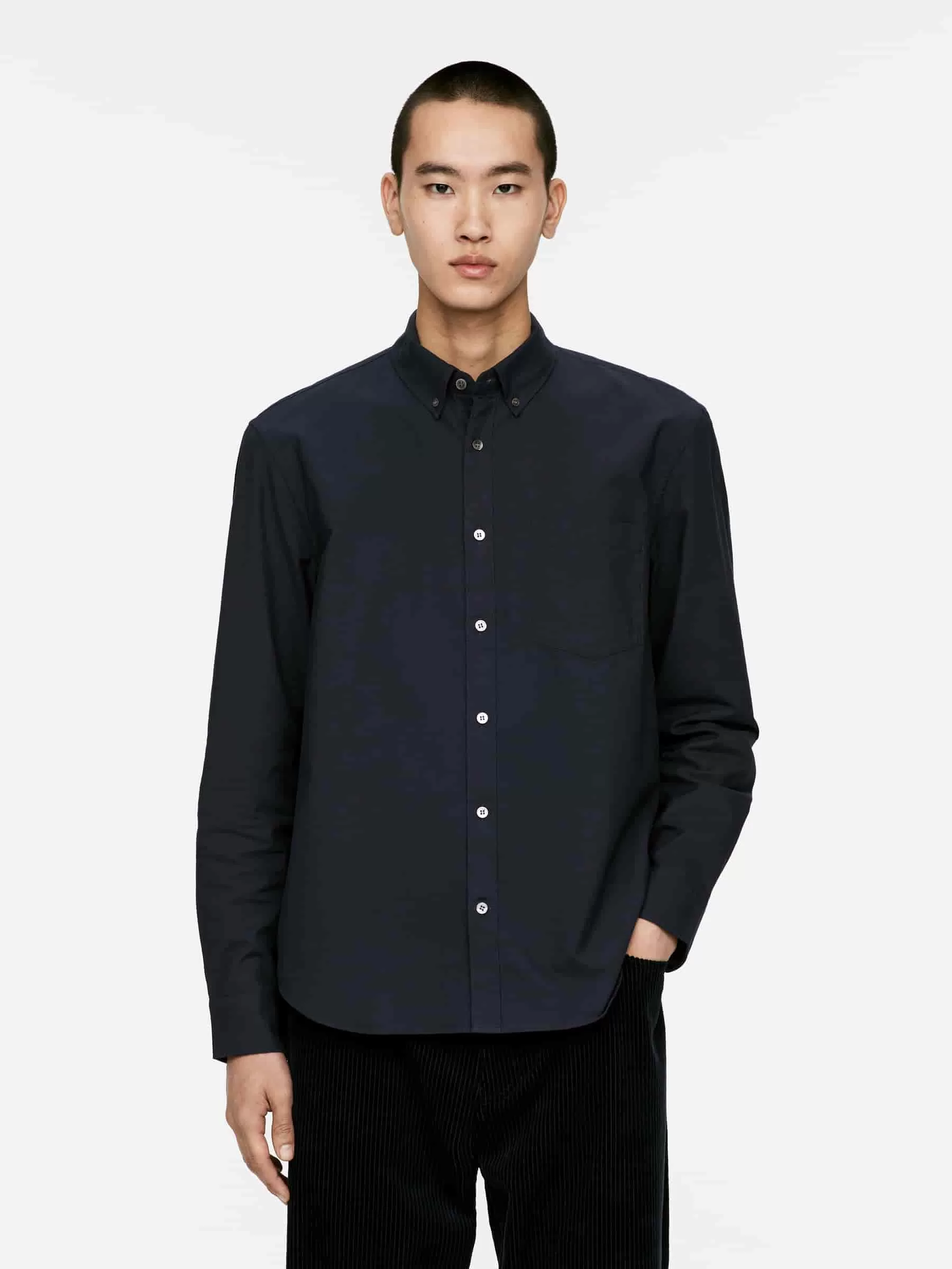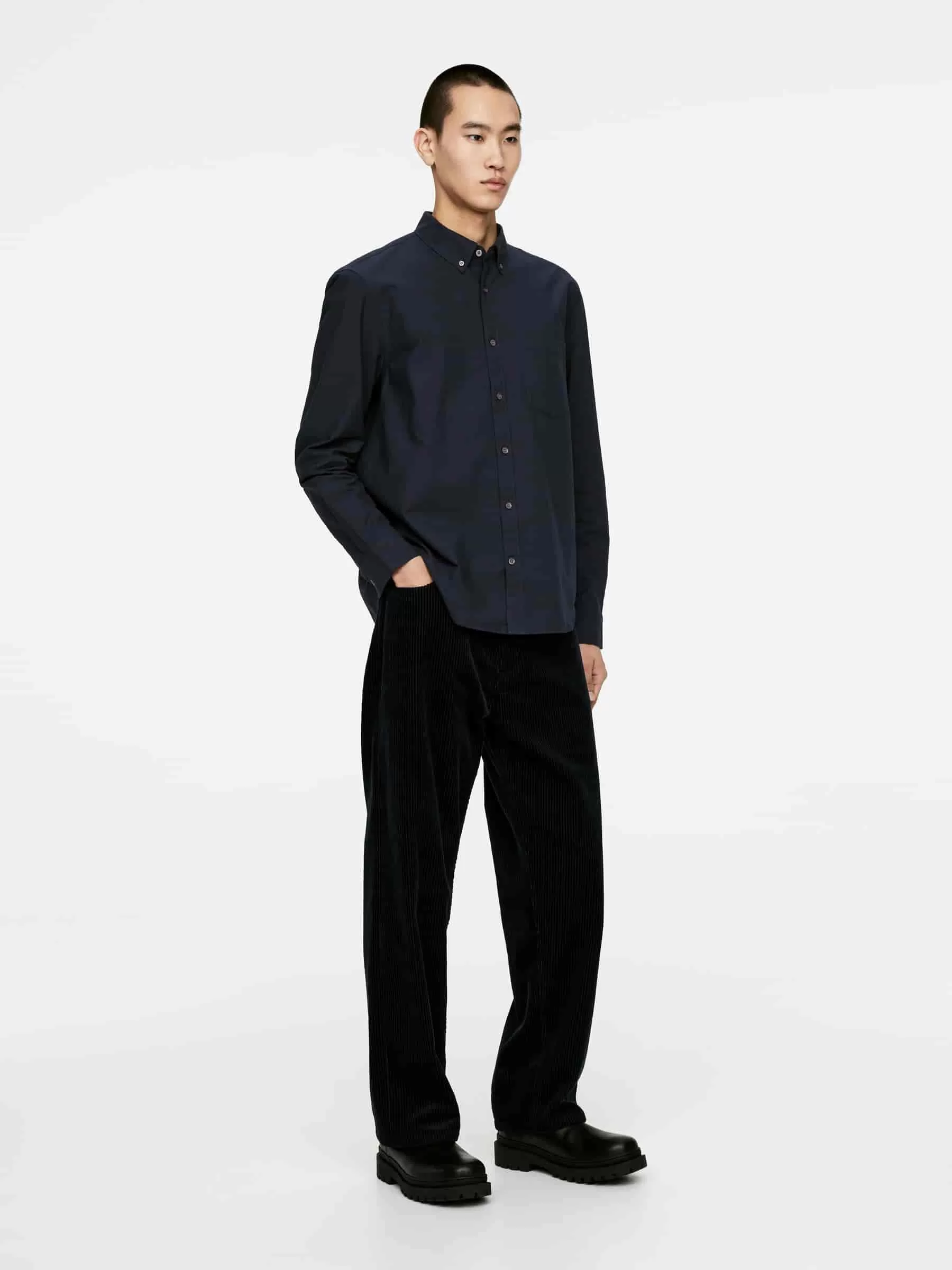Esta camisa es uno de los diseños arquetípicos de ARKET, una camisa regular fit con cuello abotonado. Esta iteración está cosida con un tejido Oxford. Un estilo casual con tapeta frontal regular y bolsillo en el pecho. Dobladillo redondeado.