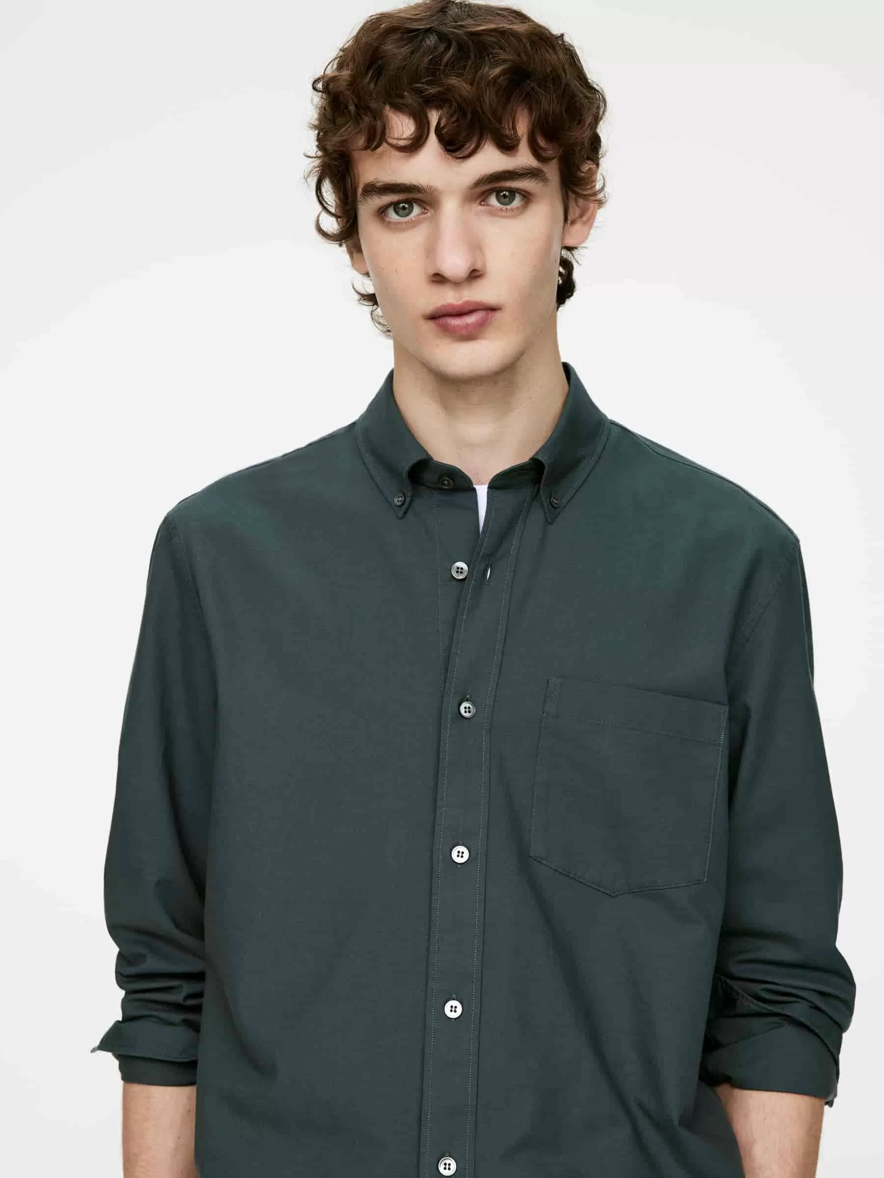 Esta camisa es uno de los diseños arquetípicos de ARKET, una camisa regular fit con cuello abotonado. Esta iteración está cosida con un tejido Oxford. Un estilo casual con tapeta frontal regular y bolsillo en el pecho. Dobladillo redondeado.