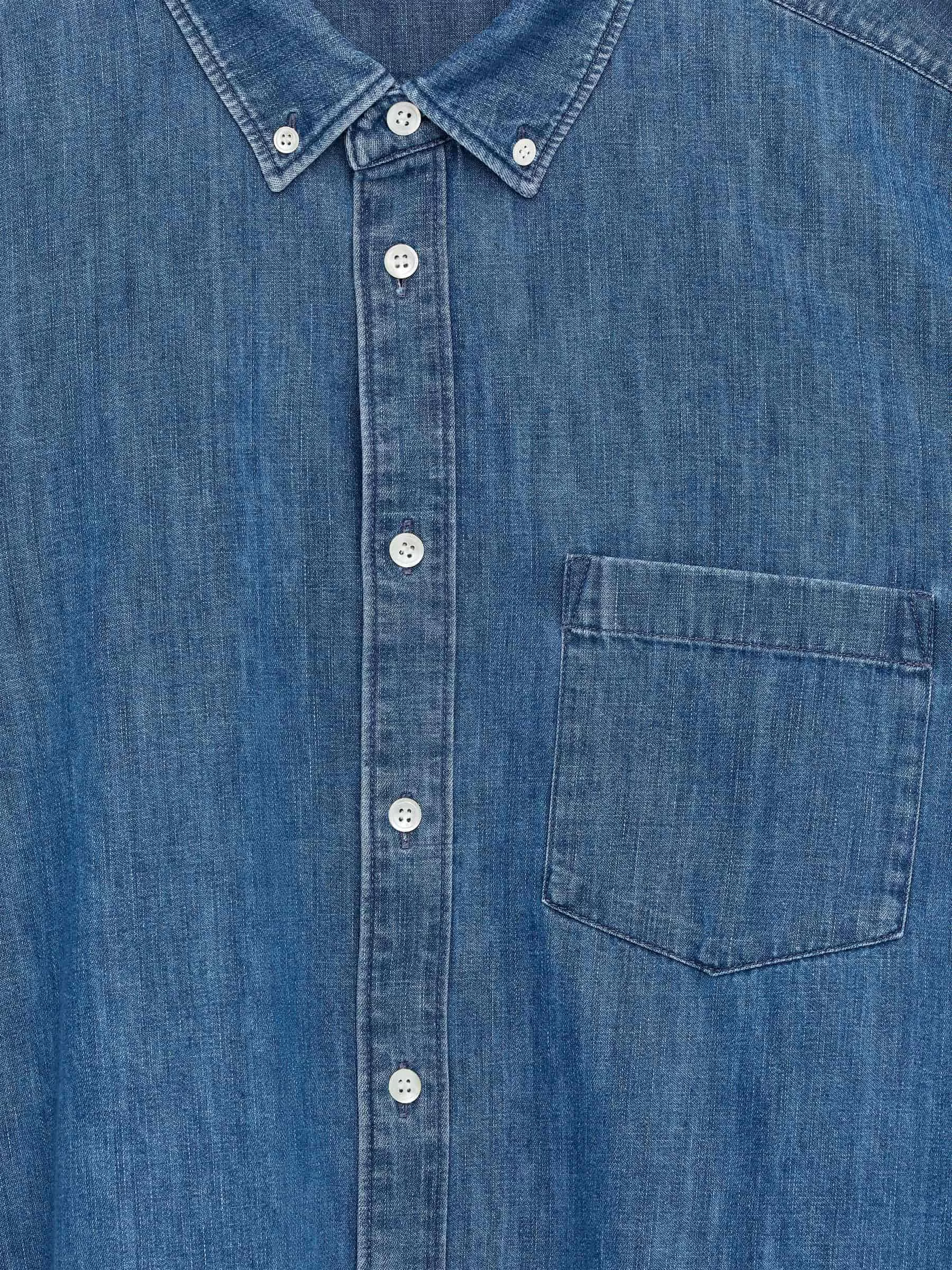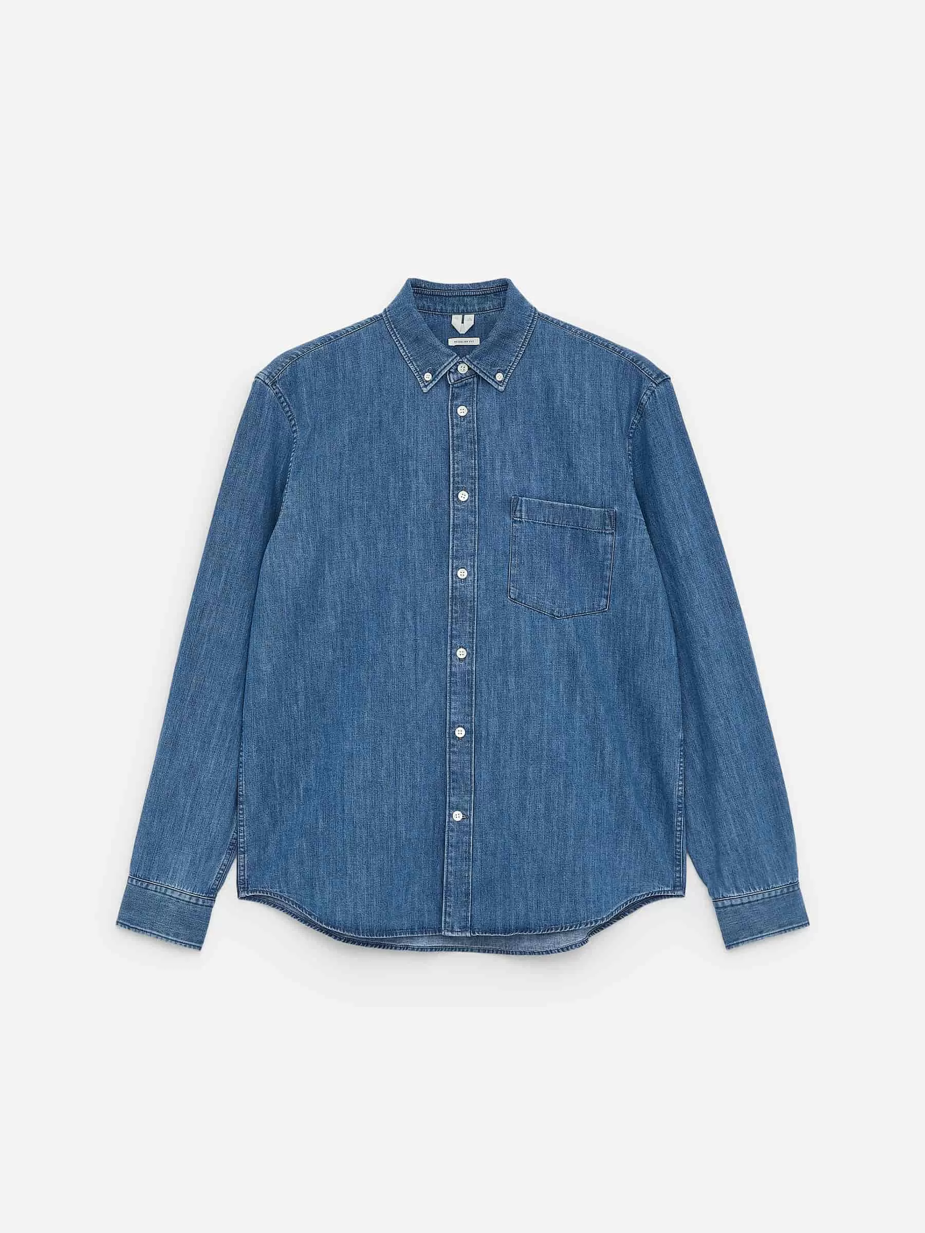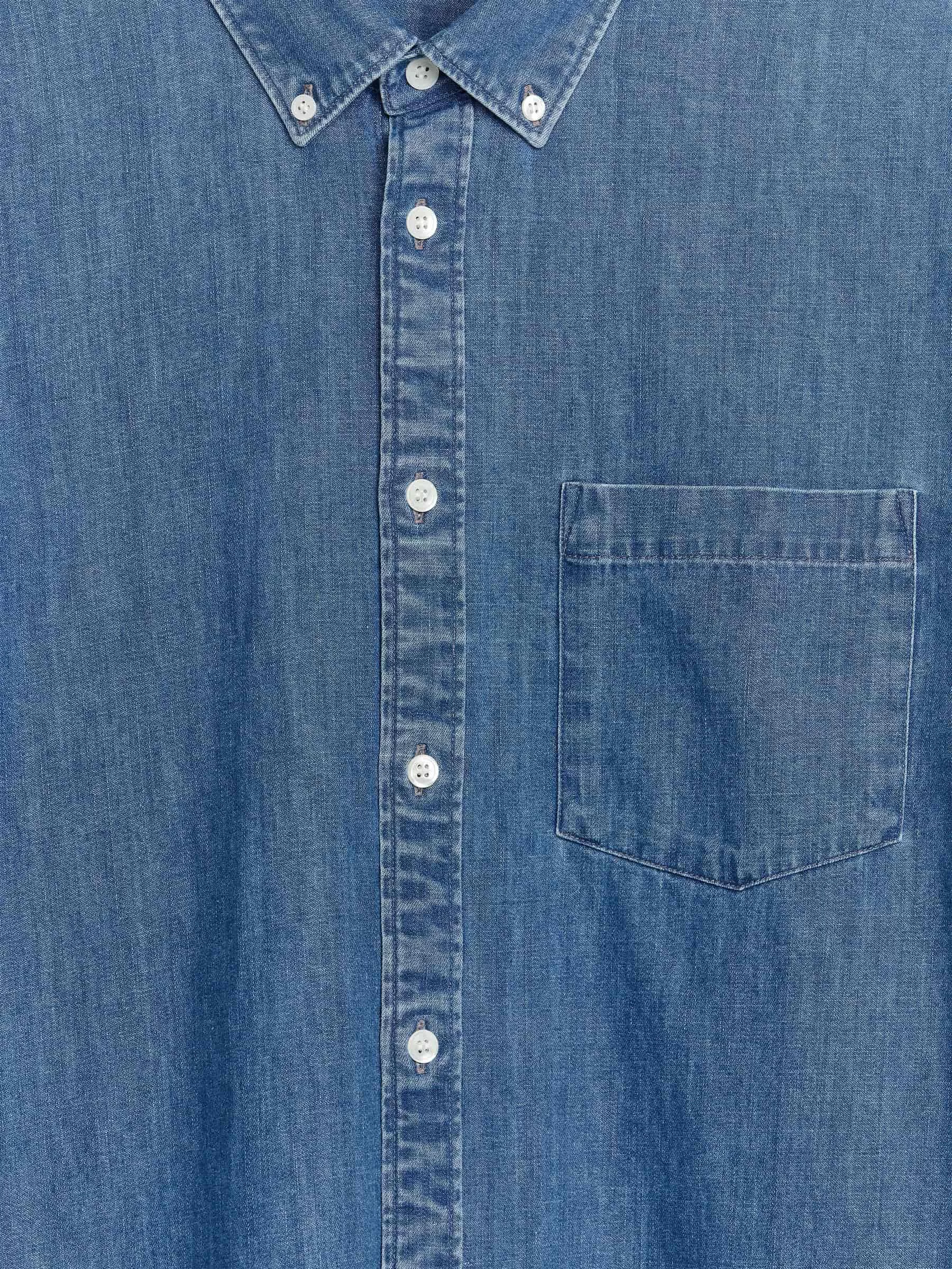 Camisa vaquera con botones y corte regular. Diseñado con bolsillo en el pecho y puños abotonados.