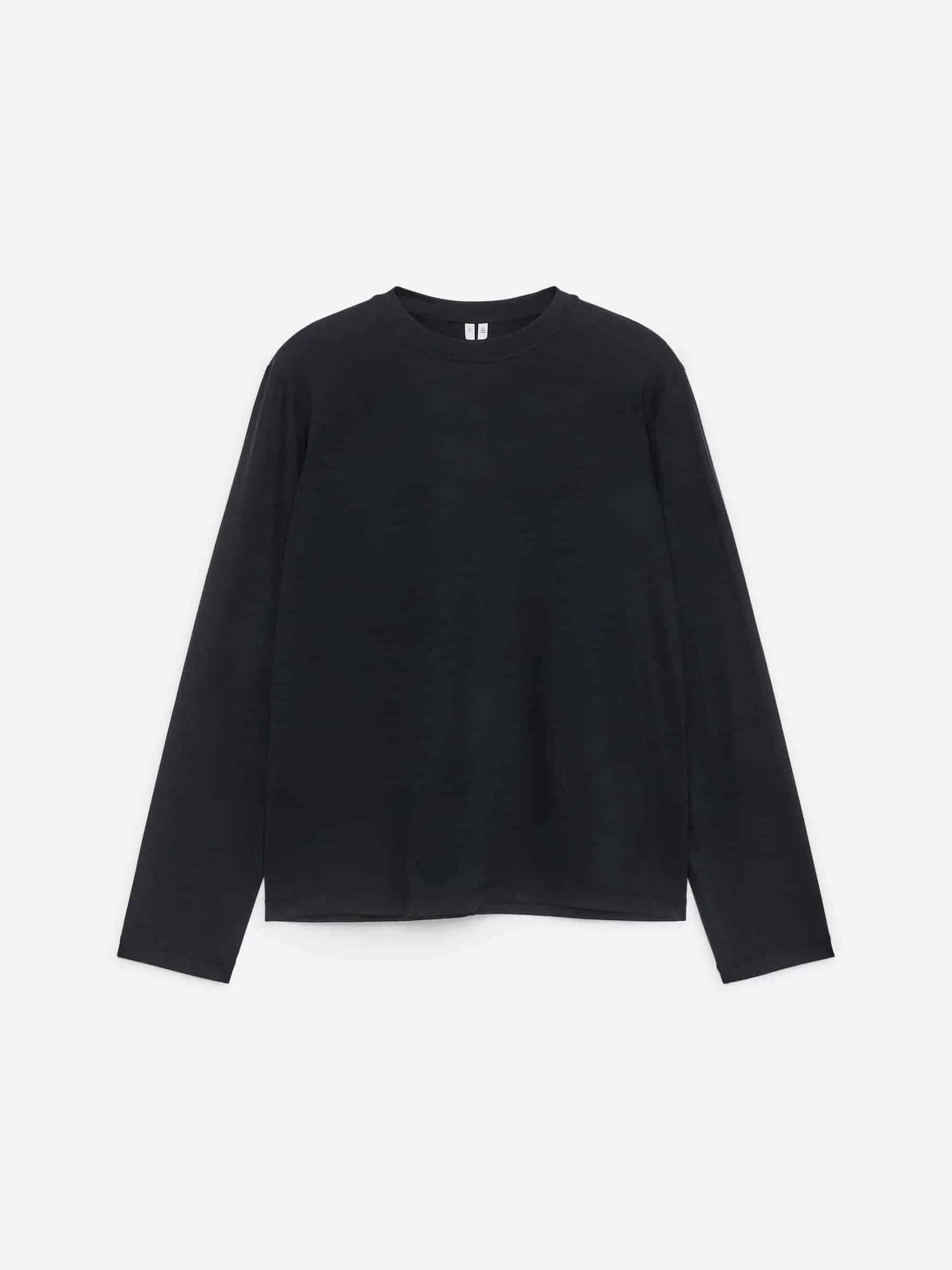 Camiseta de manga larga confeccionada en una mezcla de lyocell y viscosa con un tacto suave y sedoso. Ajuste regular.