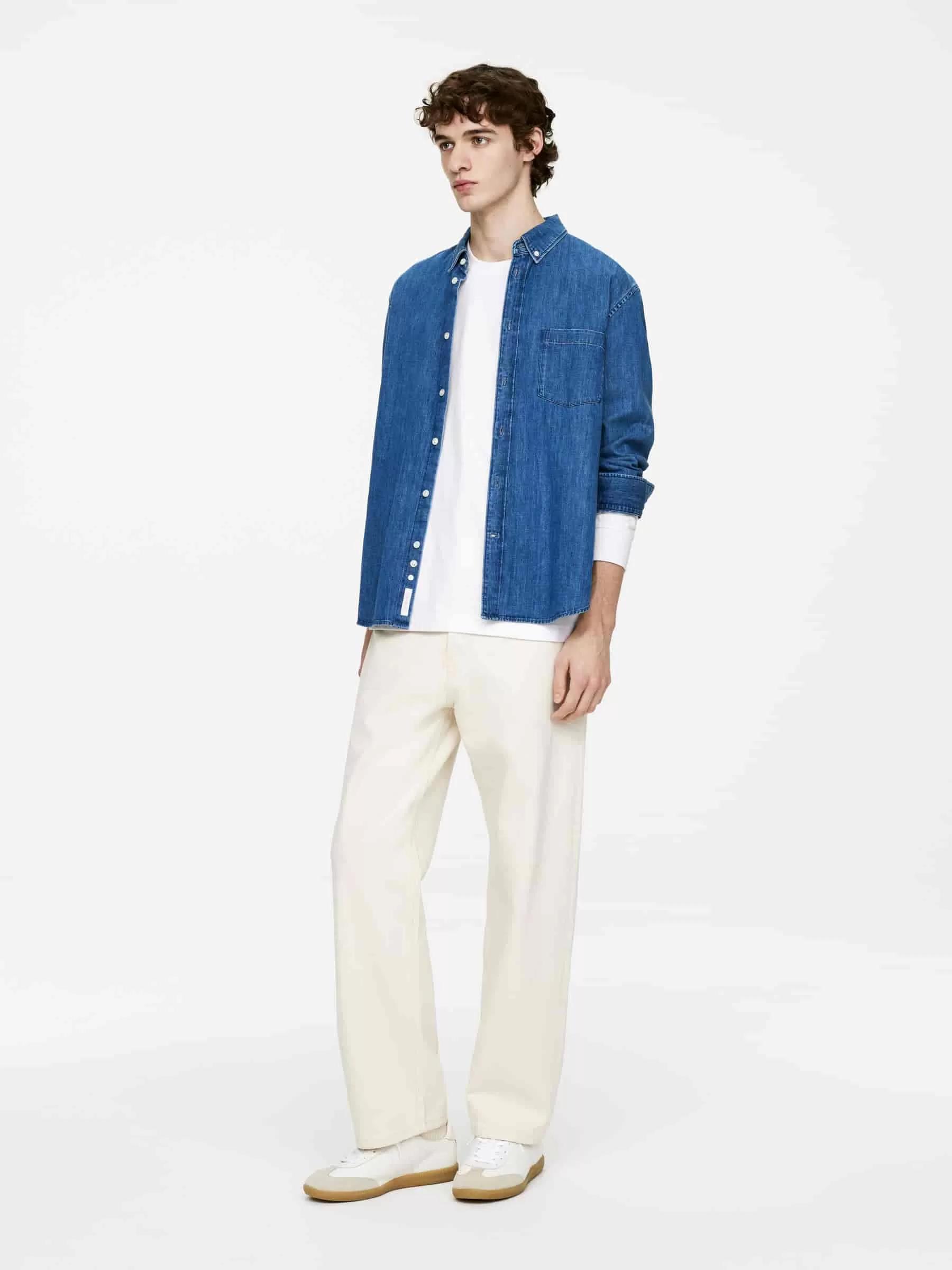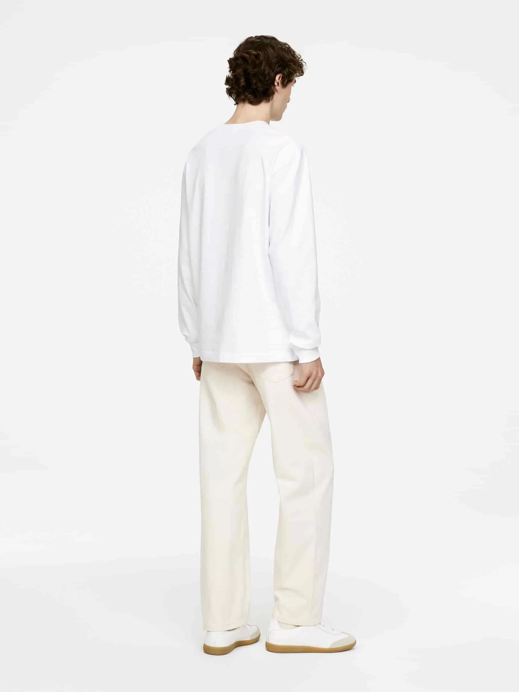 Camiseta de algodón de manga larga, corte holgado y hombros caídos. Canalé en puños y cuello.