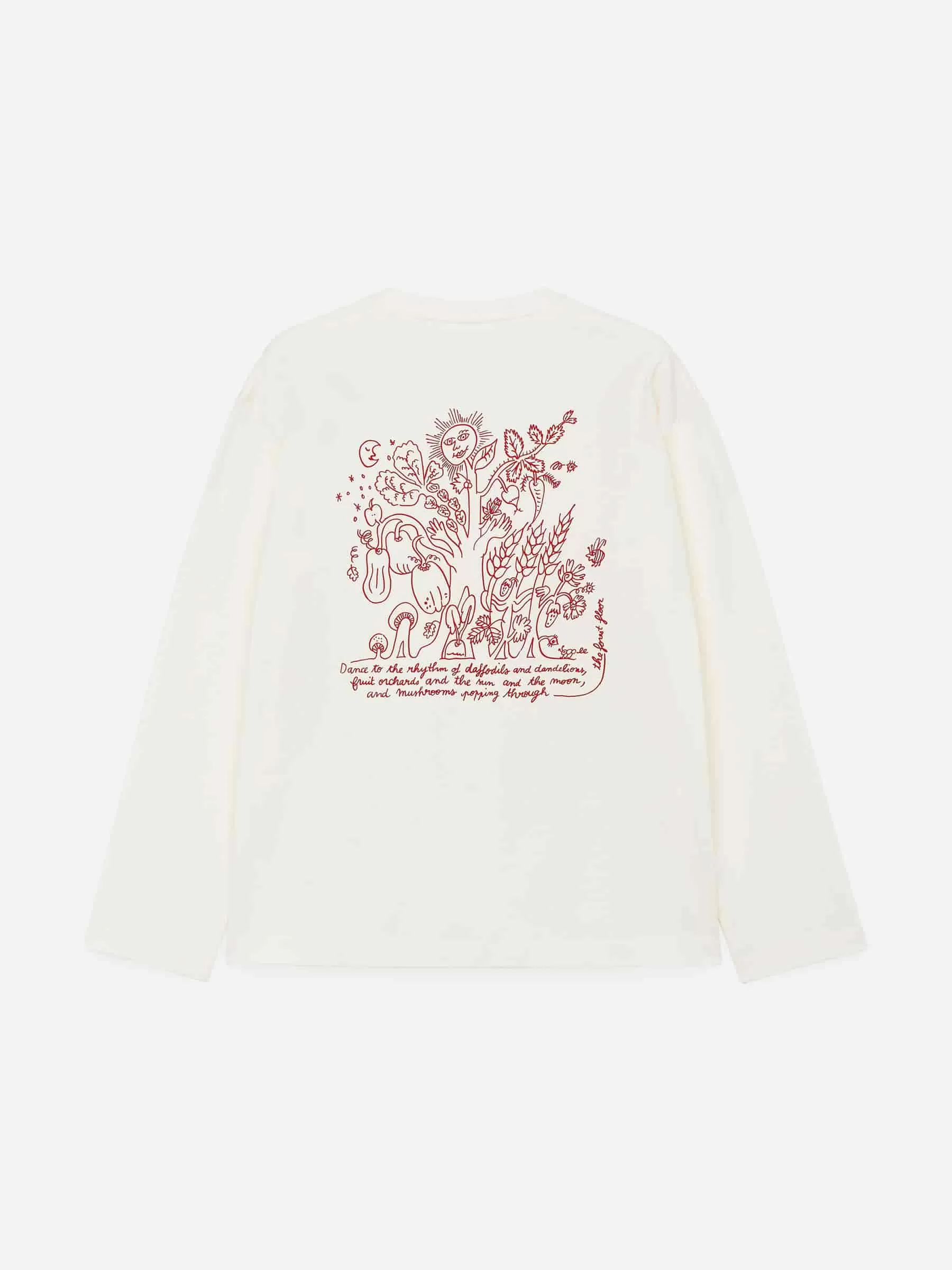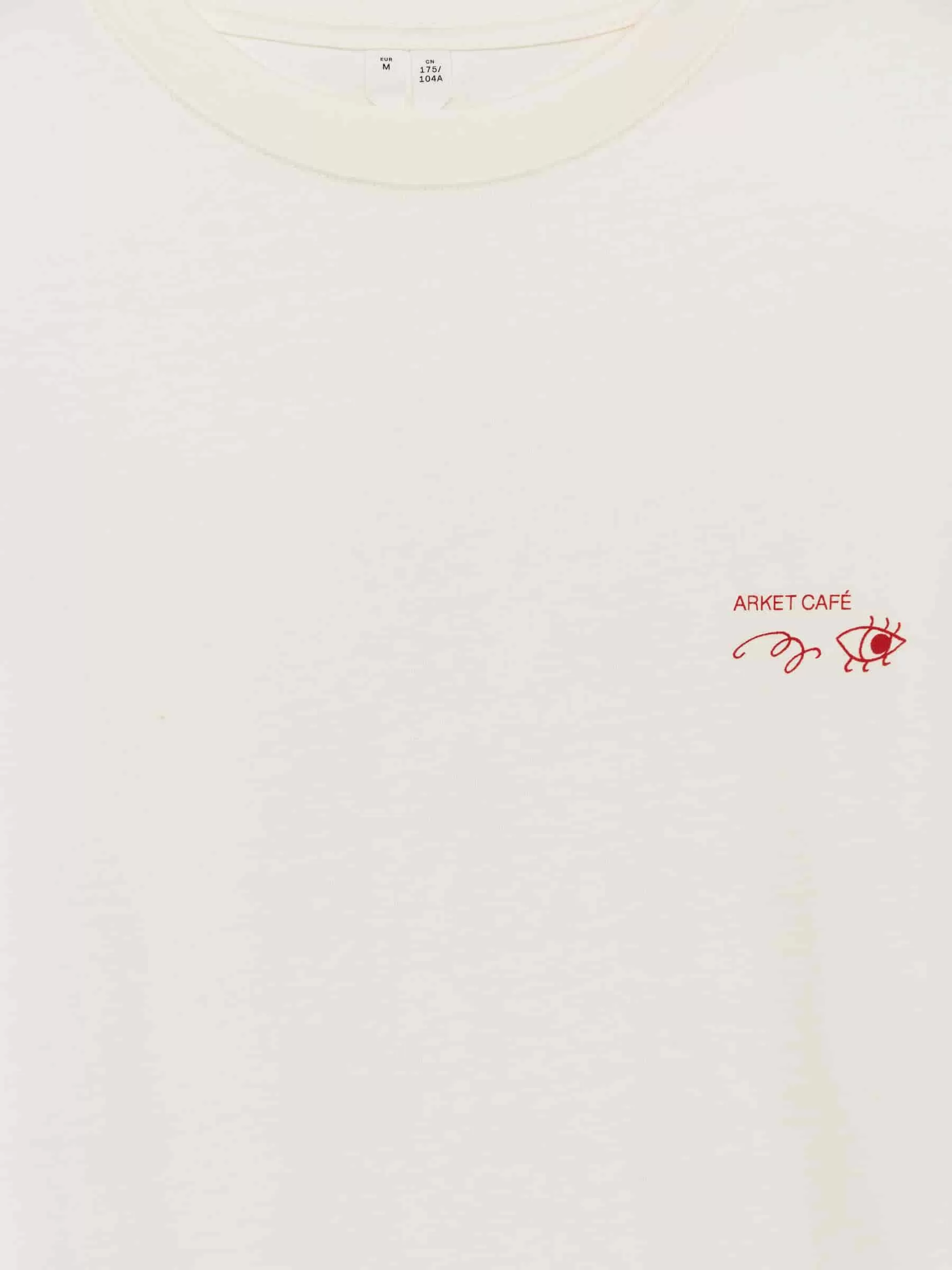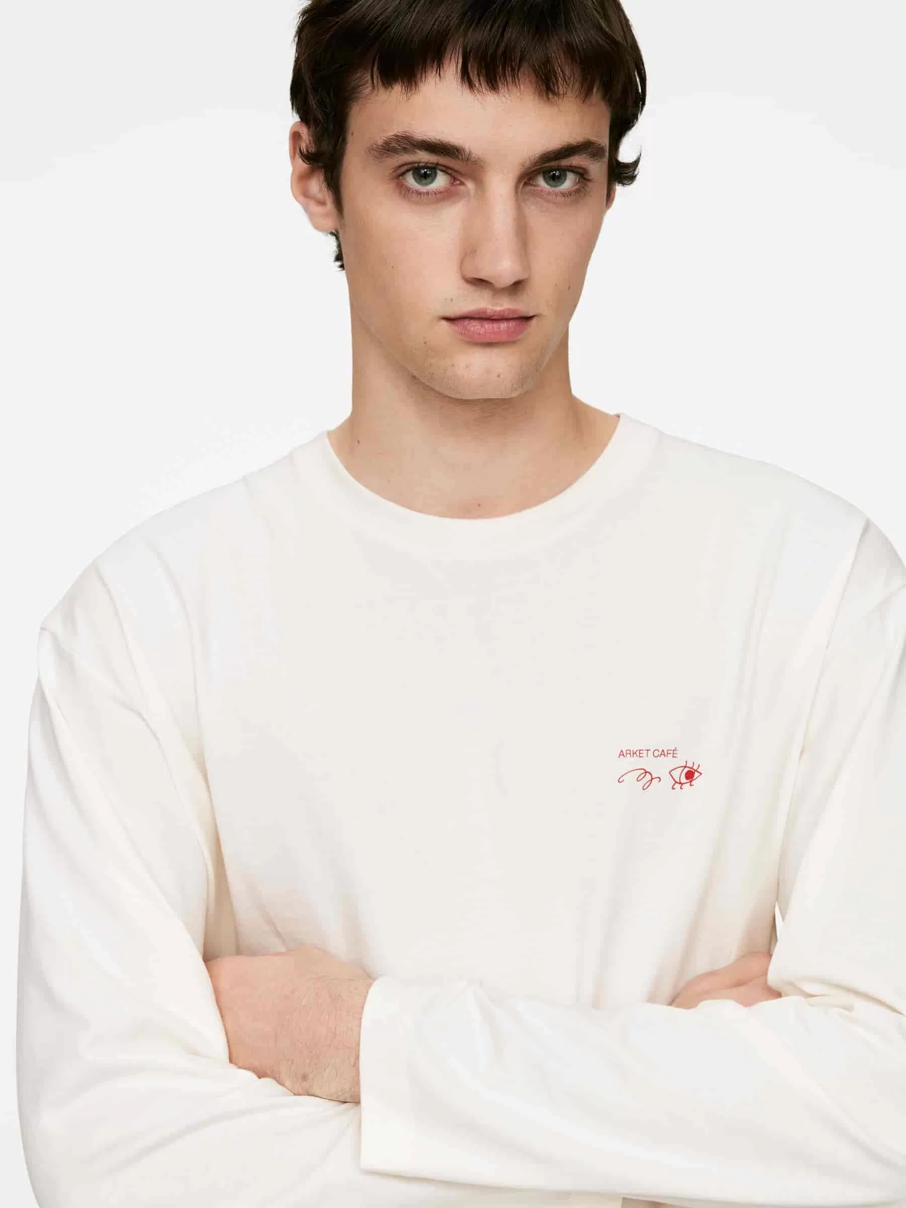 Camiseta unisex con motivo estampado tanto en delantero como en espalda. Un estilo de manga larga confeccionado con un punto sencillo de algodón de peso medio de 220 GSM. Corte para un ajuste generoso. Este producto forma parte de la colección ARKET CAFÉ con ilustraciones de Olga Prader.