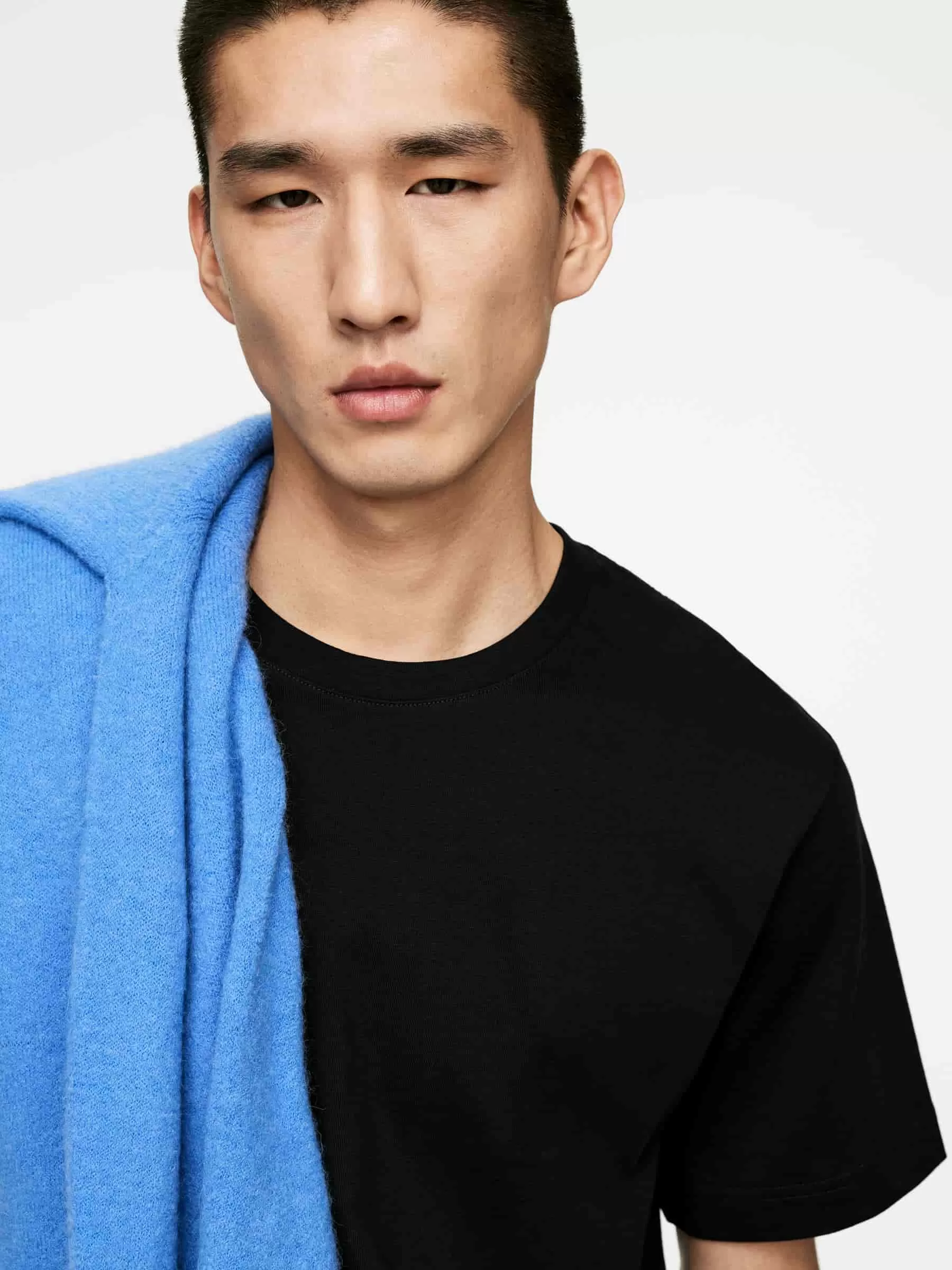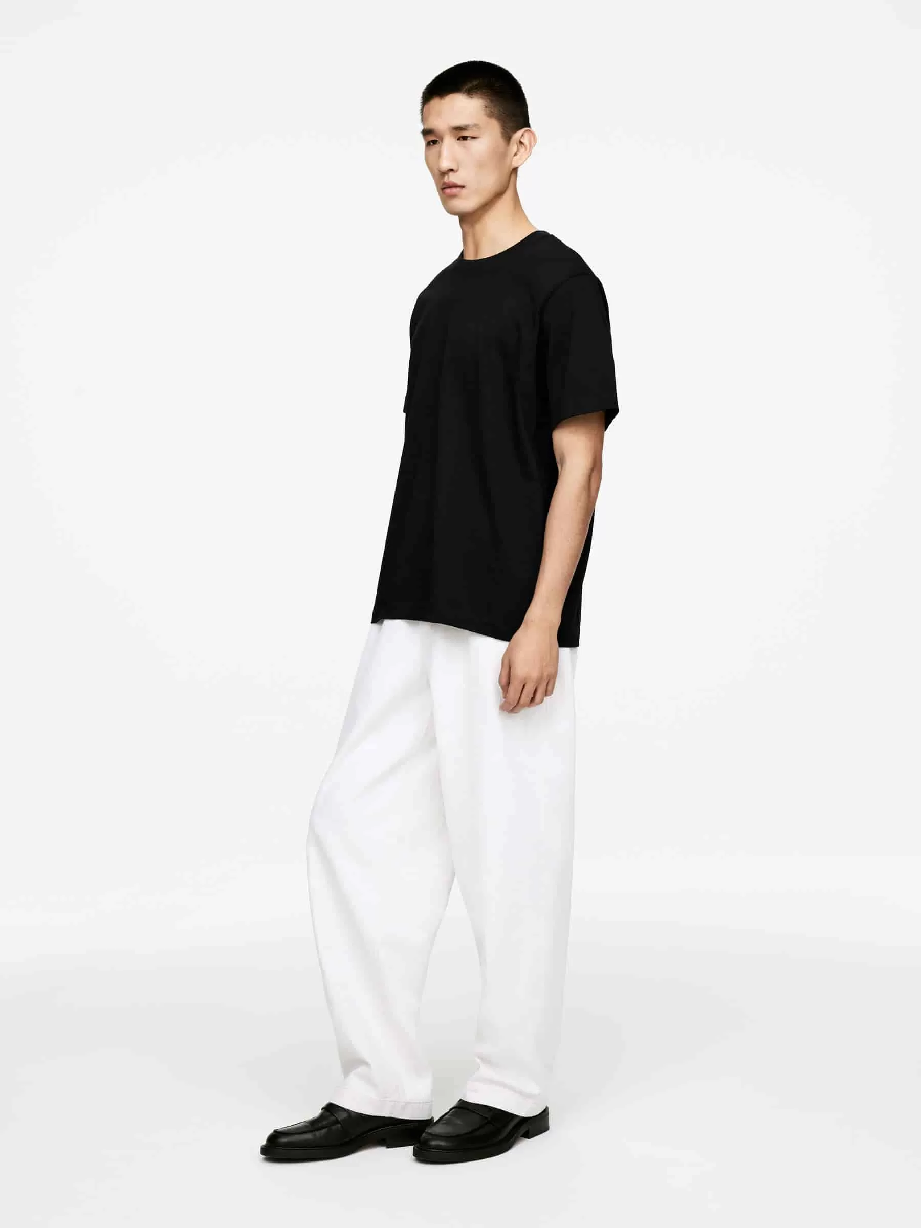 Camiseta clásica con cuello redondo y corte regular. Está confeccionada en punto sencillo de 220 GSM, lo que indica que se trata de la versión de peso medio de las camisetas estándar de ARKET.