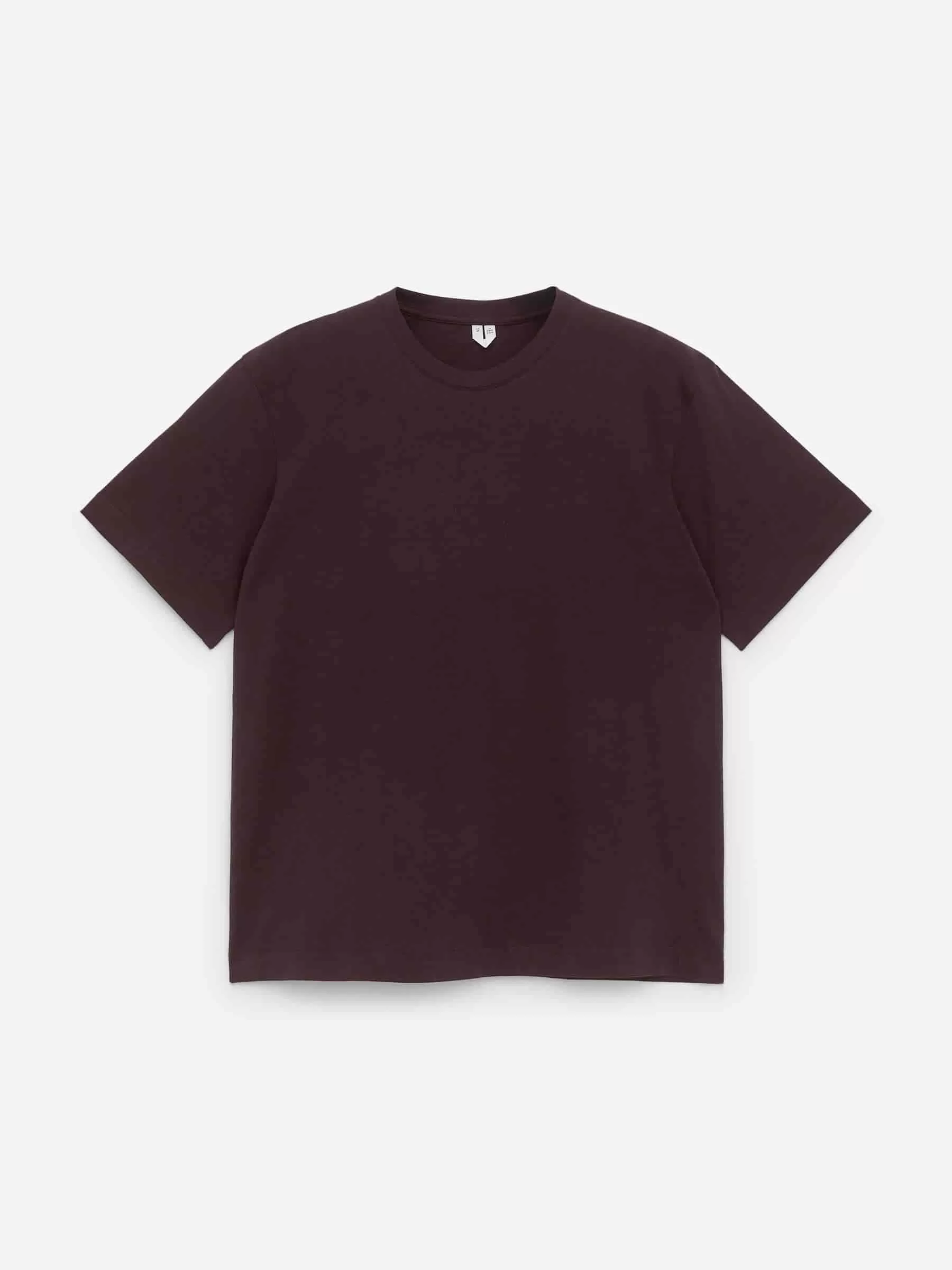 Camiseta clásica con cuello redondo y corte regular. Está confeccionada en punto sencillo de 220 GSM, lo que indica que se trata de la versión de peso medio de las camisetas estándar de ARKET.