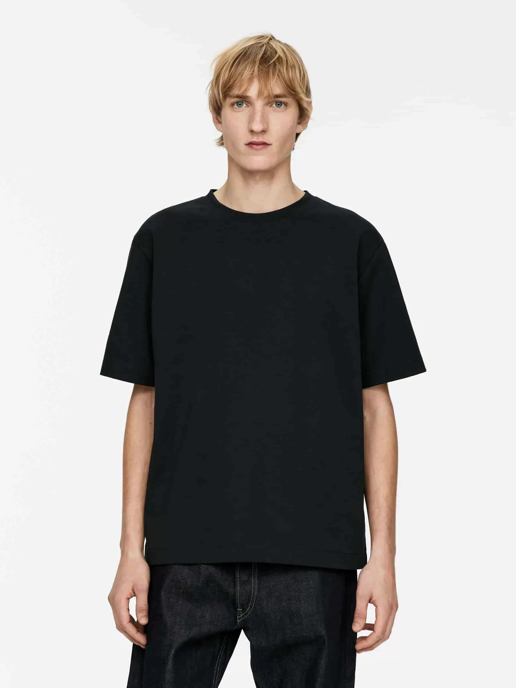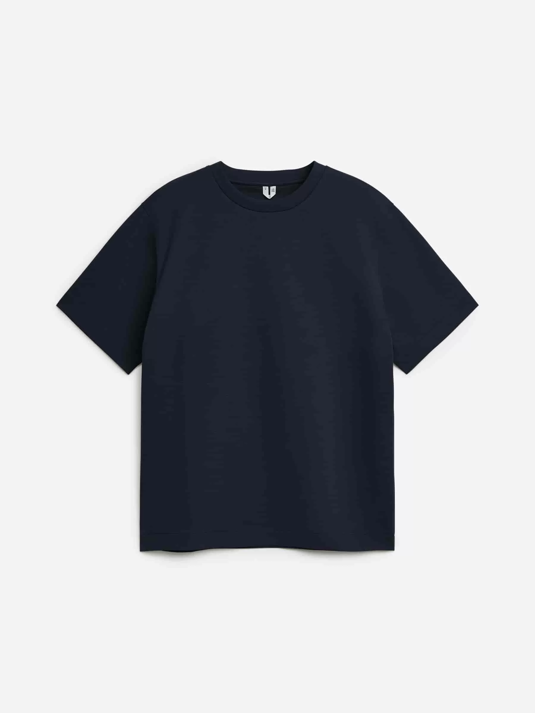Confeccionada con un tejido de punto interlock pesado, esta camiseta de algodón ofrece un ligero estiramiento cómodo. Un modelo de cuello redondo con corte estándar.