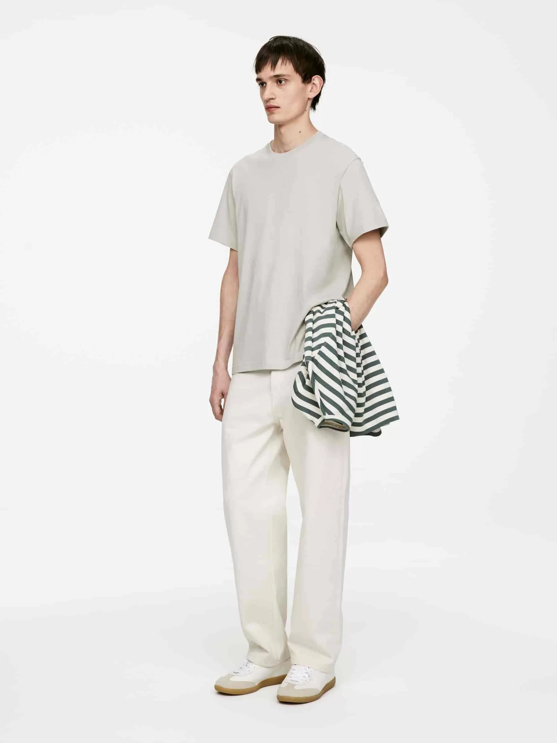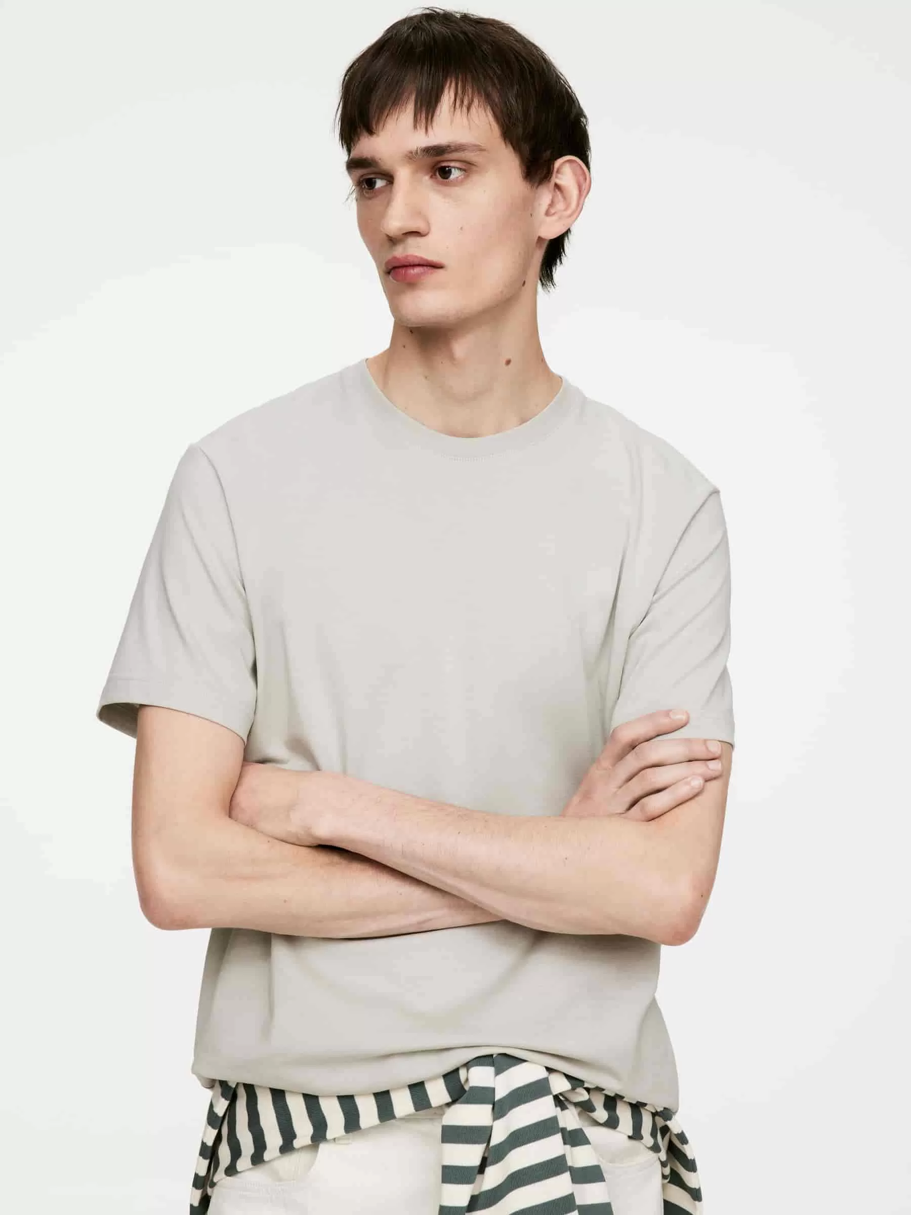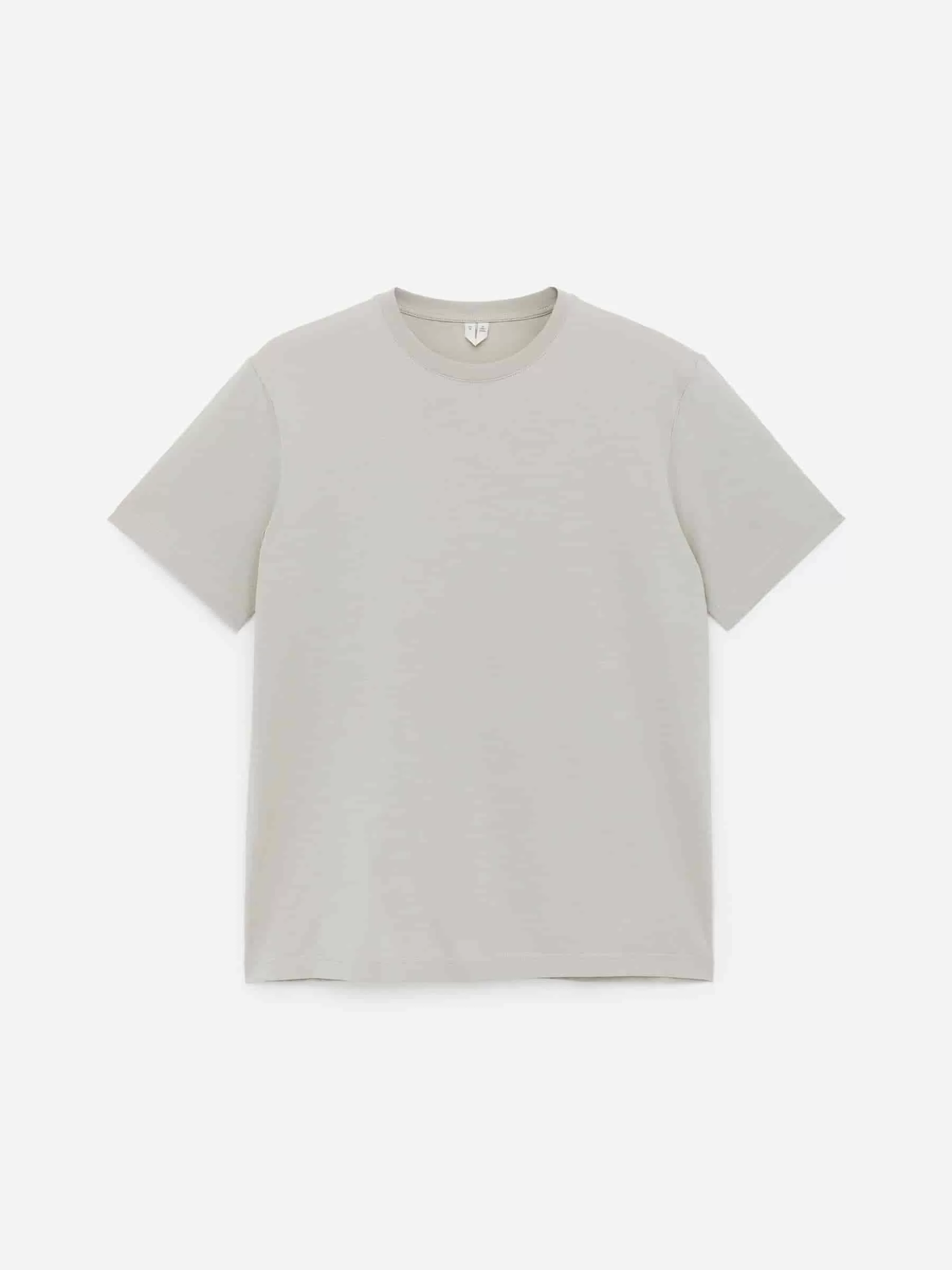Camiseta clásica con cuello redondo y corte regular. Está hecha de un solo jersey de 170 GSM, lo que indica que es la más liviana de las camisetas estándar de ARKET.
