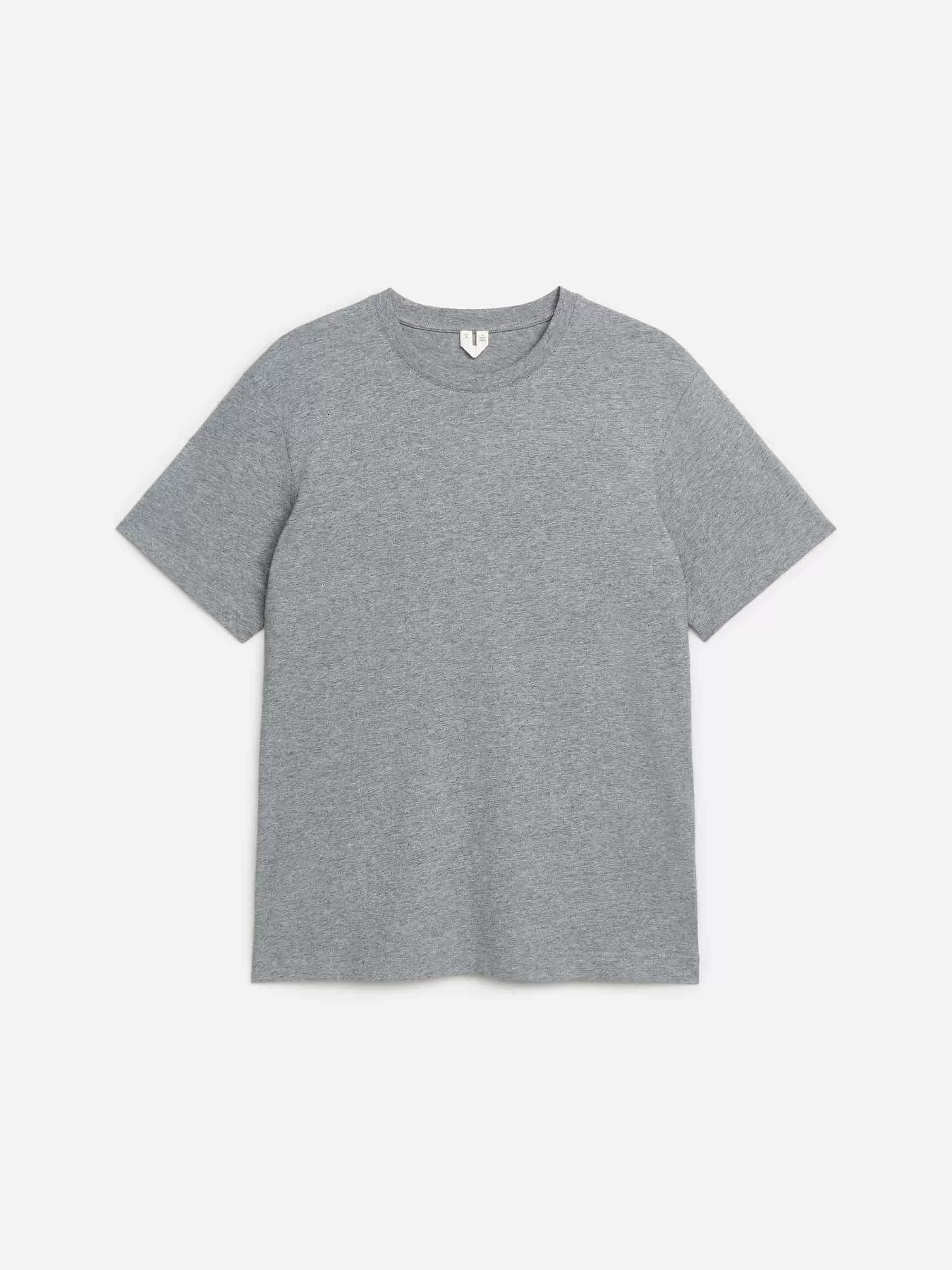 Camiseta clásica con cuello redondo y corte regular. Está hecha de un solo jersey de 170 GSM, lo que indica que es la más liviana de las camisetas estándar de ARKET.