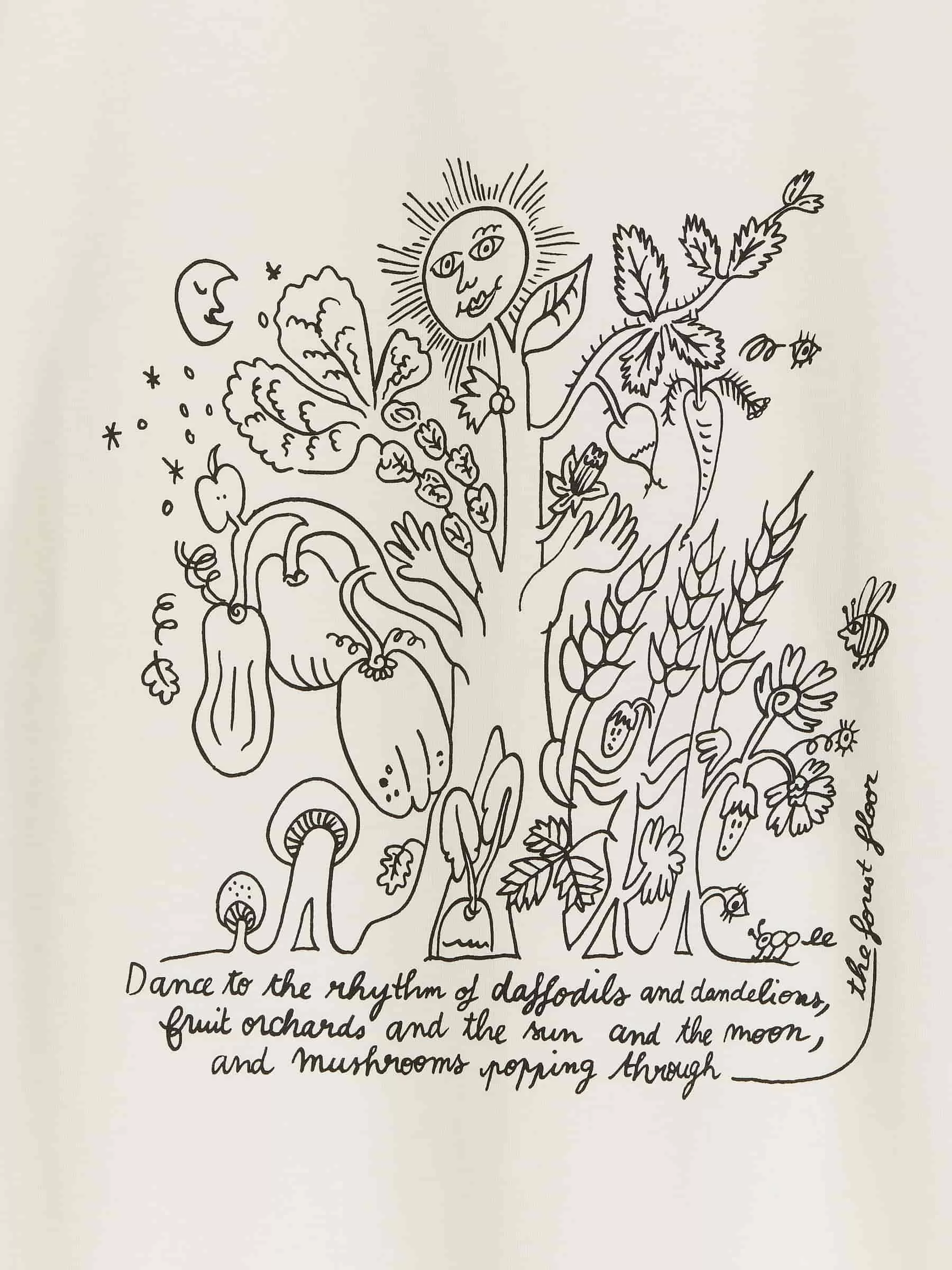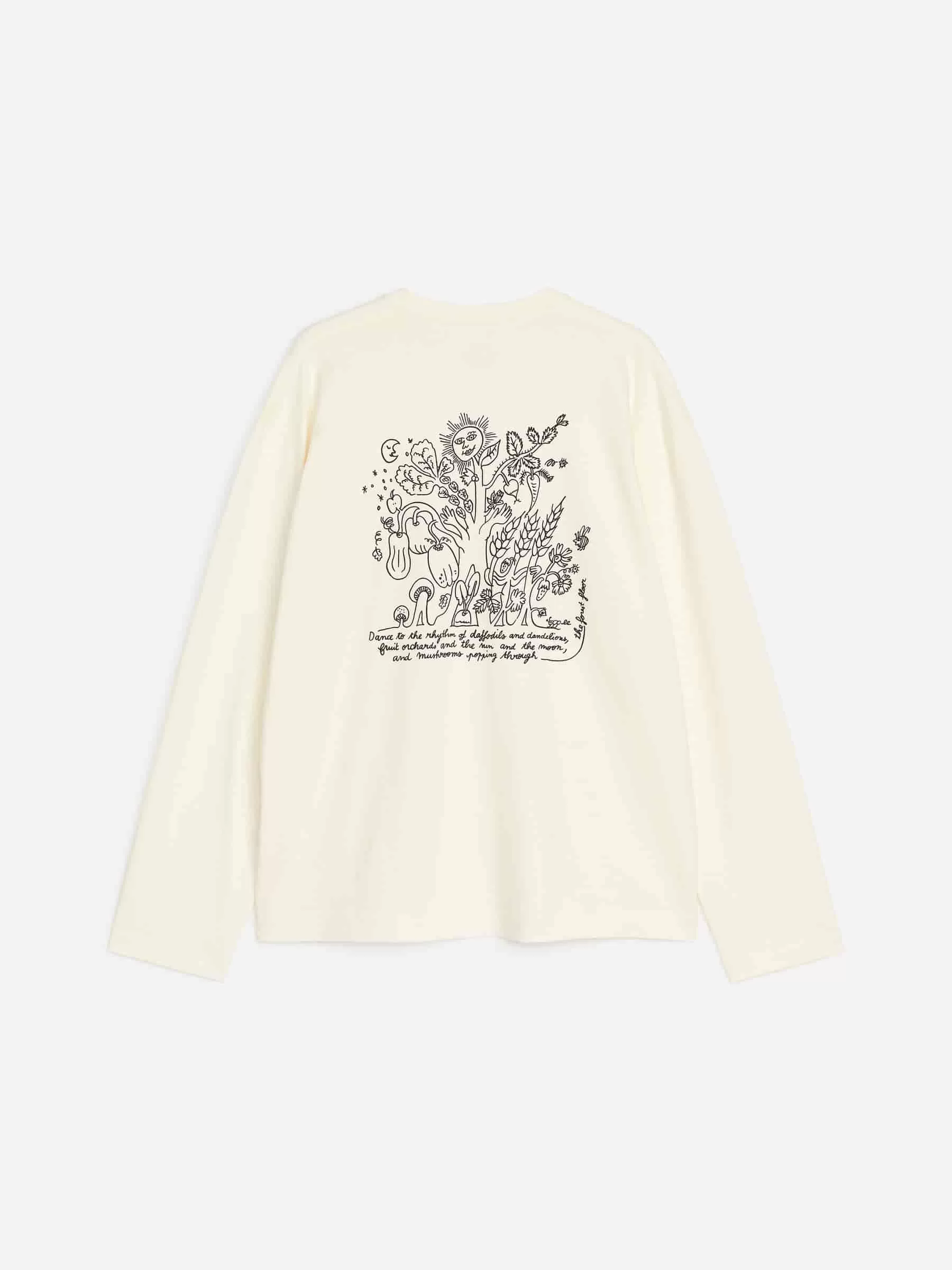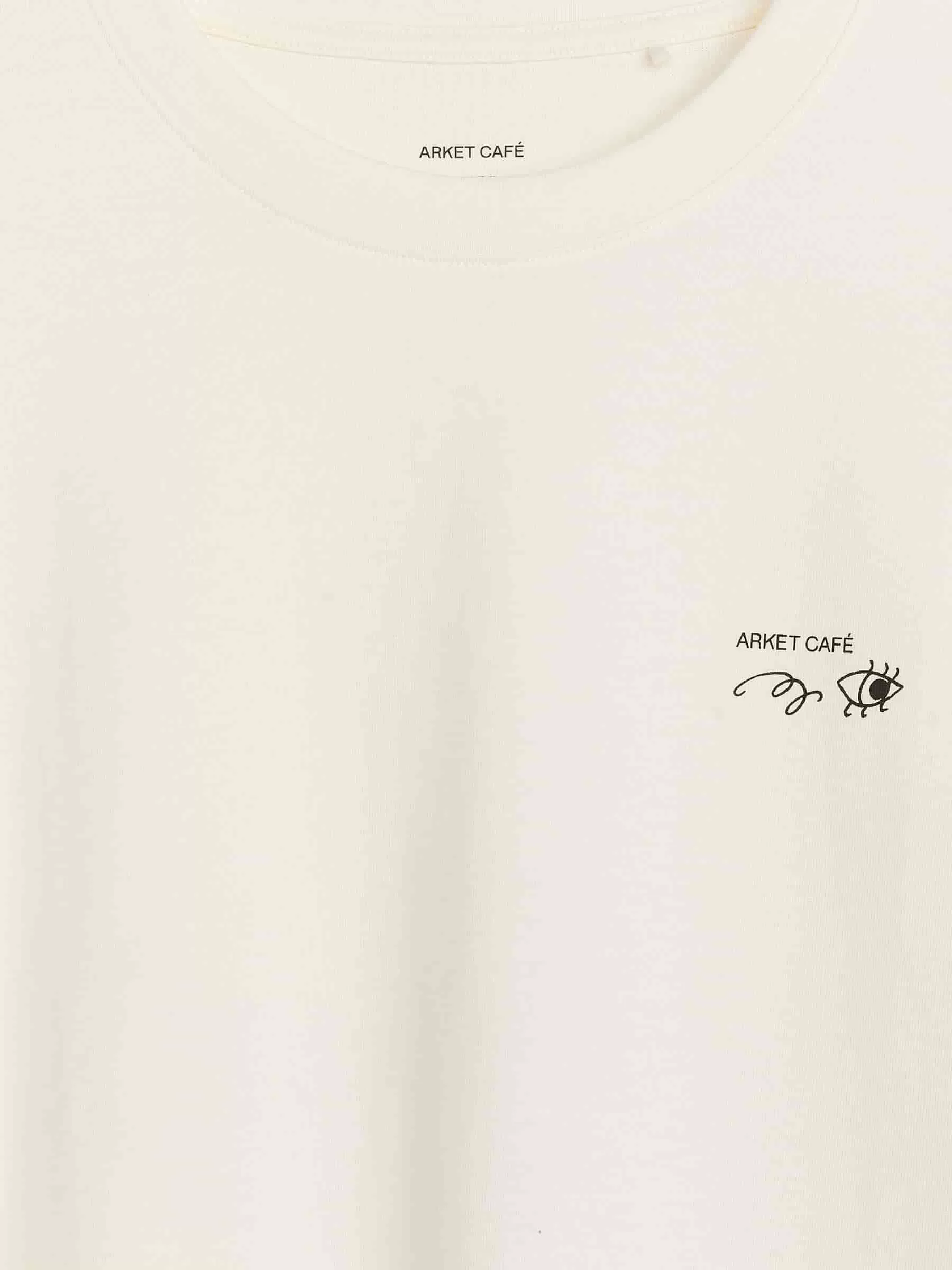 Camiseta unisex con motivo estampado tanto en delantero como en espalda. Un estilo de manga larga confeccionado con un punto sencillo de algodón de peso medio de 220 GSM. Corte para un ajuste generoso. Este producto forma parte de la colección ARKET CAFÉ con ilustraciones de Olga Prader.