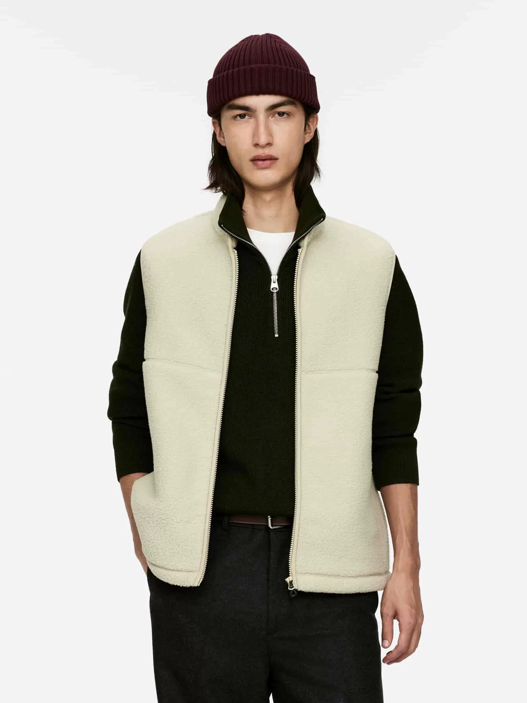 Chaleco polar aislante con cremallera de 2 vías. Está diseñado con bolsillos delanteros y tiradores de cremallera elásticos para facilitar la apertura cuando se usan guantes. La construcción de doble capa brinda calidez adicional.