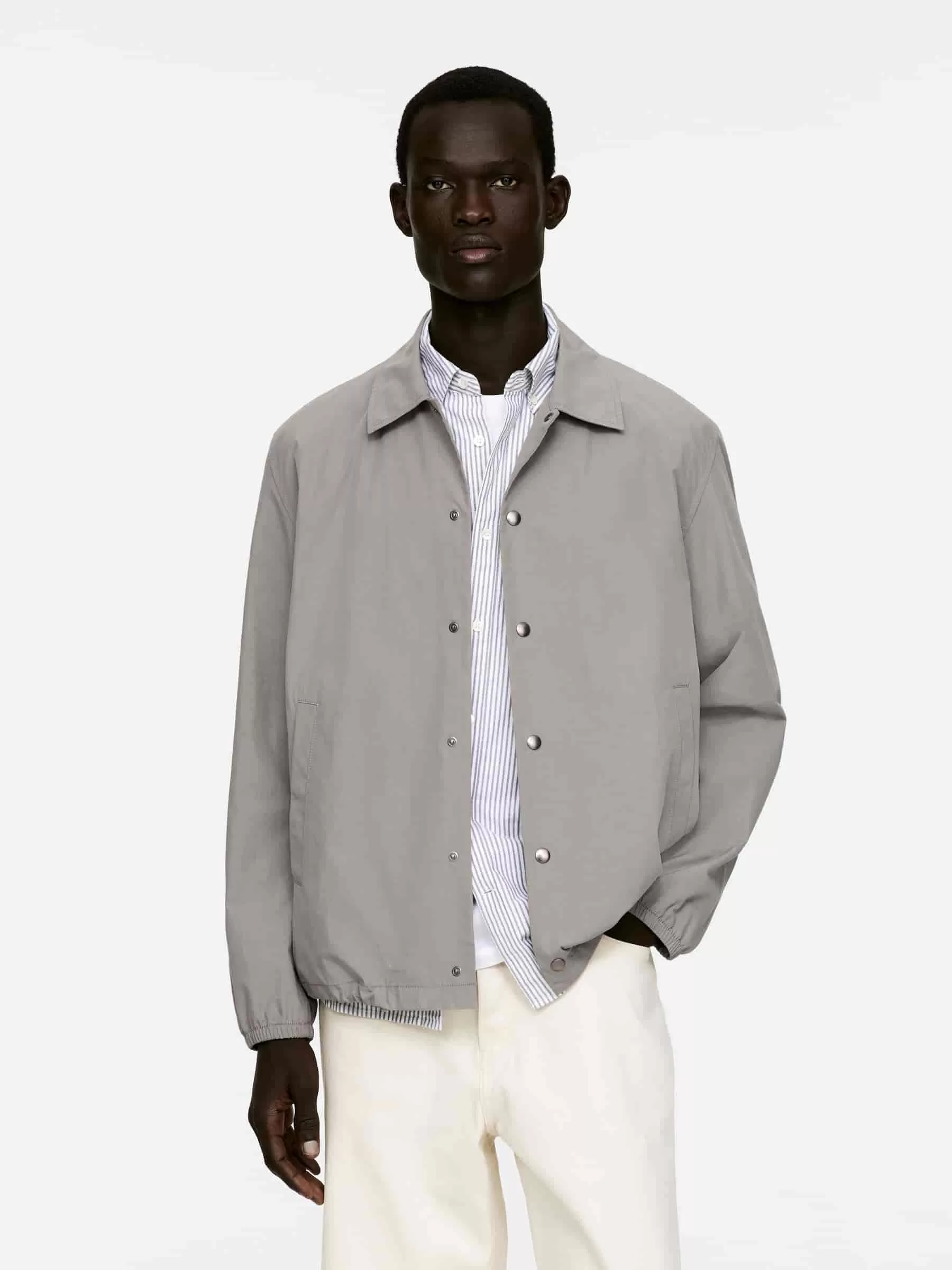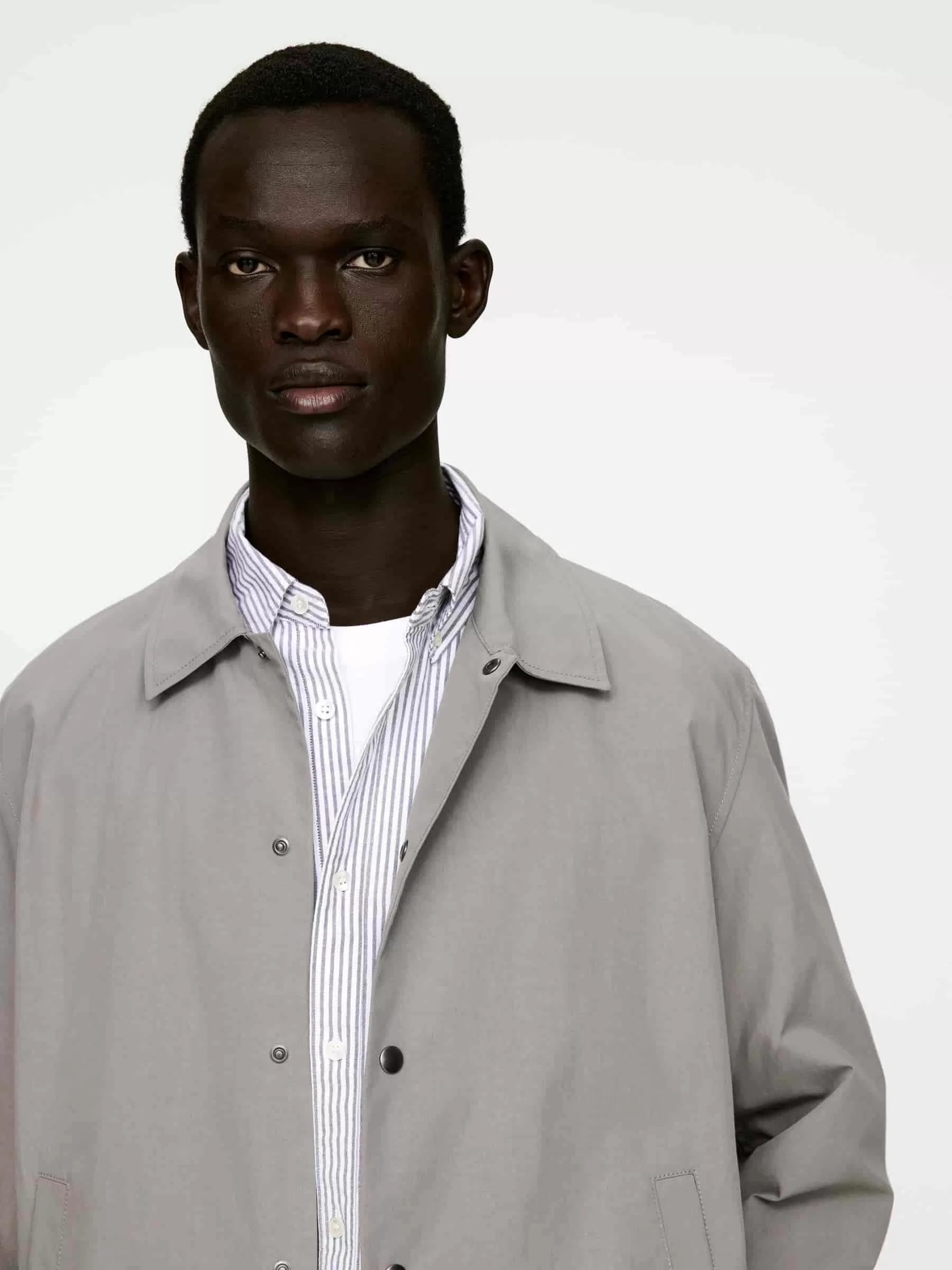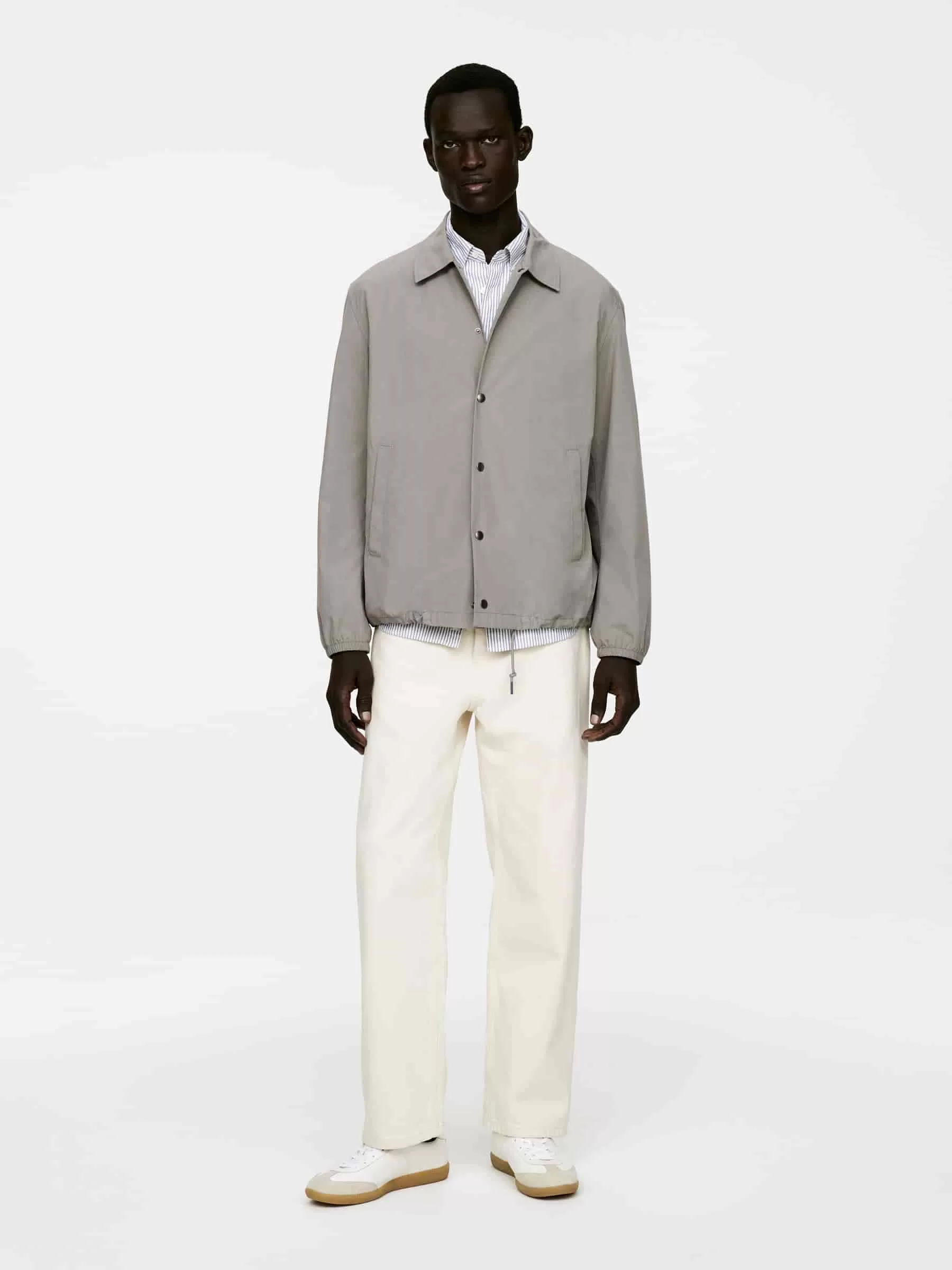 Chaqueta camisera confeccionada en una mezcla de algodón. Con un corte relajado y un estilo con hombros ligeramente caídos, cuello de camisa estándar y cierre de botones a presión. Bolsillos de ribete inclinados. Cordón en el dobladillo inferior y puños elásticos. Sin forro.