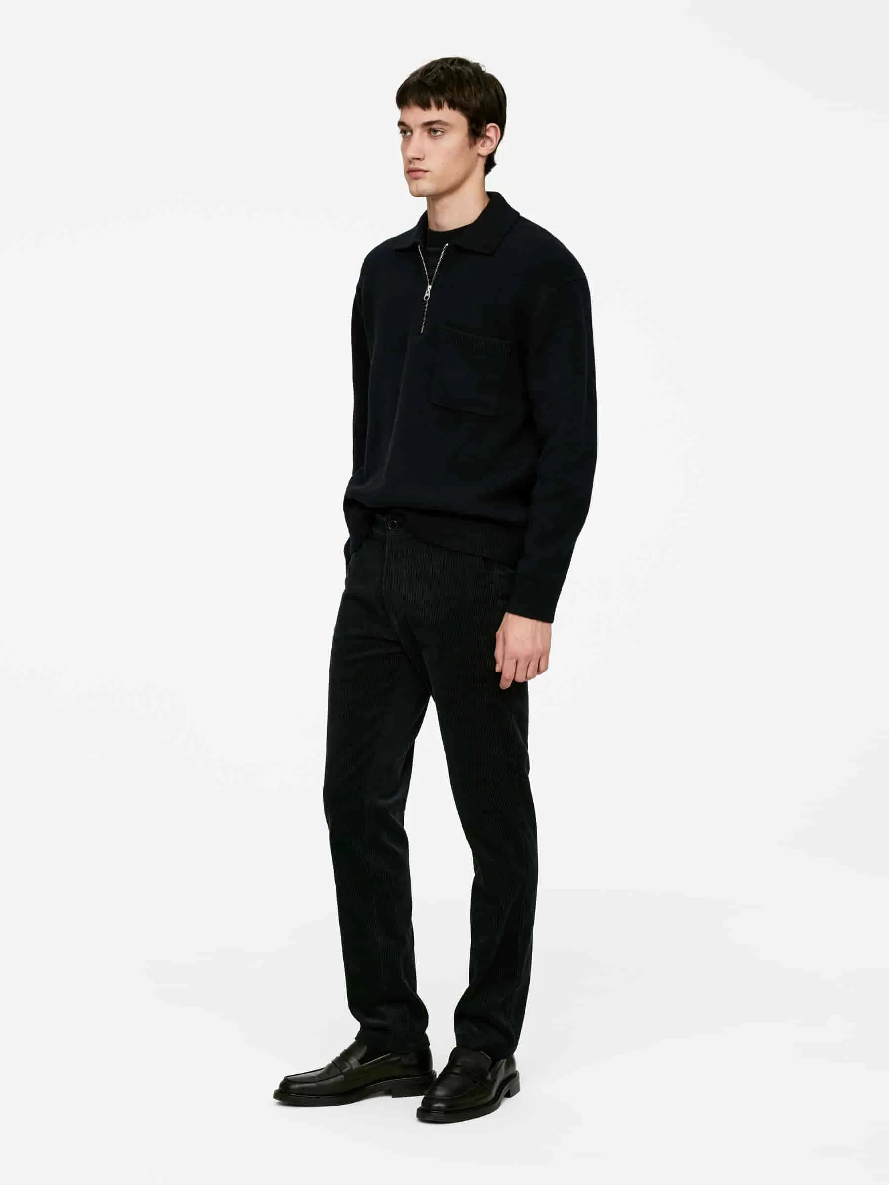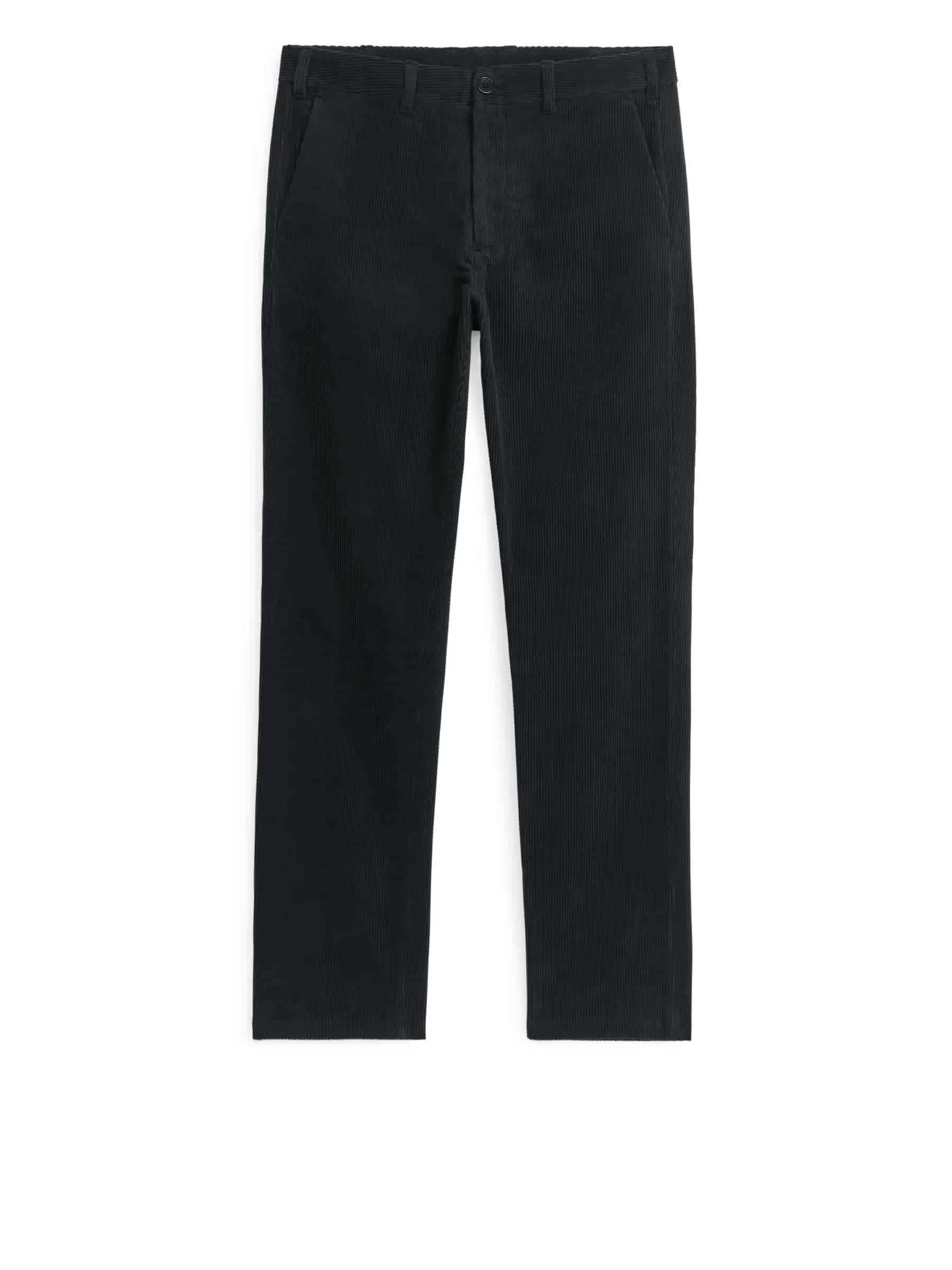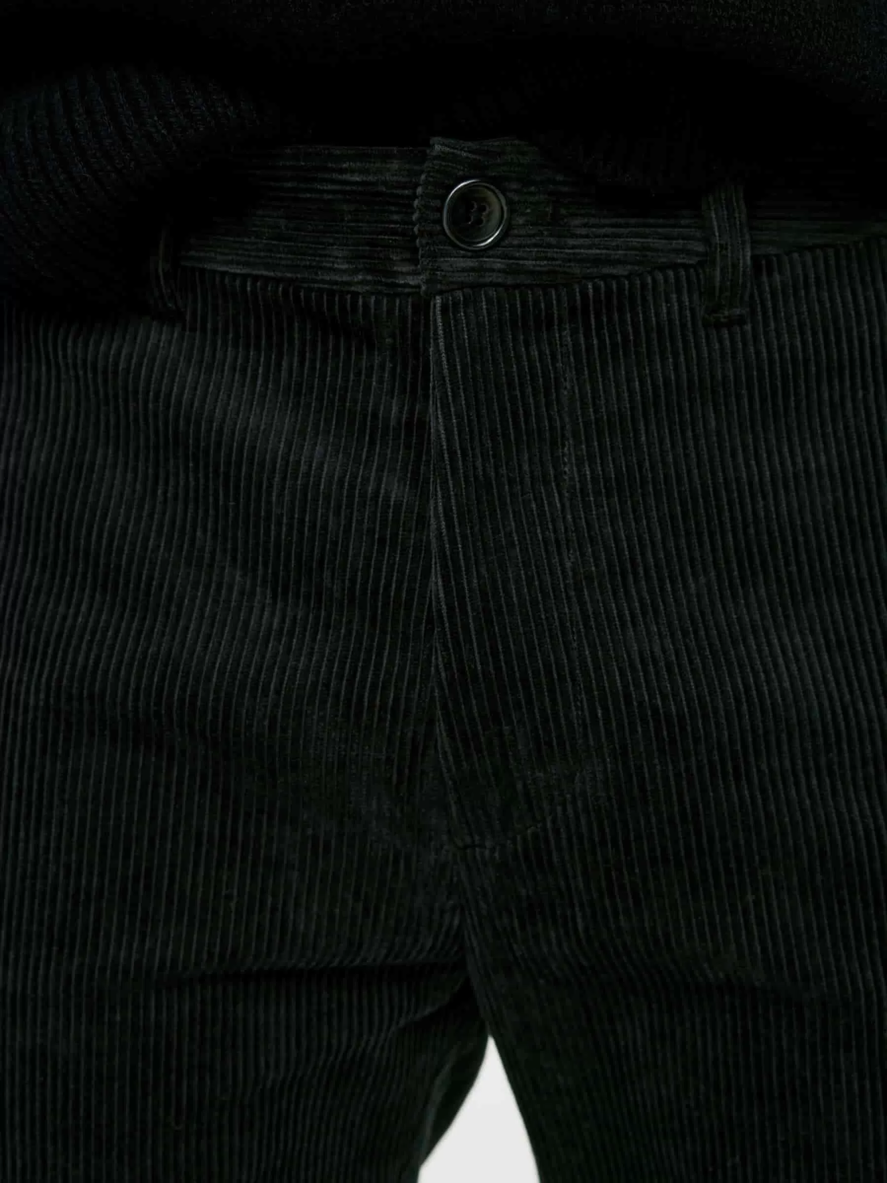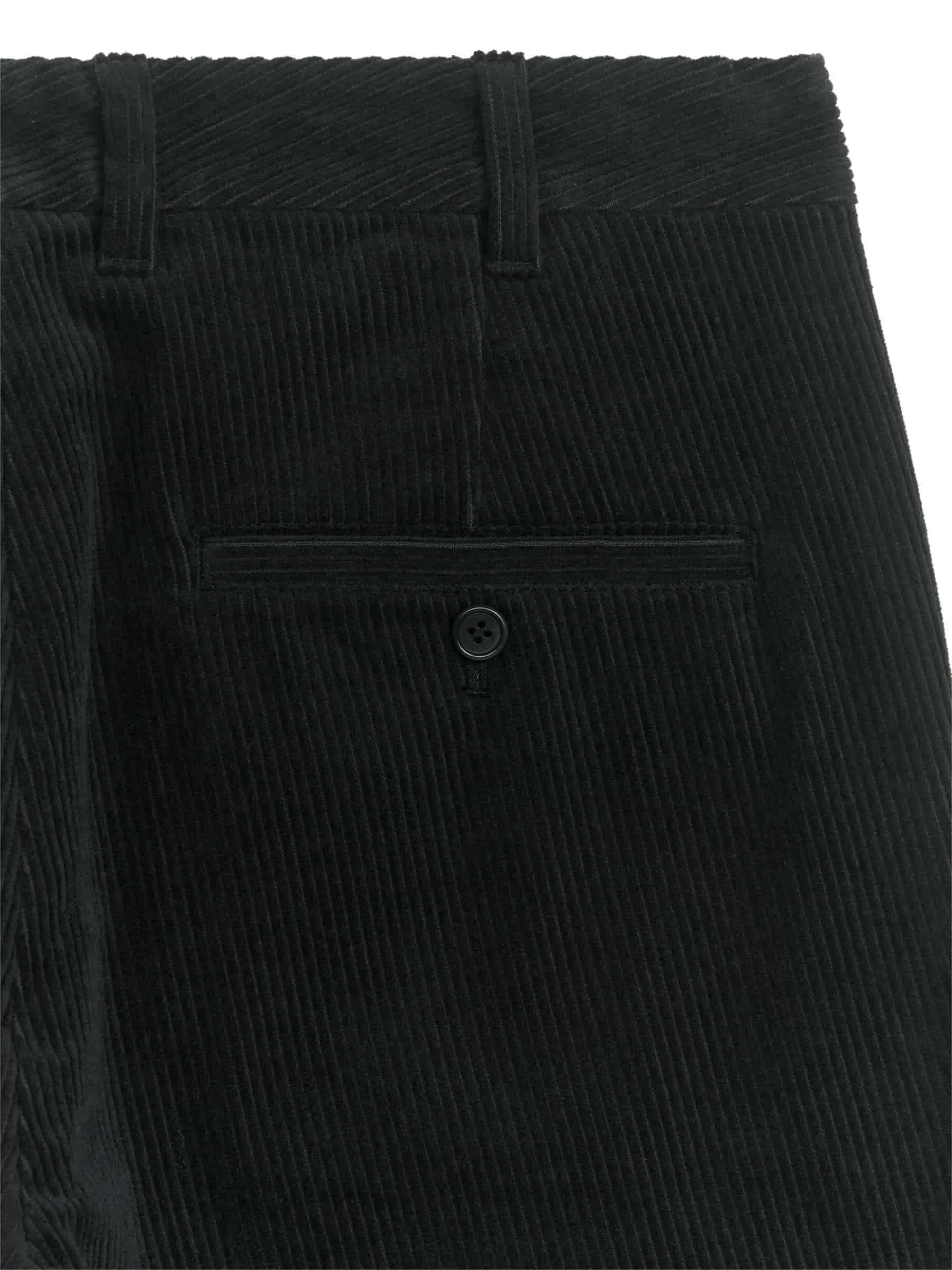 Pantalones de pana de algodón con corte recto. Diseñado con bolsillos laterales inclinados y bolsillos ribeteados en la parte trasera.