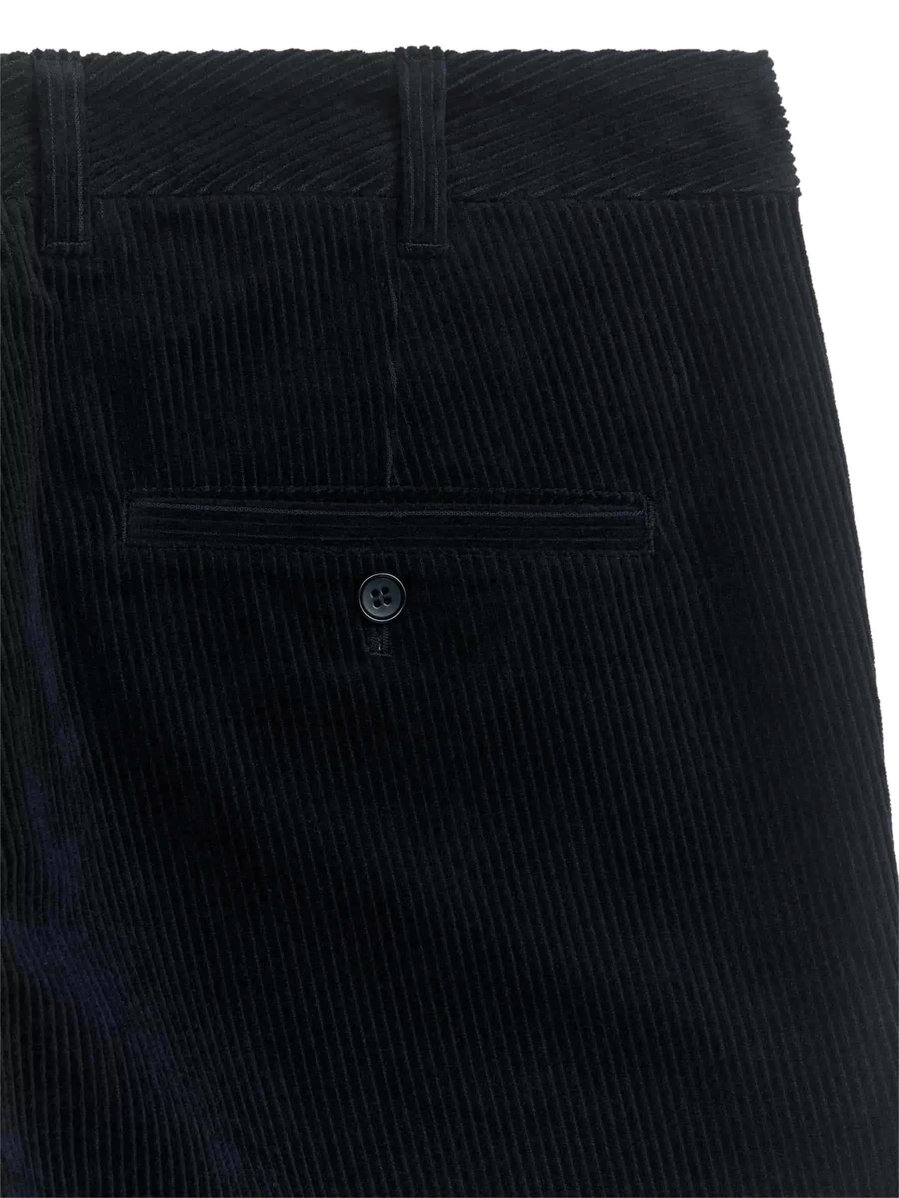 Pantalones de pana de algodón con corte recto. Diseñado con bolsillos laterales inclinados y bolsillos ribeteados en la parte trasera.