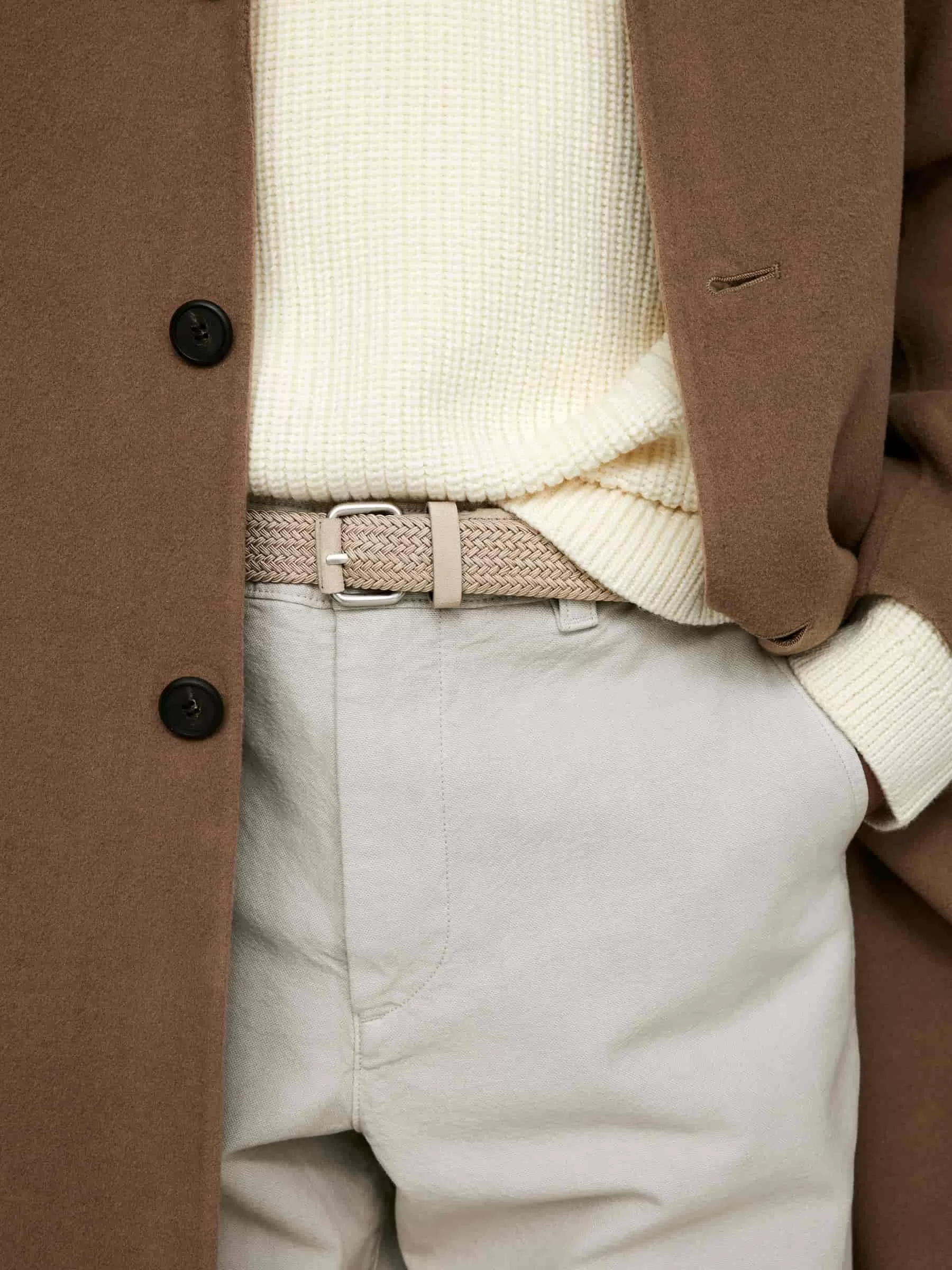 ARKE Hombre Cinturón con detalles de cuero trenzado Beige