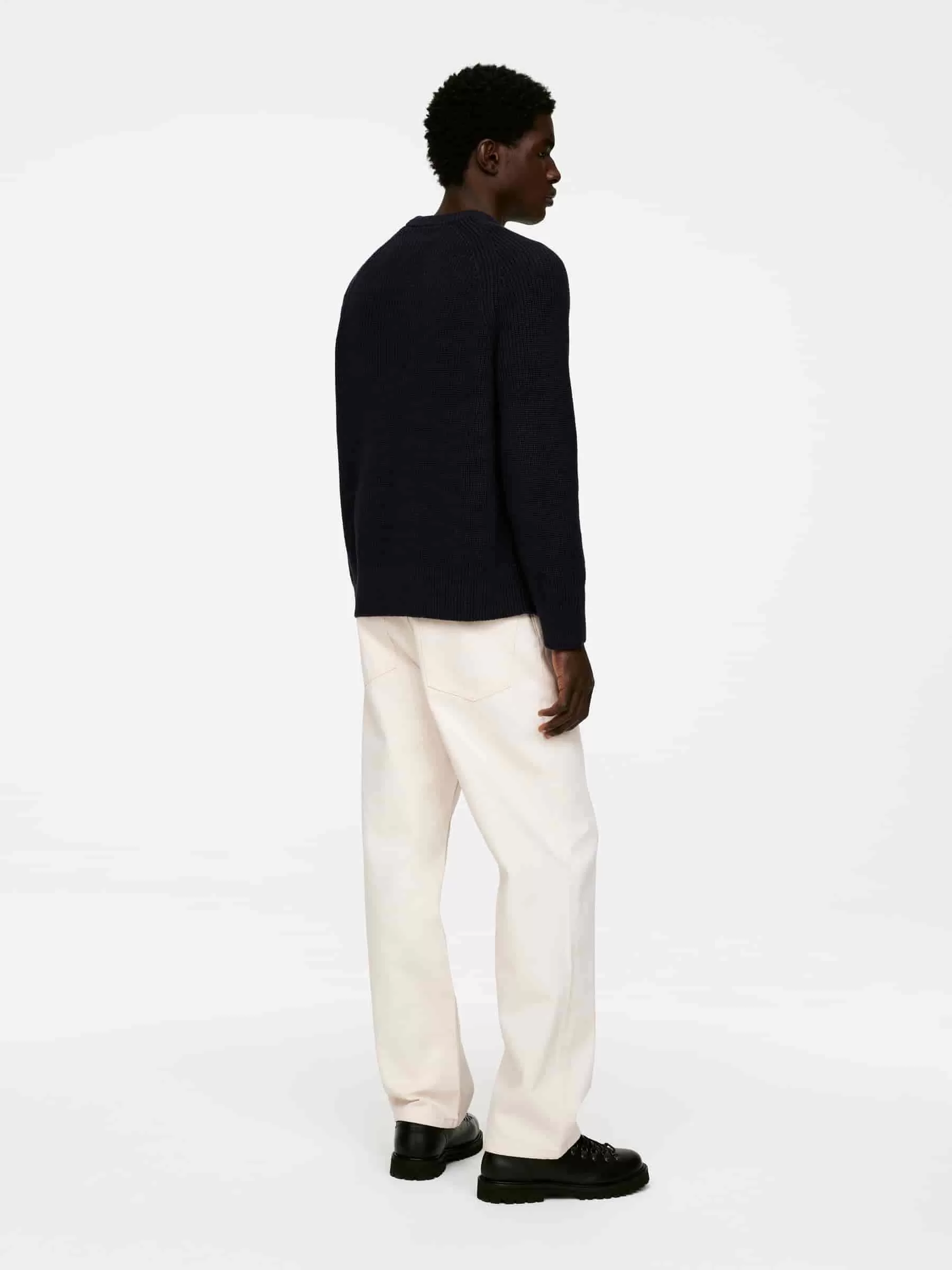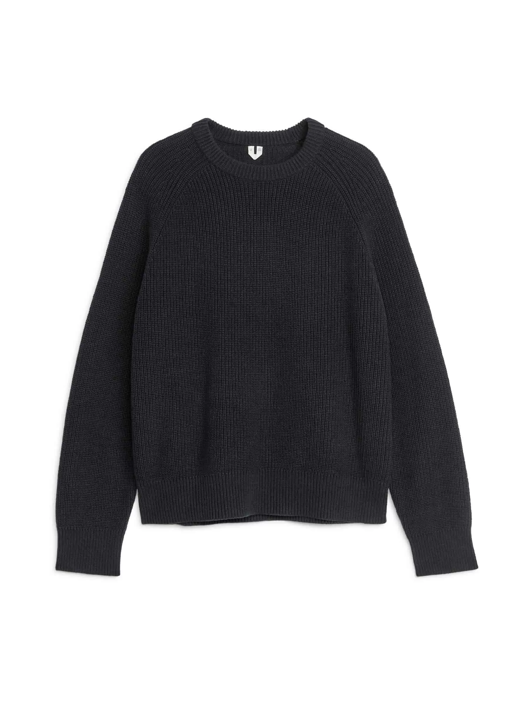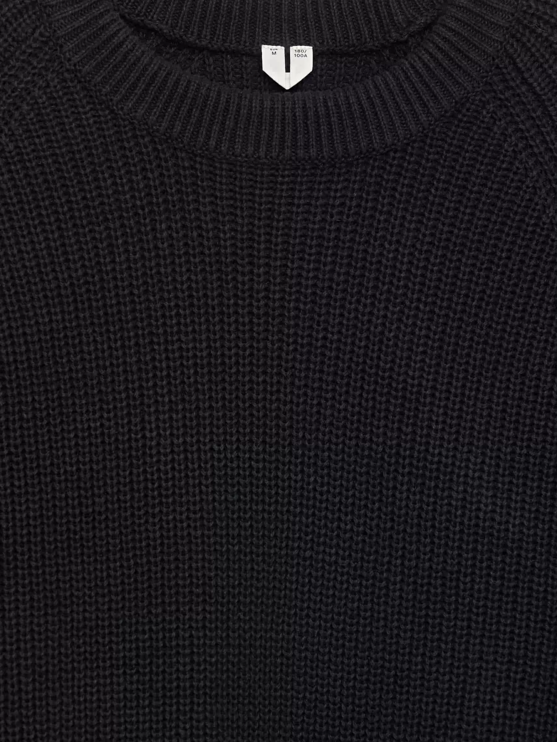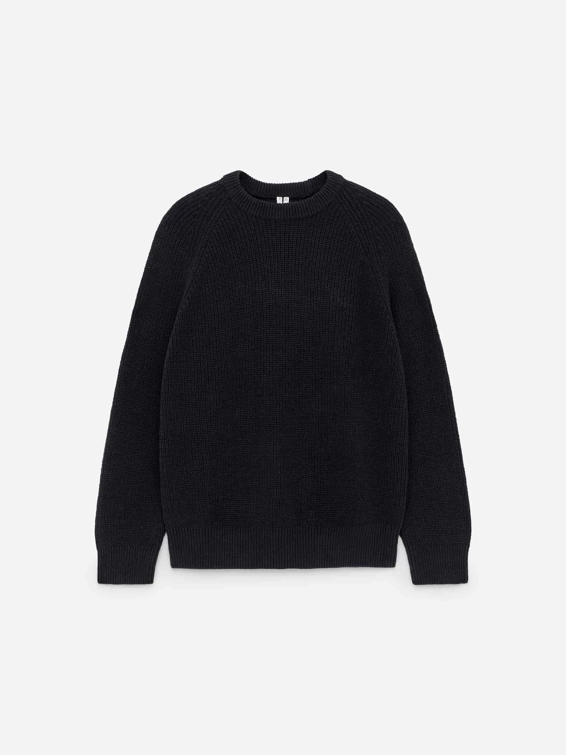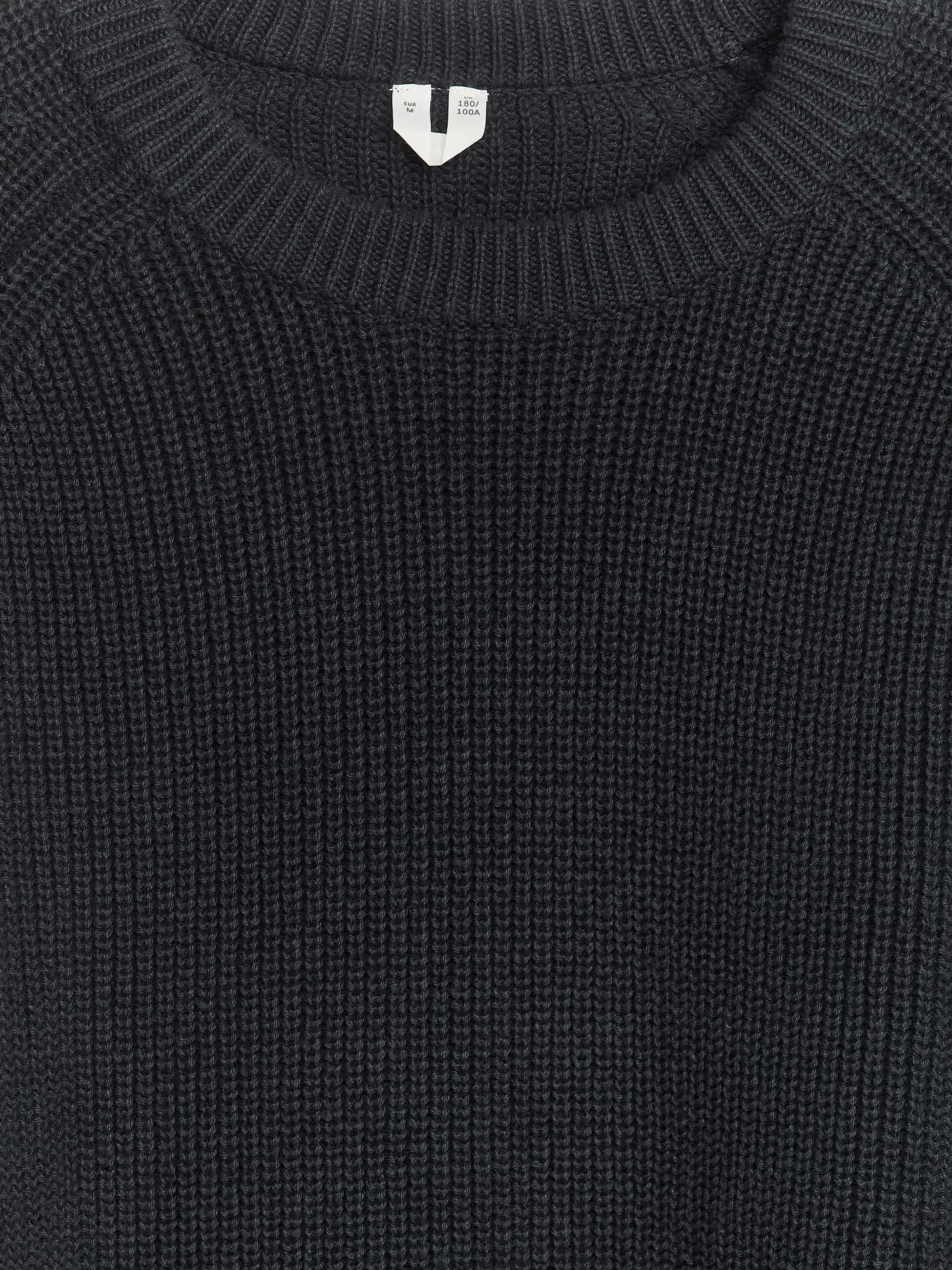 Jersey confeccionado en una mezcla de lino y algodón, tejido en punto medio cardigan. Un modelo de cuello redondo con escote grueso y mangas raglán.