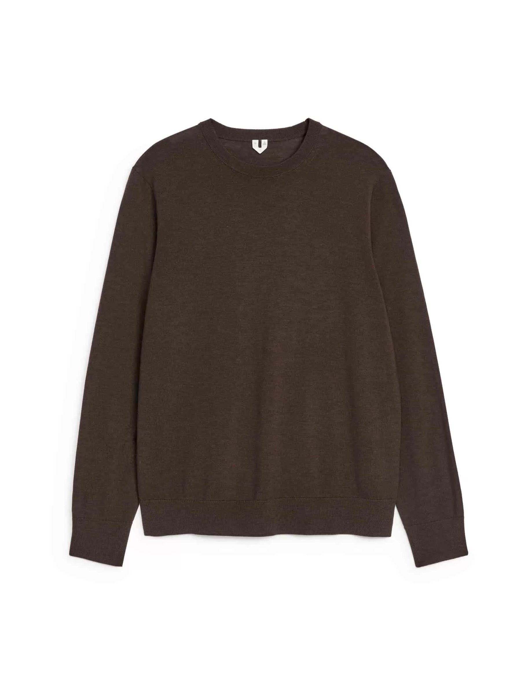 ARKE Hombre Jersey de punto fino de merino Marrón oscuro