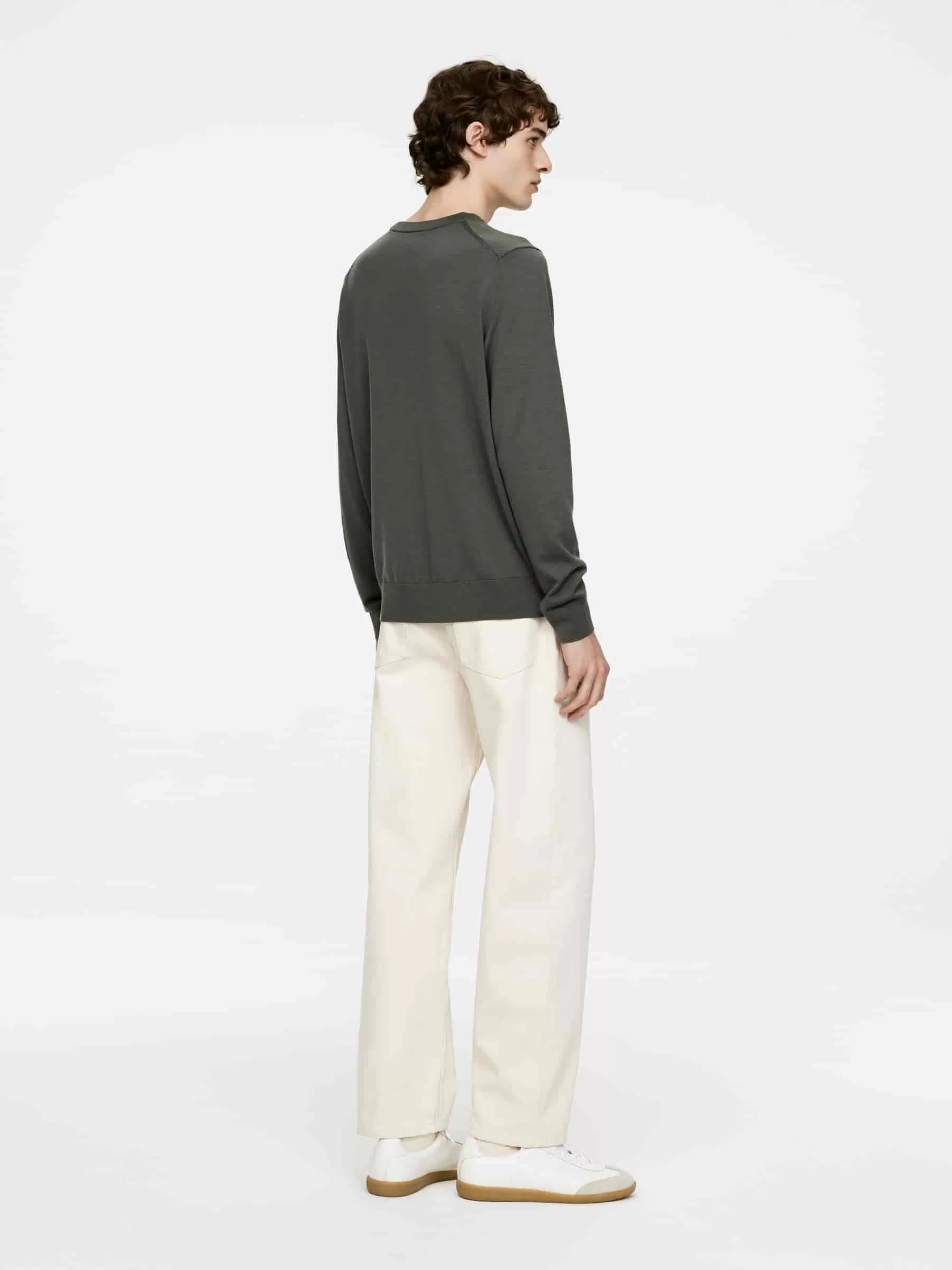 Jersey en punto fino de suave lana merino. Un cuello redondo clásico con detalles acanalados. Ajuste regular.