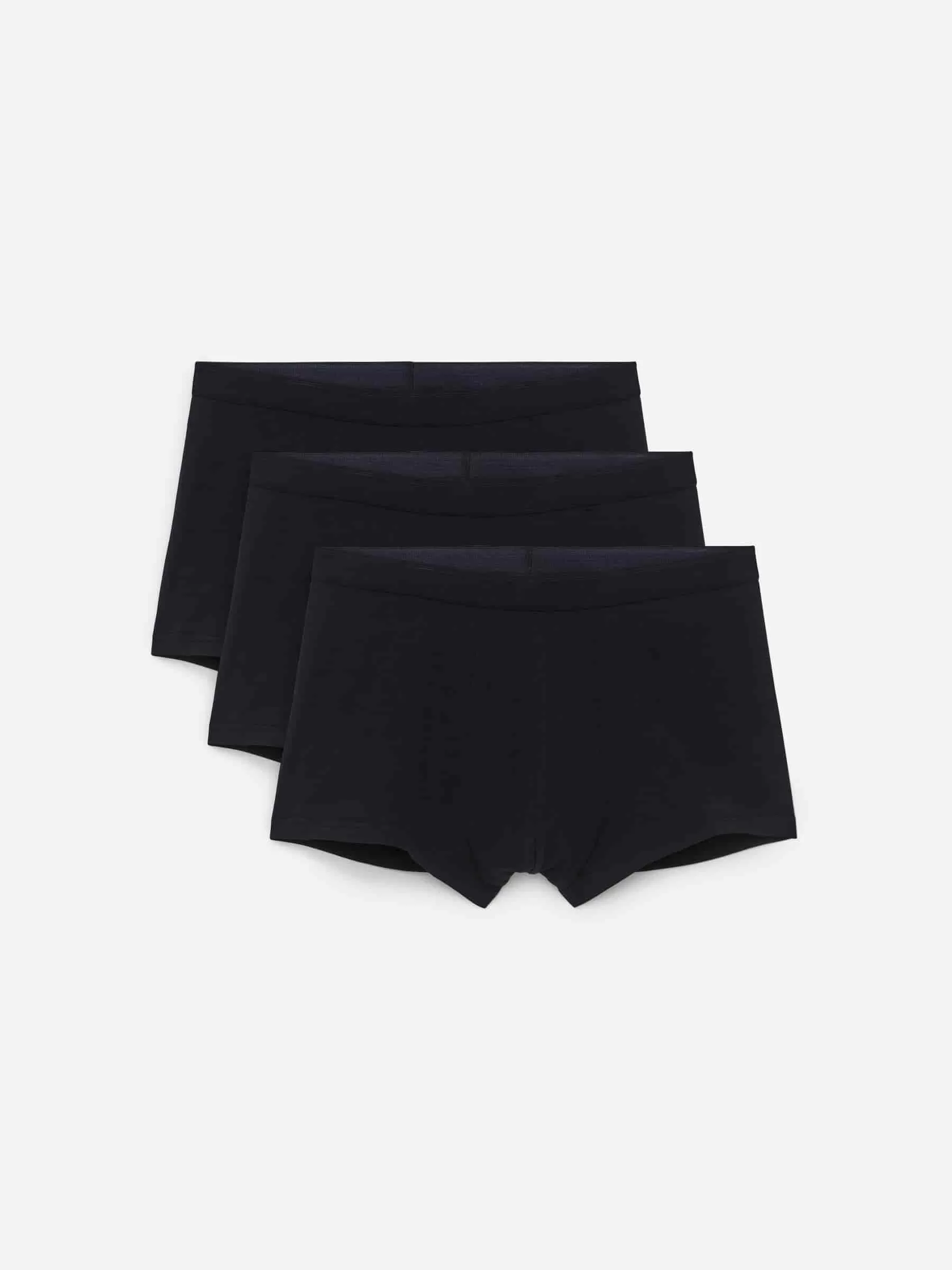 Bóxer clásico confeccionado con punto de algodón de alta calidad. Un modelo de pierna corta con cintura elástica y frente forrado. Se vende en juego de 3 pares.