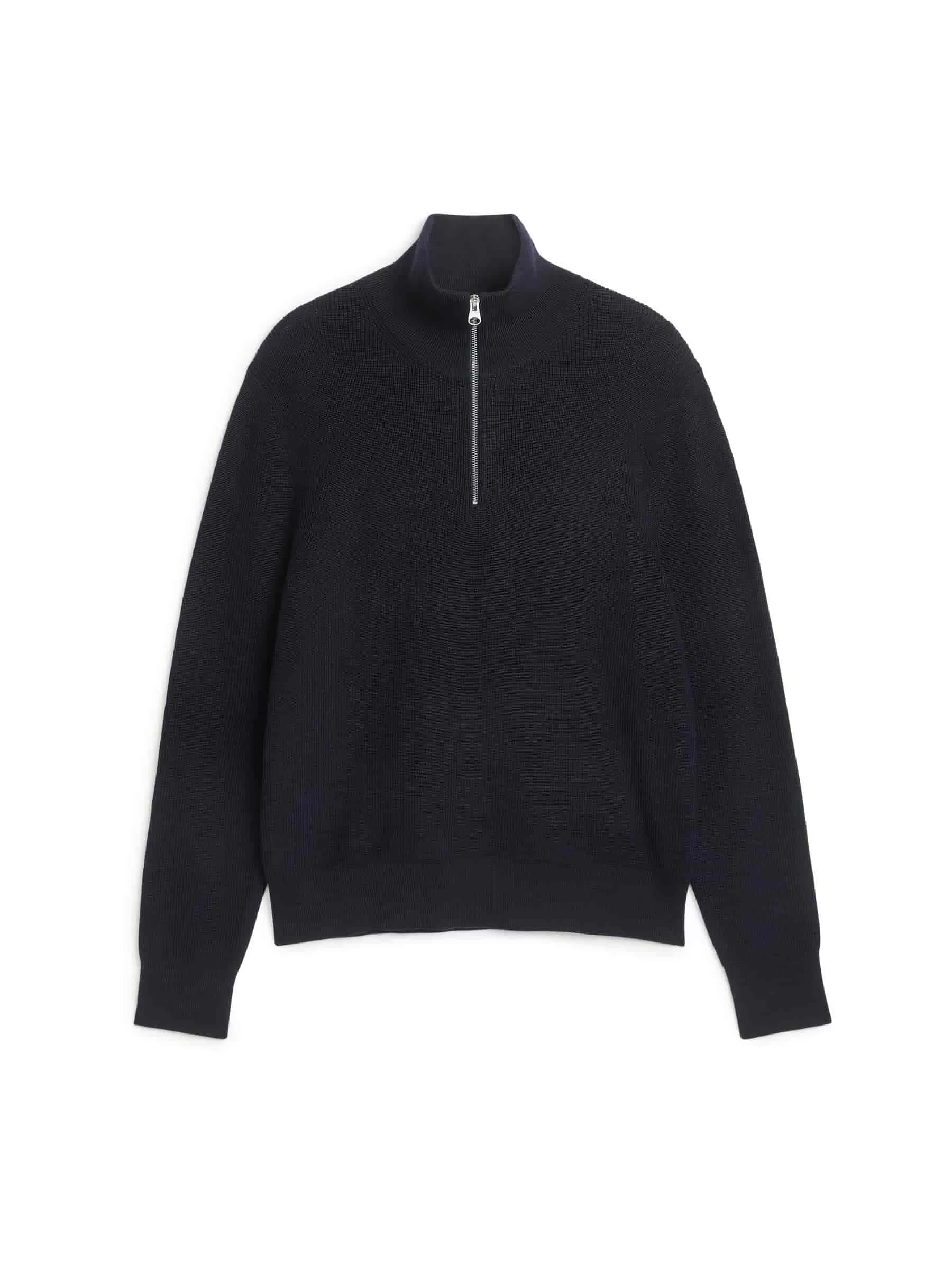 ARKE Hombre Lana y Jersey de algodón con media cremallera Azul oscuro
