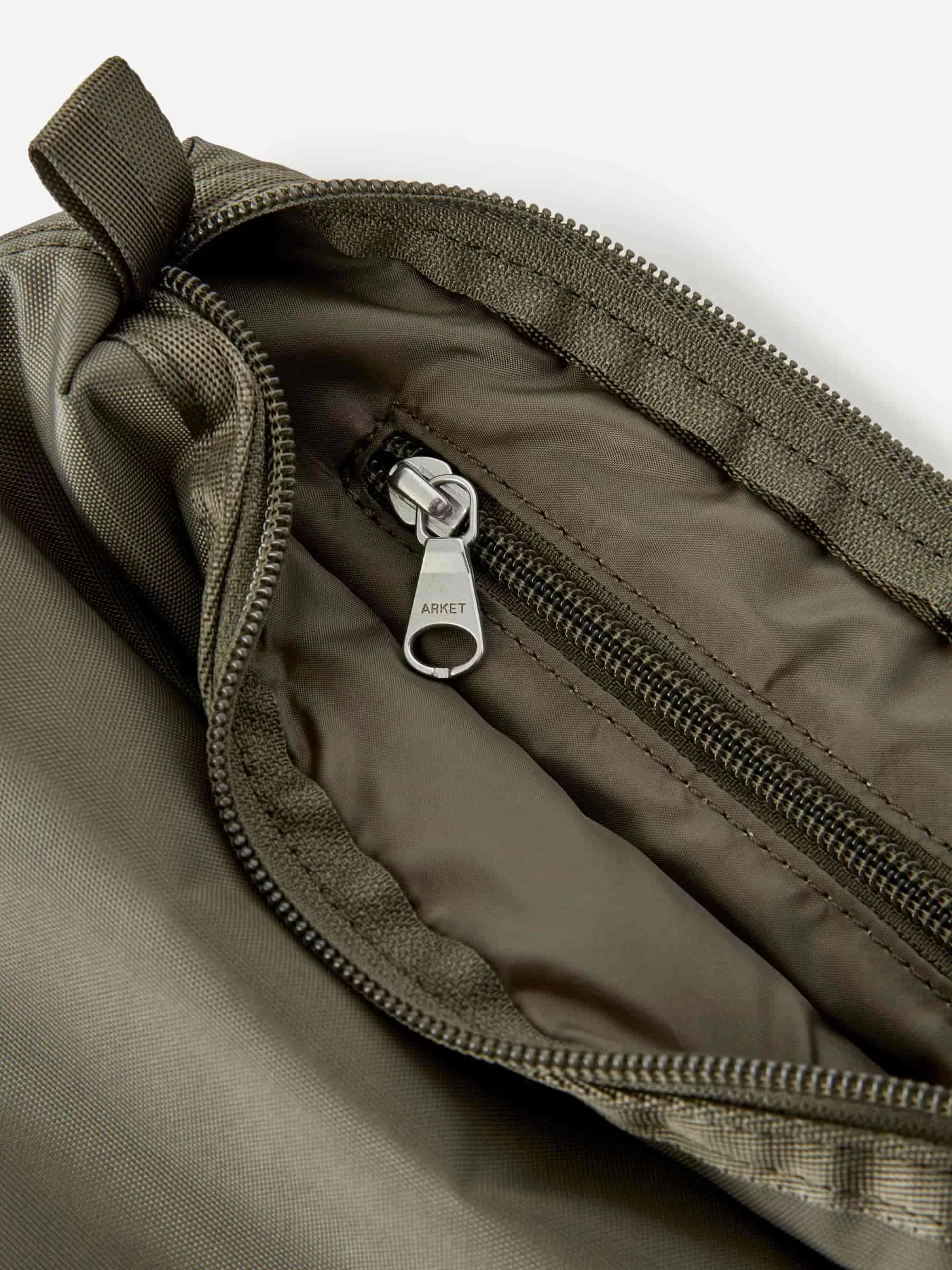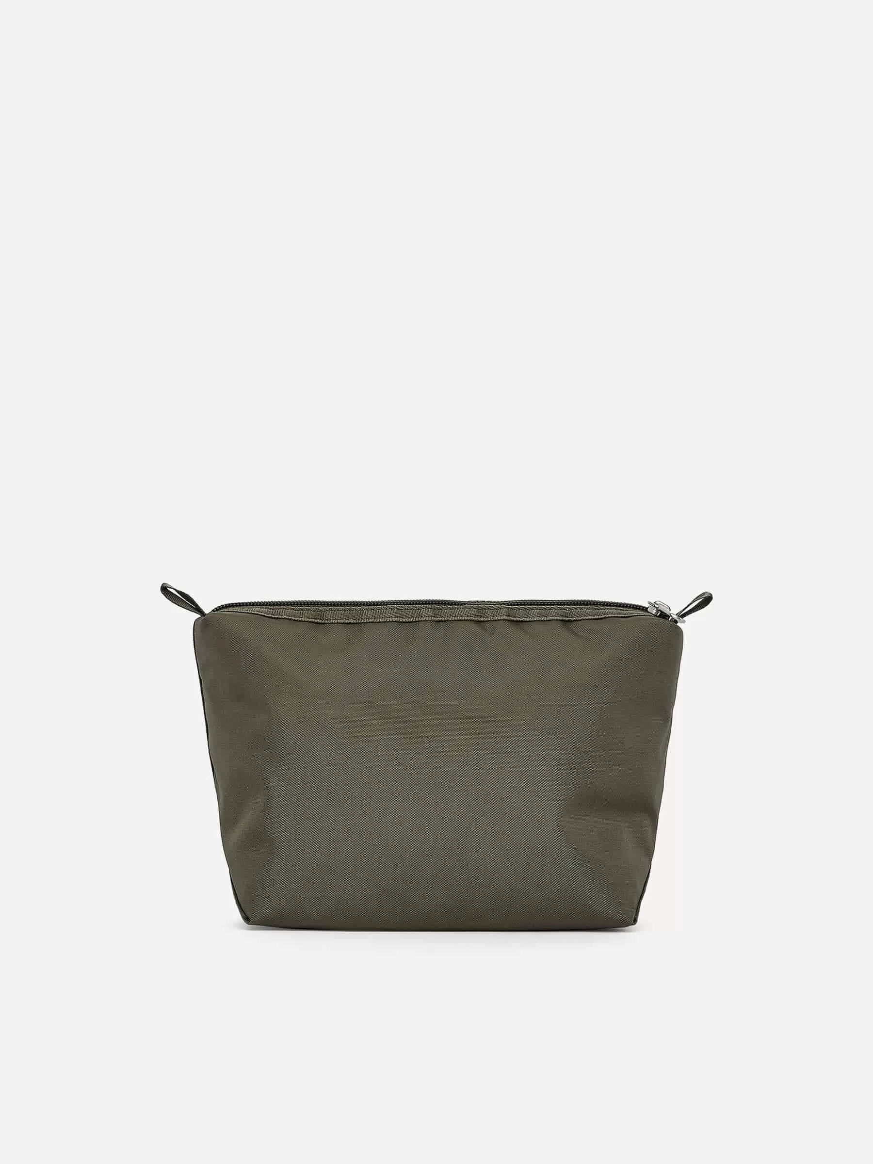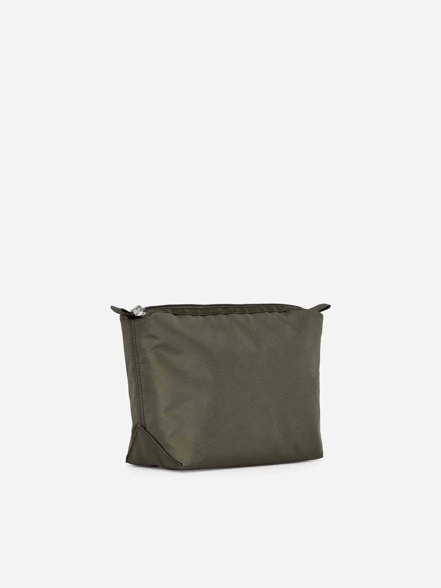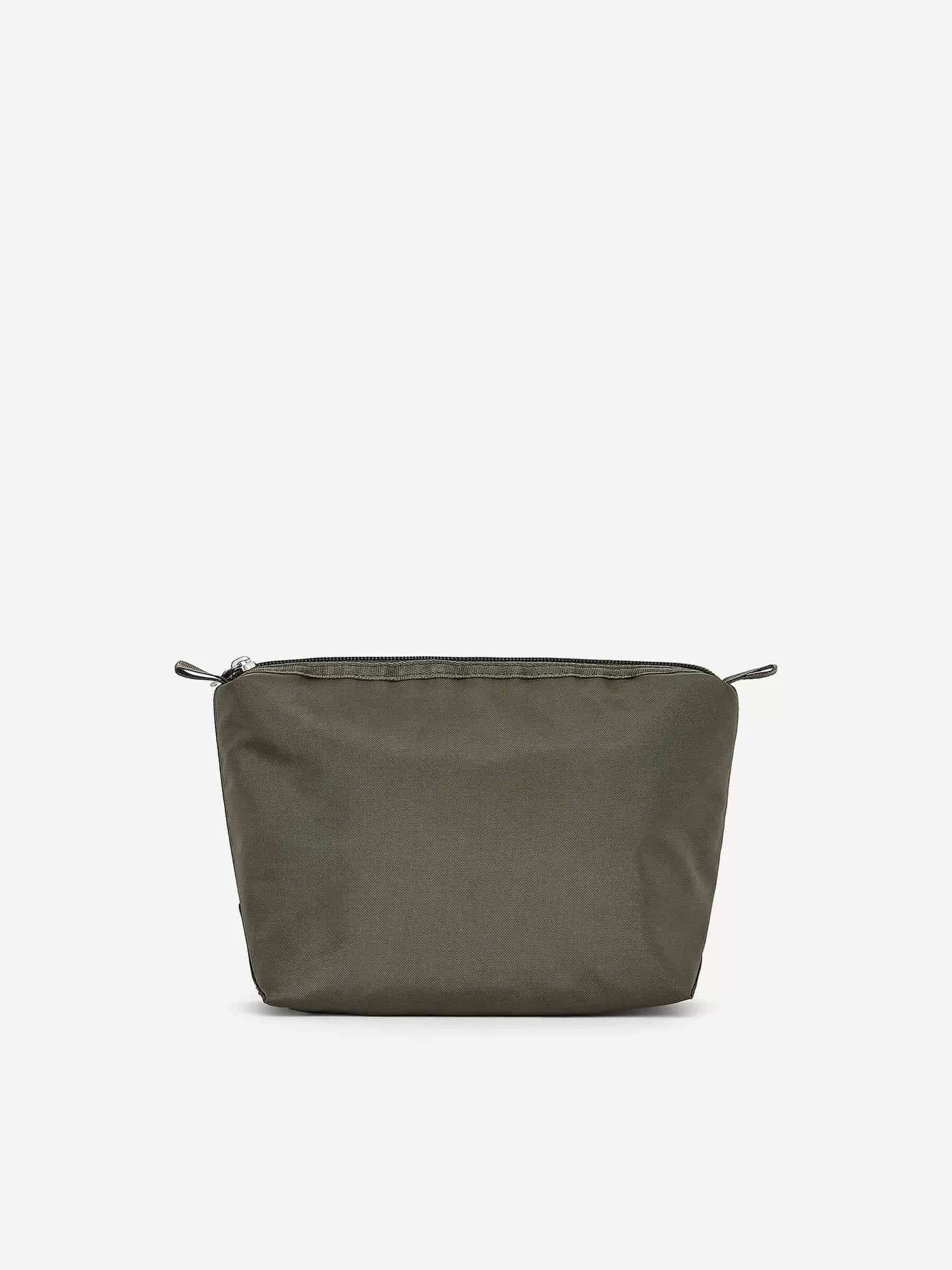 Neceser de tamaño mediano, diseñado para un fácil almacenamiento y protección de adentro hacia afuera. Confeccionado con un tejido duradero de poliamida reciclada, el bolso tiene un cierre de cremallera superior. El compartimento interior alberga un bolsillo con cremallera para objetos pequeños. Dimensiones 20 cm x 16,5 cm x 10 cm.
