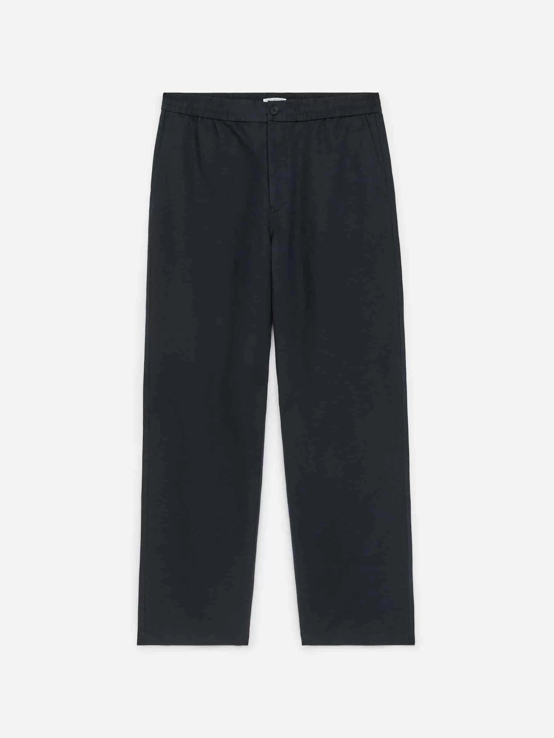 Pantalón confeccionado en mezcla de lino. Detallado con cinturilla elástica con cordón en el interior, cierre de botón y bragueta con cremallera. Bolsillos franceses en la parte delantera y bolsillos de ribete en la parte trasera. Ajuste regular.