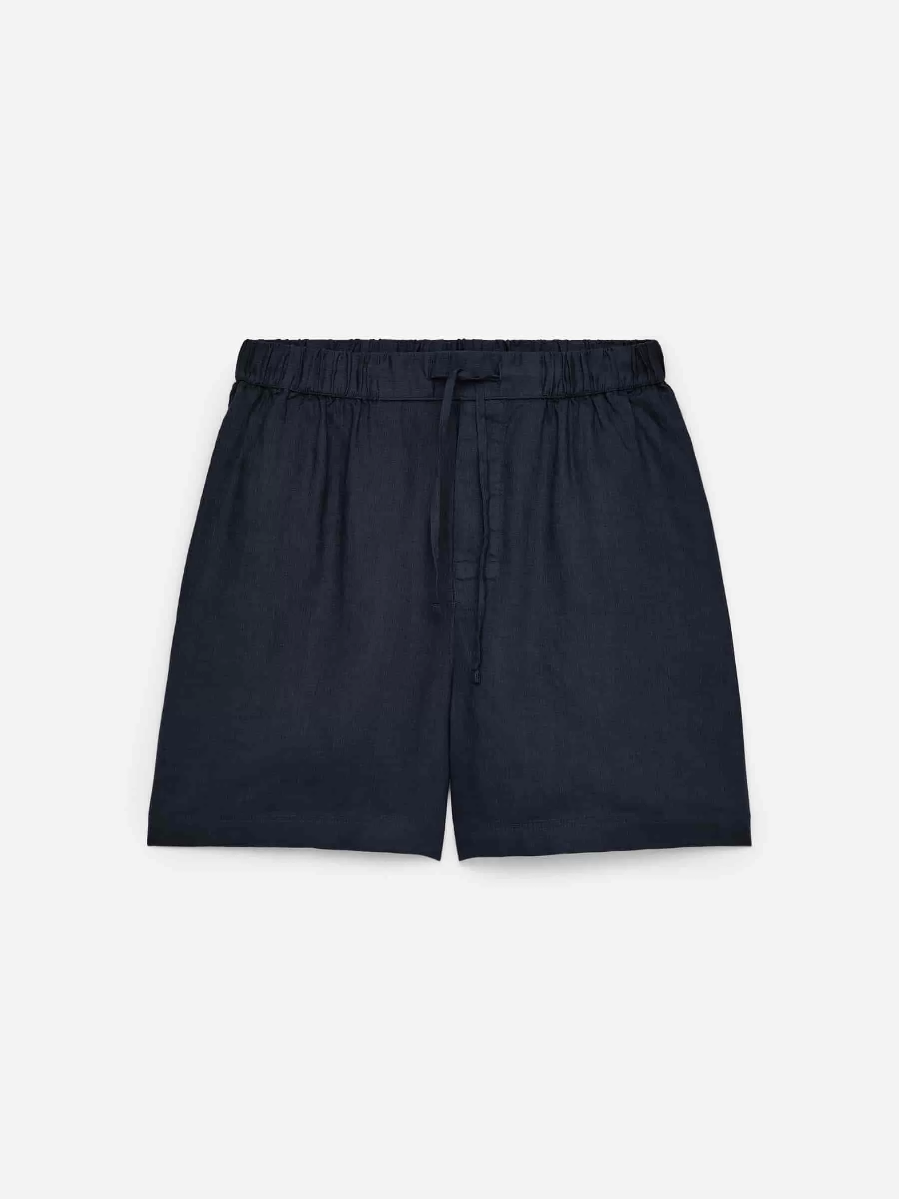 Shorts de lino con corte estándar. Un modelo sin cierre con elásticos y cordón de ajuste en la cintura, bolsillos en las costuras laterales y un único bolsillo de parche en la parte trasera. Bragueta de botones.