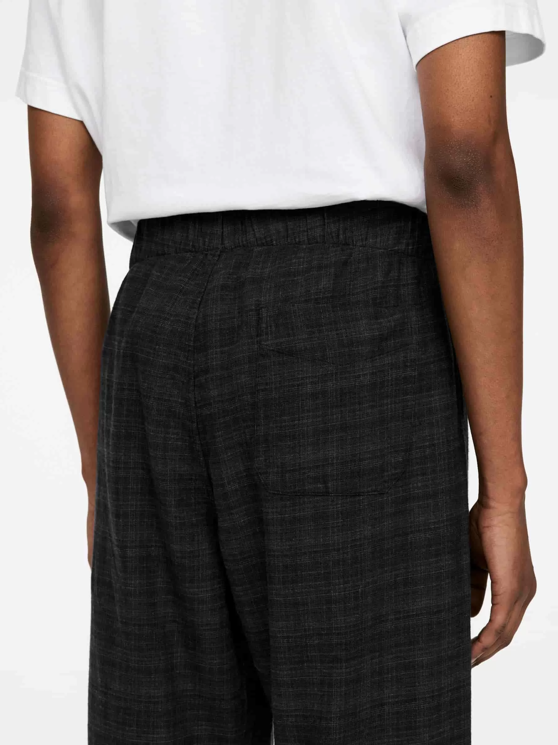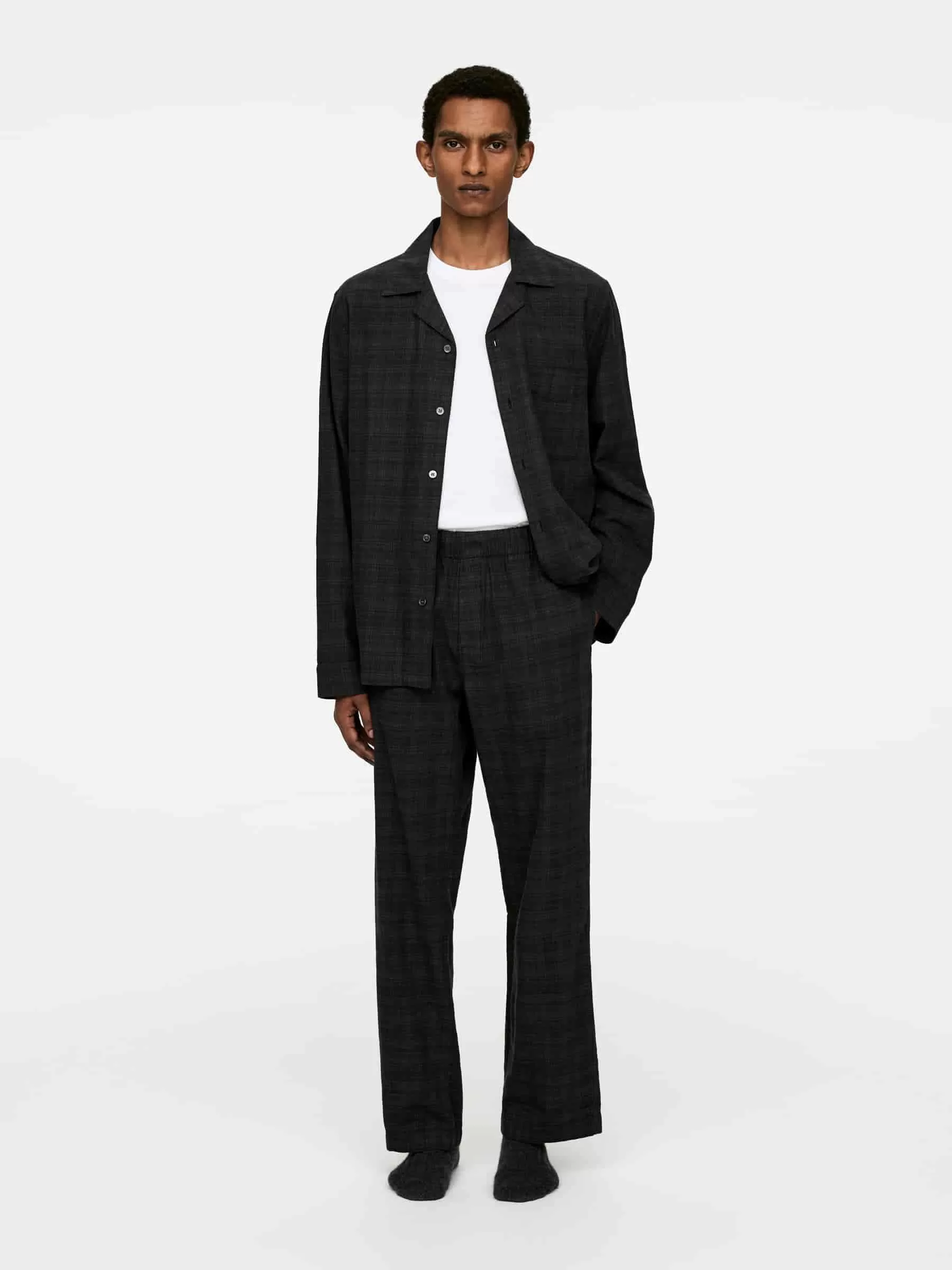 Pantalones de pijama confeccionados en franela de algodón suave y ligera. Cinturilla elástica con cordón. Bolsillos laterales y un único bolsillo de parche en la parte trasera. Ajuste regular.