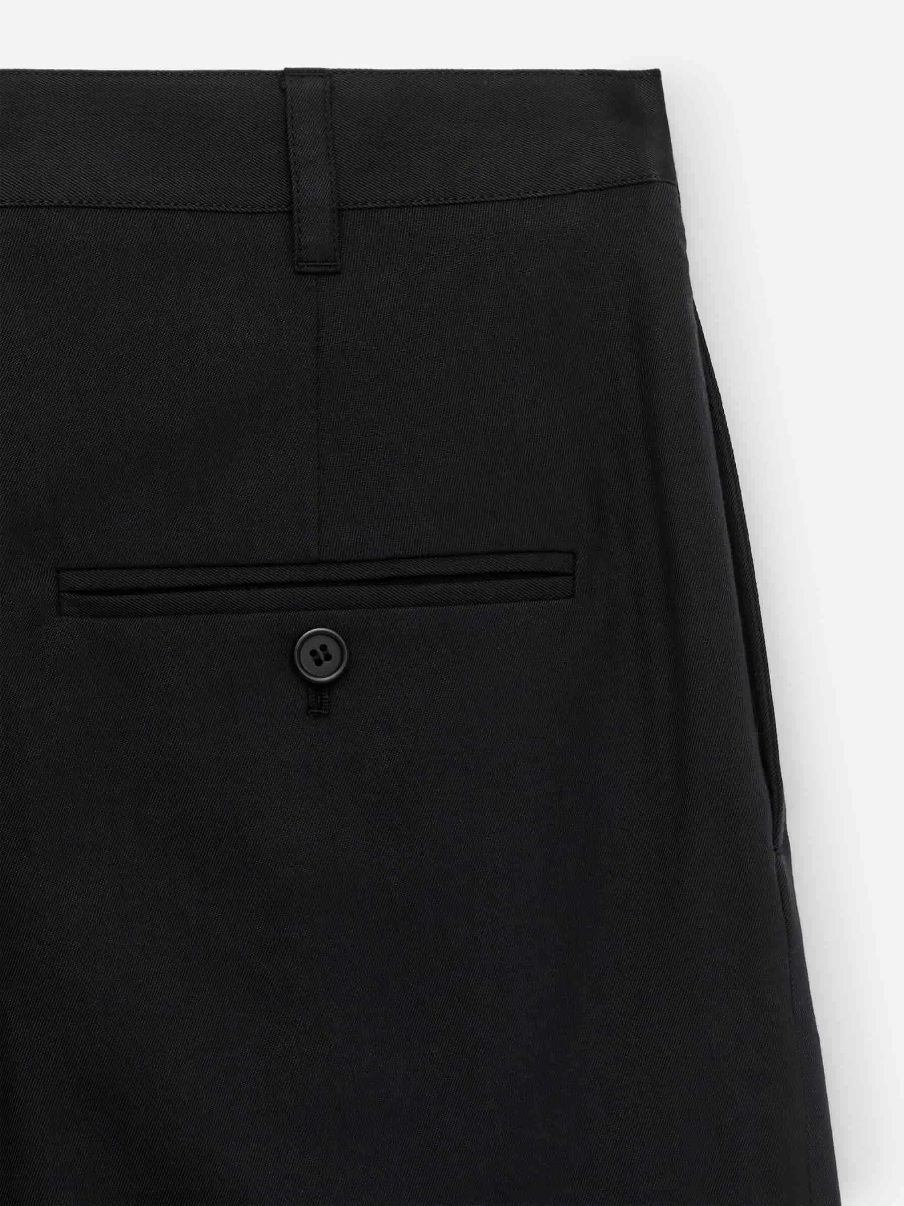 Pantalón sastre de pernera ancha y recta. Diseñado con bolsillos en las costuras laterales y bolsillos traseros ribeteados con botones. Cierre con botón y bragueta con cremallera.