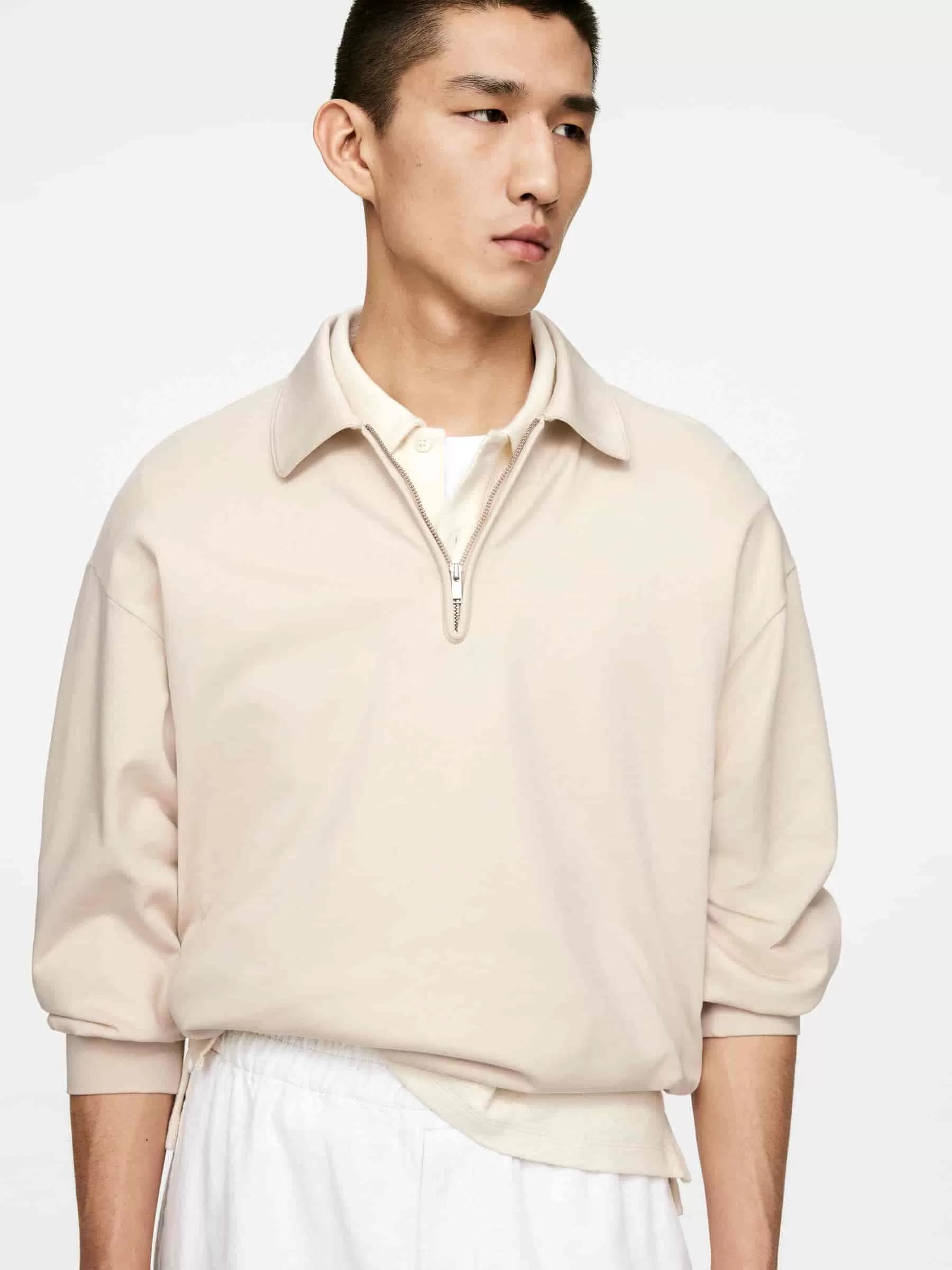 Polo confeccionado con una suave y ligera calidad de French Terry en una mezcla de algodón y lyocell. Diseñado con media cremallera, cuello y puños en tejido exterior.