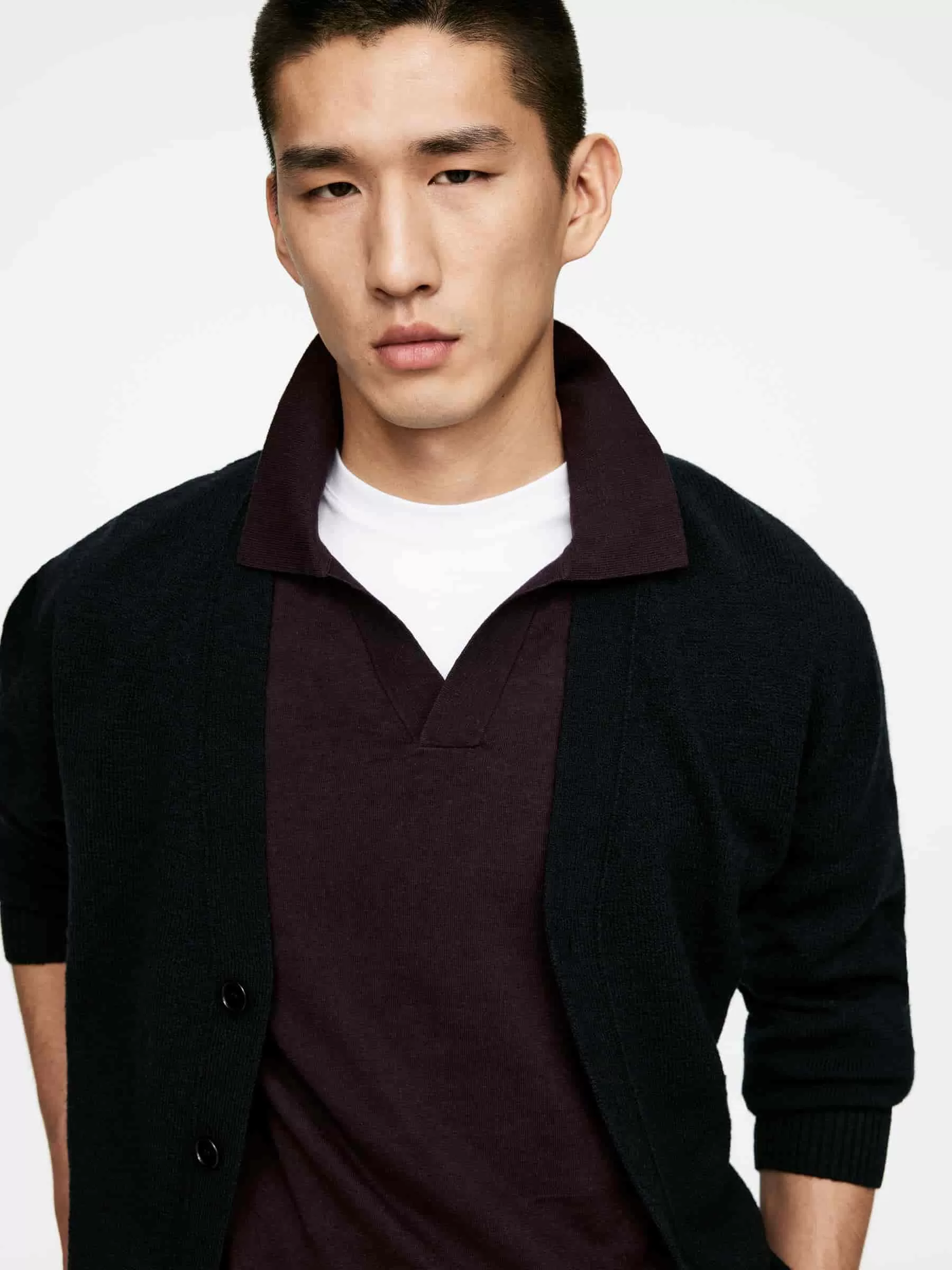 La mezcla de lino y algodón brinda una comodidad suave y refrescante a este polo de punto fino. Un estilo informal de manga corta con cuello de punto acanalado y escote en V. Regular fit.