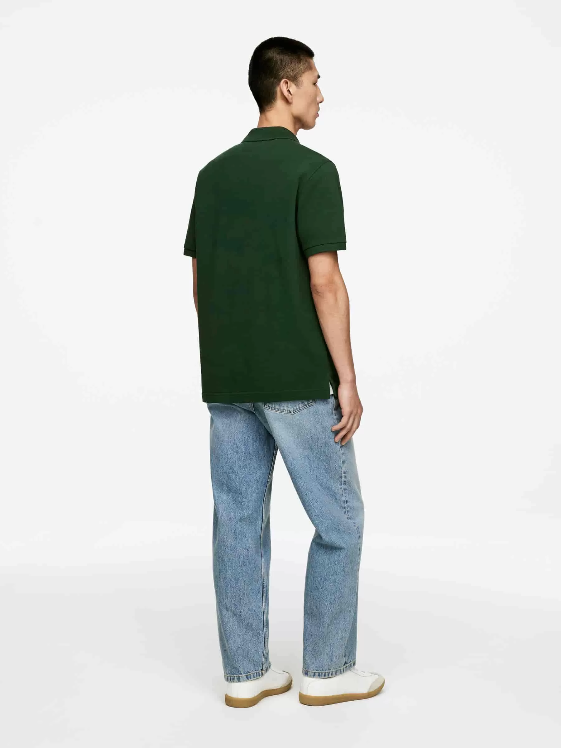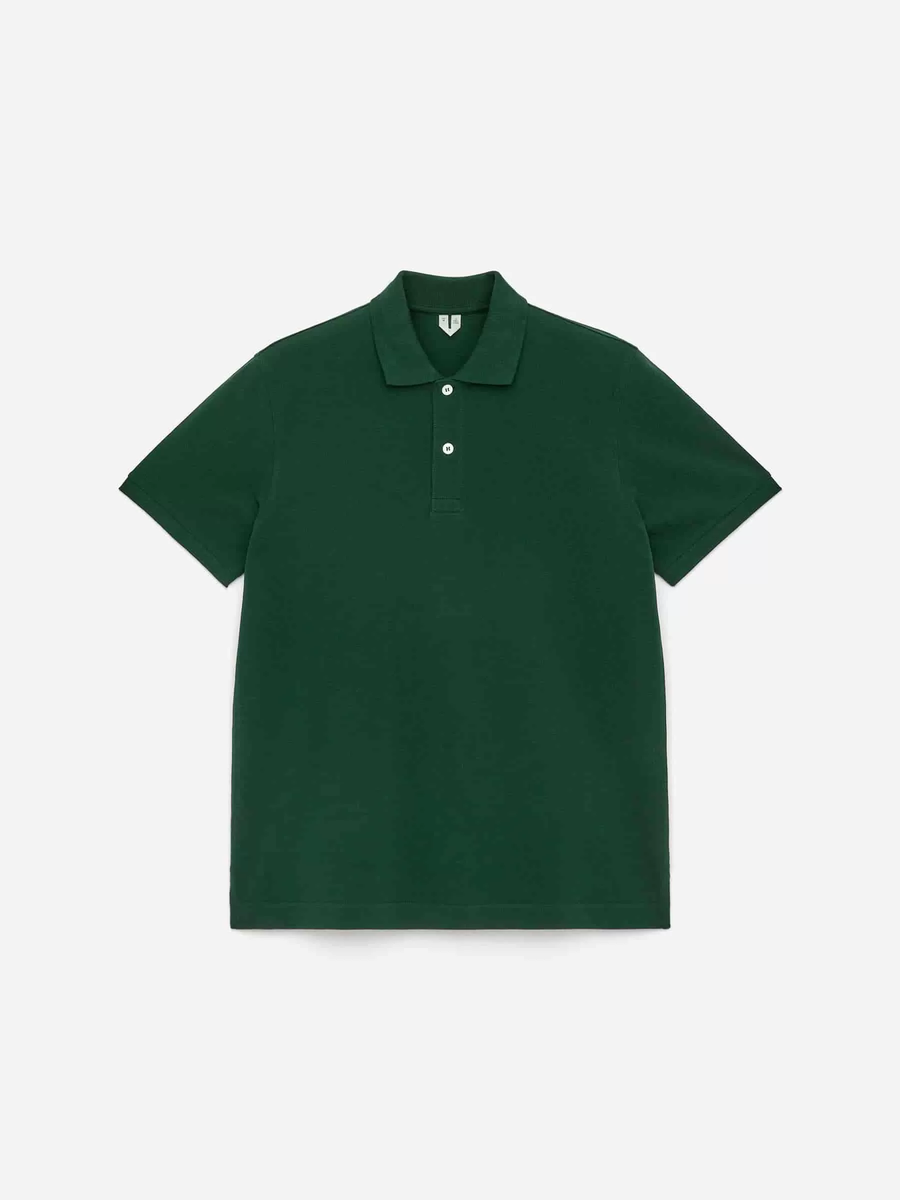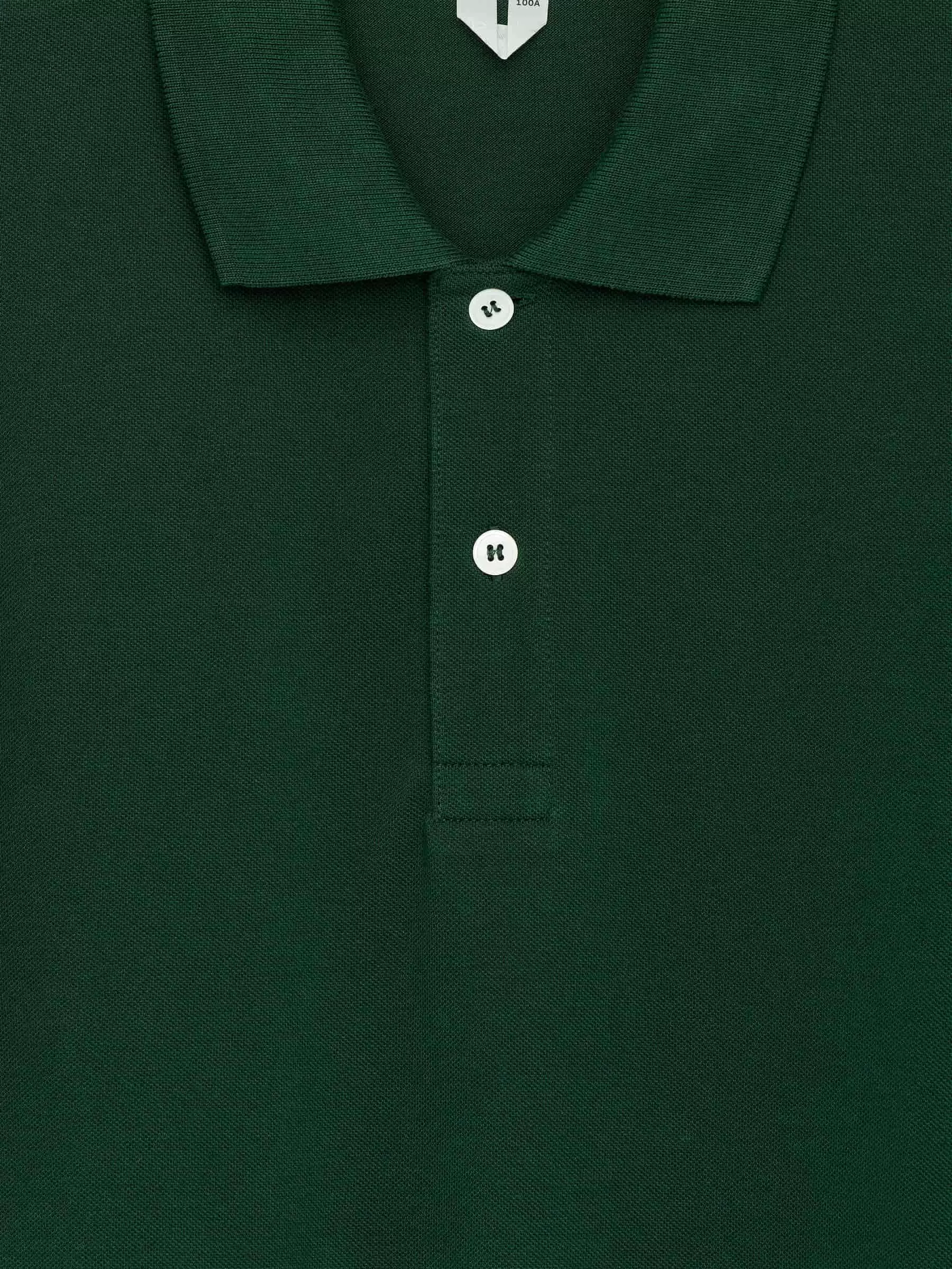 Este polo de manga corta, confeccionado en punto piqué de algodón supima, presenta detalles clásicos como cuello y puños de canalé y media tapeta abotonada. Corte regular fit con aberturas cortas en las costuras laterales.