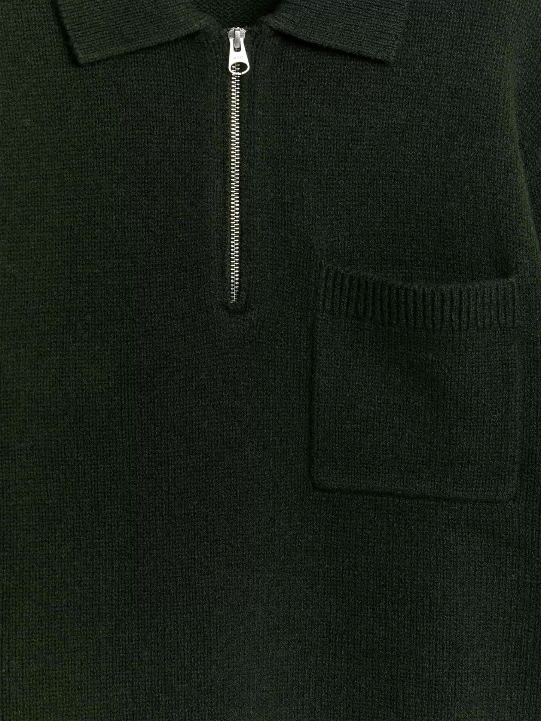ARKE Hombre Polo de punto de lana con cremallera verde oscuro