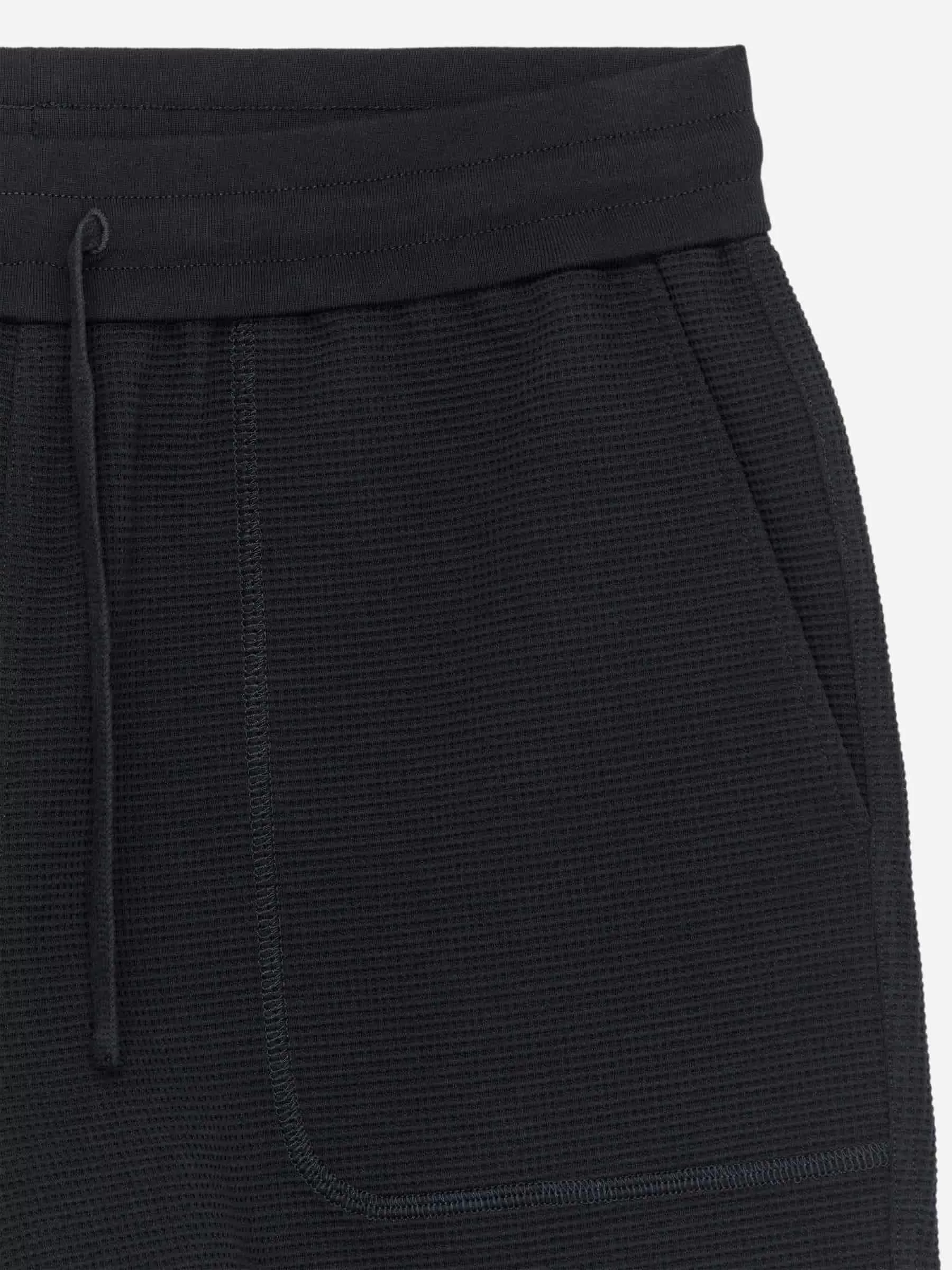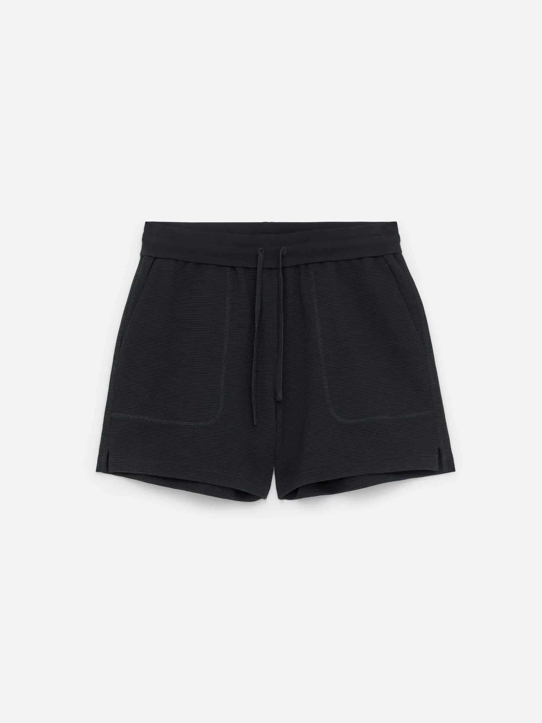 Shorts confeccionados con un jersey elástico de punto gofre. Cinturilla elástica con cordón. Bolsillos inclinados. Aberturas cortas en las costuras laterales.