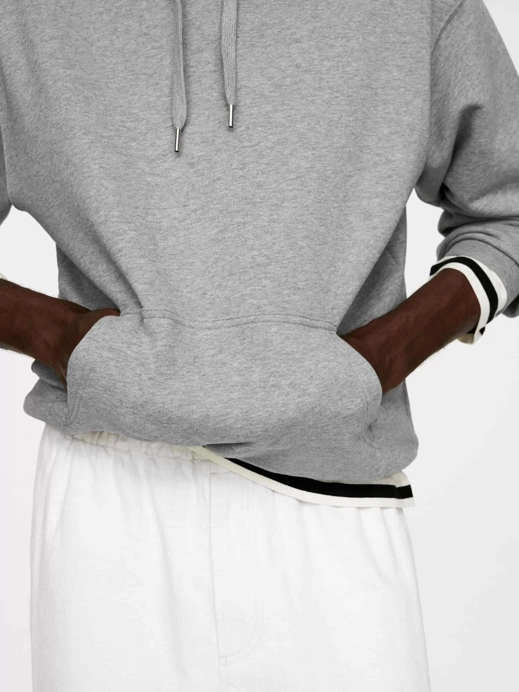 Sudadera con capucha confeccionada con un tejido de felpa francesa hecha de algodón. Un estilo relajado con hombros ligeramente caídos. Detallado con un bolsillo canguro en la parte delantera y ribetes acanalados.